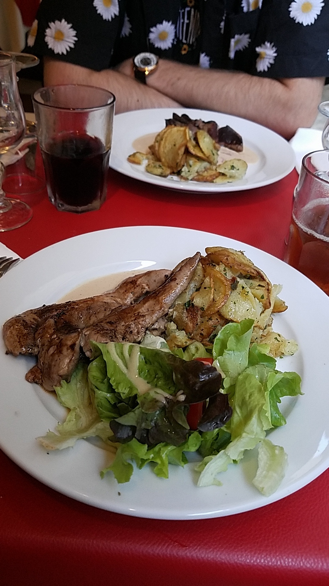 Très bon repas avec des produits frais,pour ma part côte de cochon foie gras poêlée, une merveille la cuisson au top et mon mari salade perigourdine, hachis parmentier de canard et glace un délice et le prix est très correct .