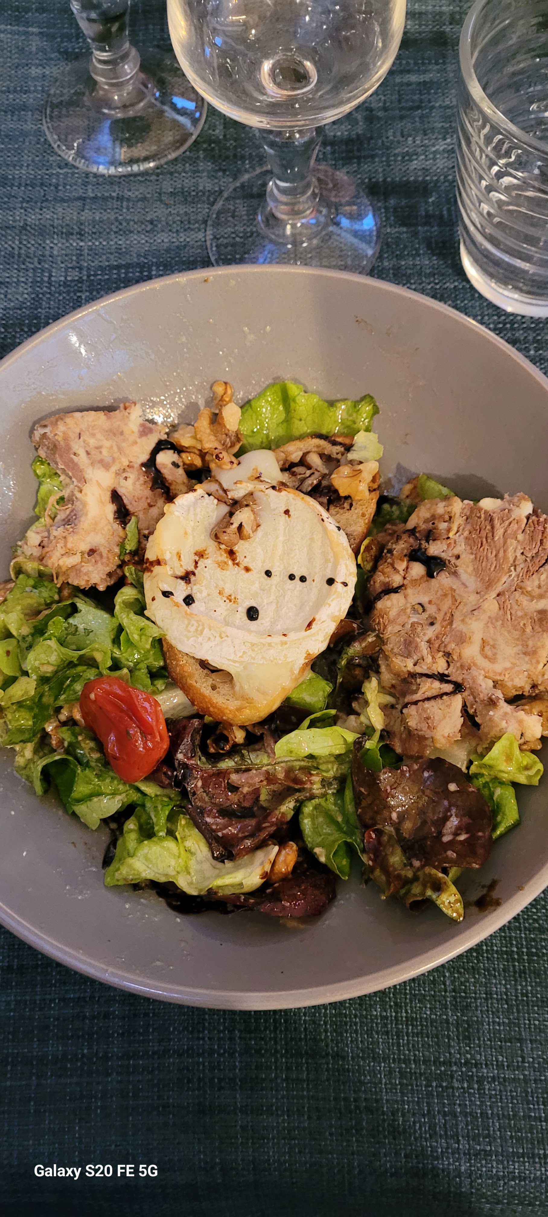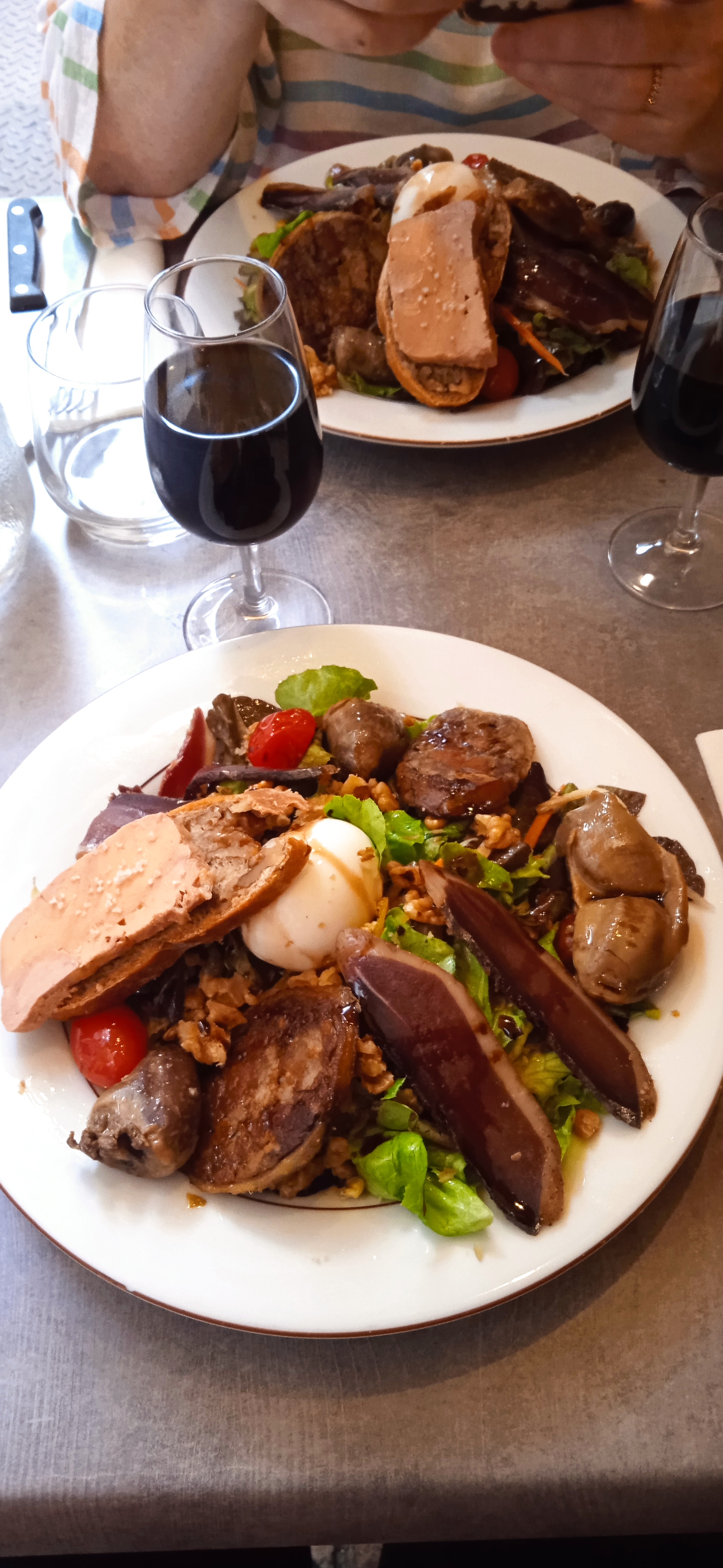 Excellent lieu. Très bon accueil ! Nous avons dégusté une salade périgourdine. Incroyable ! Le foie gras délicieux sur des tartines de pains aux noix grillées à tomber. Des gésiers de canard tendres, tranches de saucisson de canard chaudes et magrets fumés et même cœur de canard. Bravo pour cette adresse ! Nous avions essuyé quelques déconvenues dans d’autres restaurants entre toasts faits de pain sec et foie gras qui n’en était pas. Juste un mélange de Saussisse et très peu de foie gras. Ou dans une très bonne maison foie gras décevant et là encore servi avec du pain sec grillé