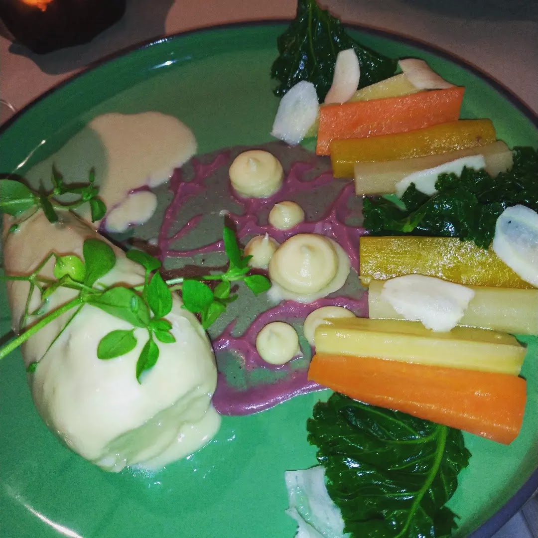 Lieu magnifique, bonne sélection de vin...ils m'ont adapté tout mon repas en végétarien, c'était succulent ! Un peu cher...