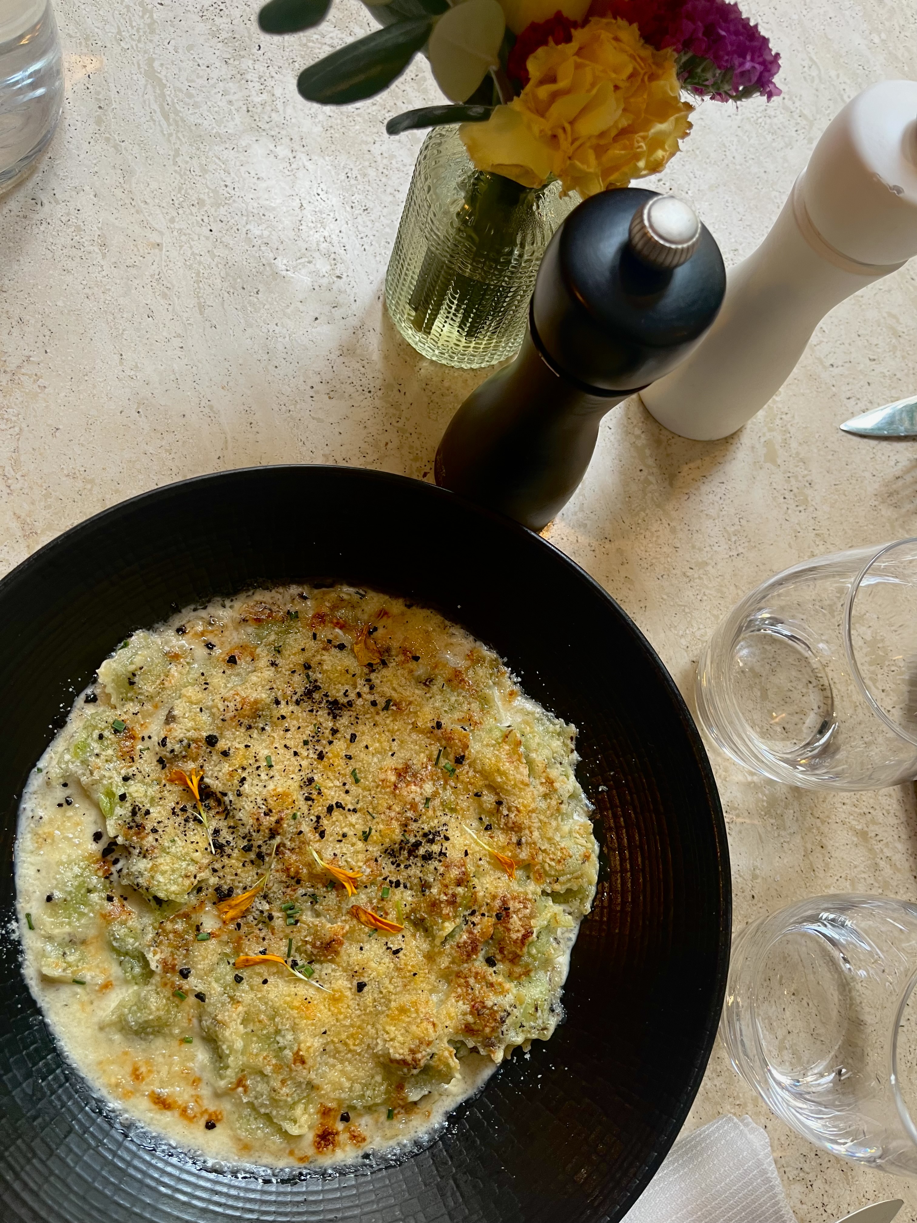 Mention spéciale à notre génialissime serveur : Youyou, il a été absolument délicieux, davantage d’ailleurs que les ravioles à la truffe qui étaient beaucoup beaucoup trop lourdes : très peu de truffe et beaucoup trop de gratin de gruyère, nous étions 4 a avoir choisi ce plat et nous avons toutes eu beaucoup de mal à le digérer. Et pour finir sur une note positive, le cadre est vraiment très somptueux et vaut le détour. Je recommande ce restaurant mais pas les ravioles à la truffe 🥴