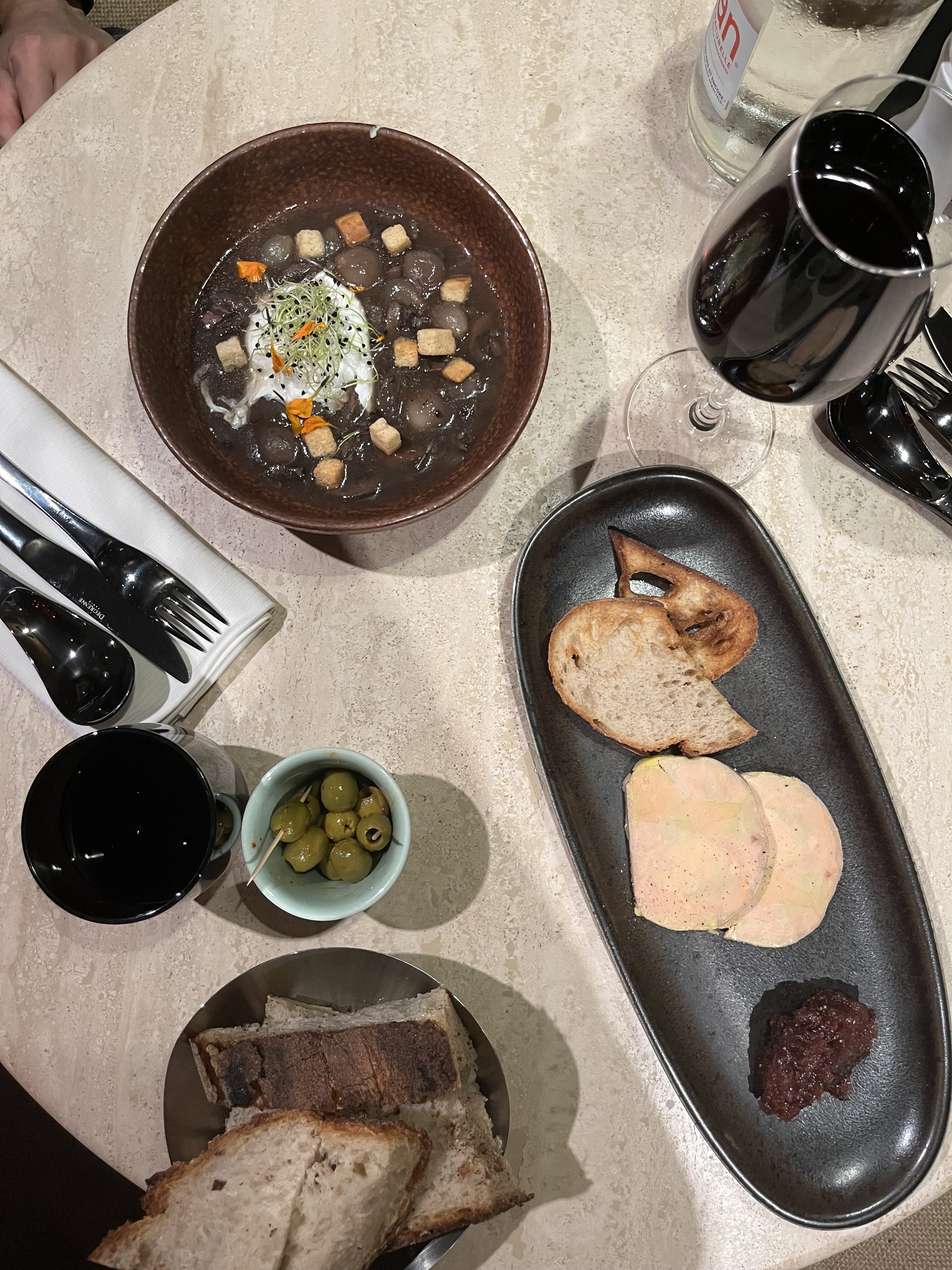 Lieu et ambiance vraiment sympa, le vin est très bon et les plats aussi. Les prix ne sont pas excessif, c’est un excellent rapport qualité-prix.