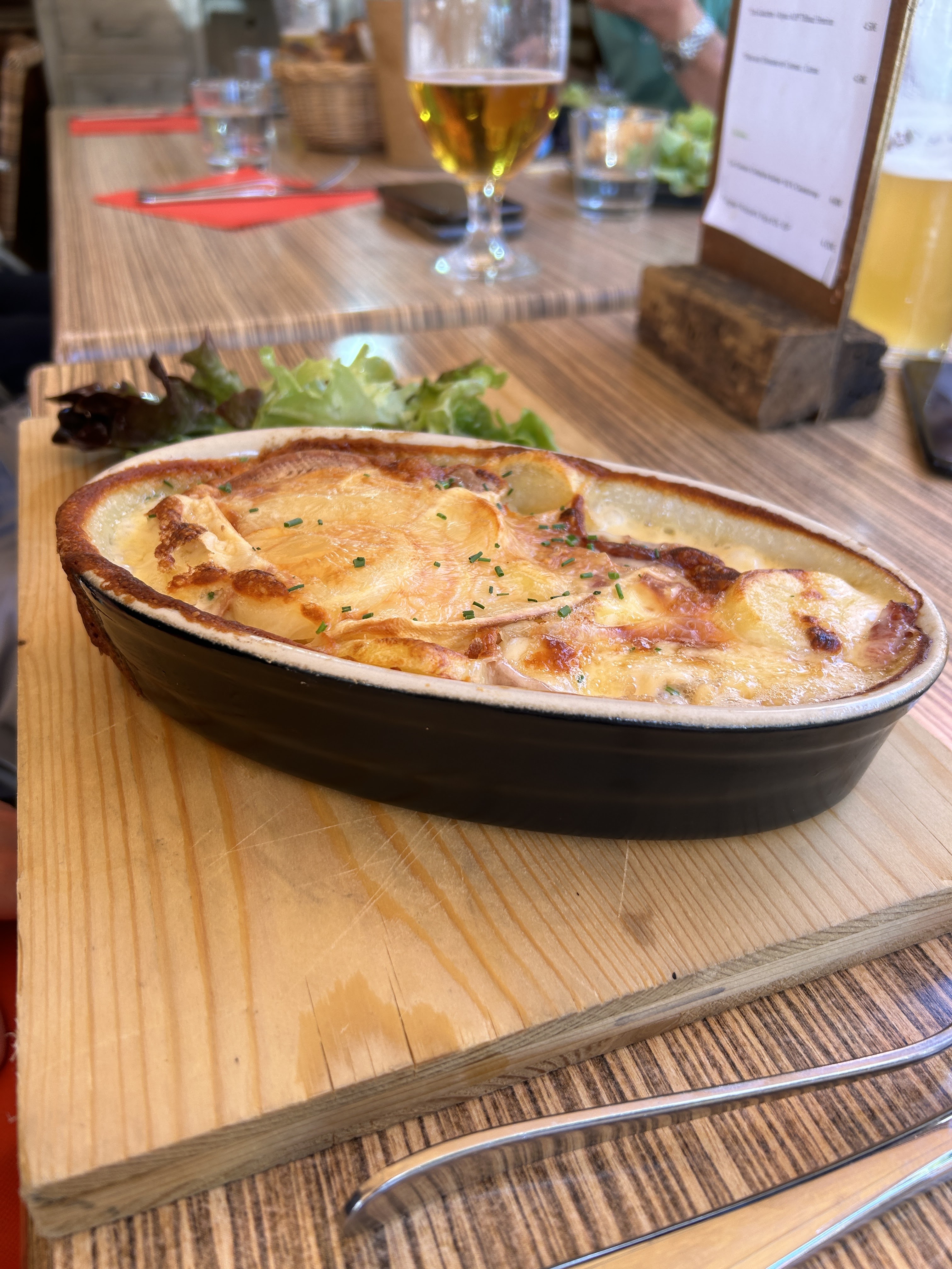 [28.05.23] Jours de réouverture. Le personnel très convivial. La tartiflette un poil trop grasse (mais sans doute normal selon le fromage) mais salade très bonne.