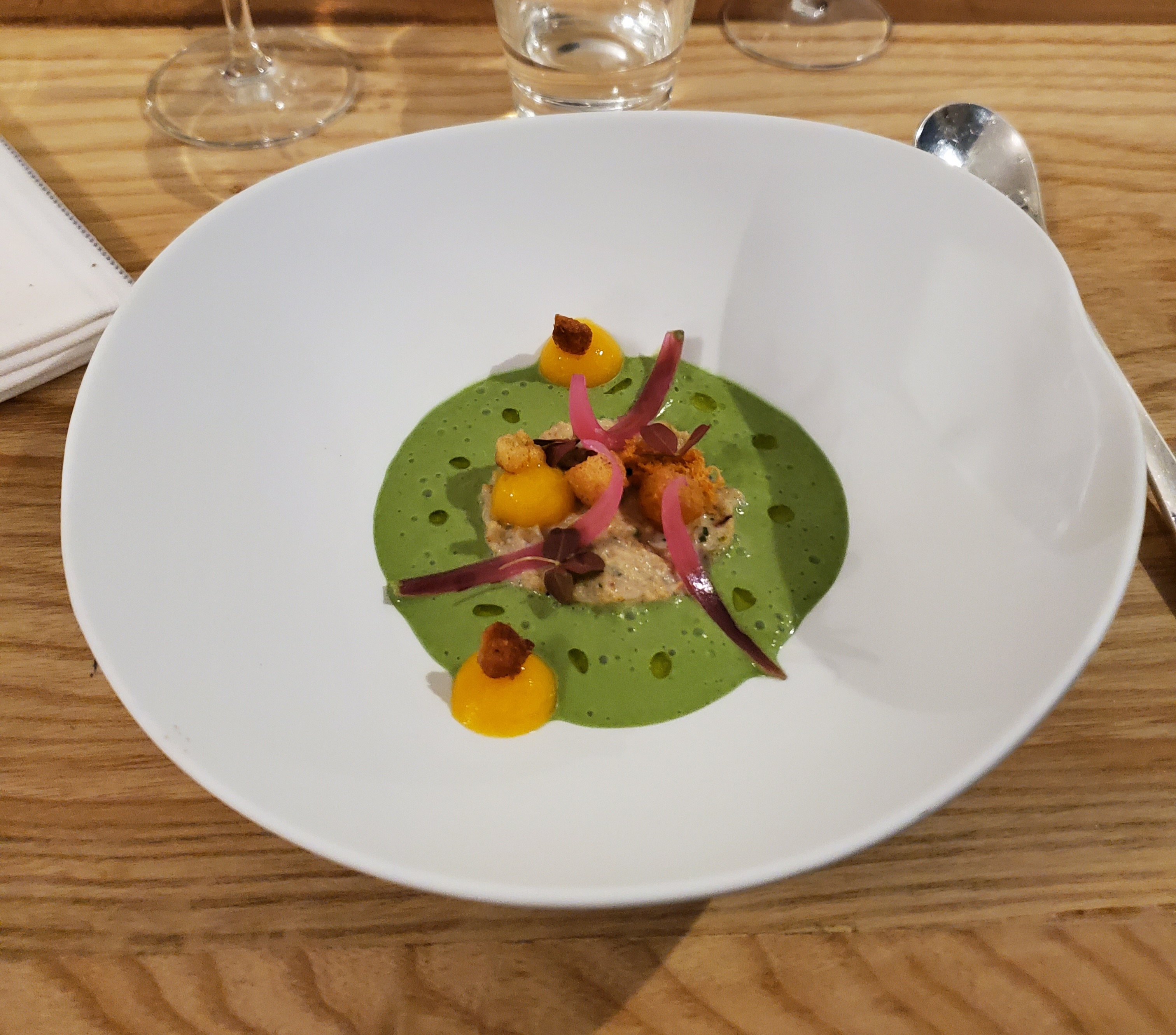 Super menu création et incroyable service. Nous avons passé un très bon moment et nous sommes régalés. Petites améliorations: Les couverts en plastiques (cuillères pour l’entrée et le dessert) Le fait de ne pas pouvoir ajouter de pourboire en payant par carte Le décor du restaurant