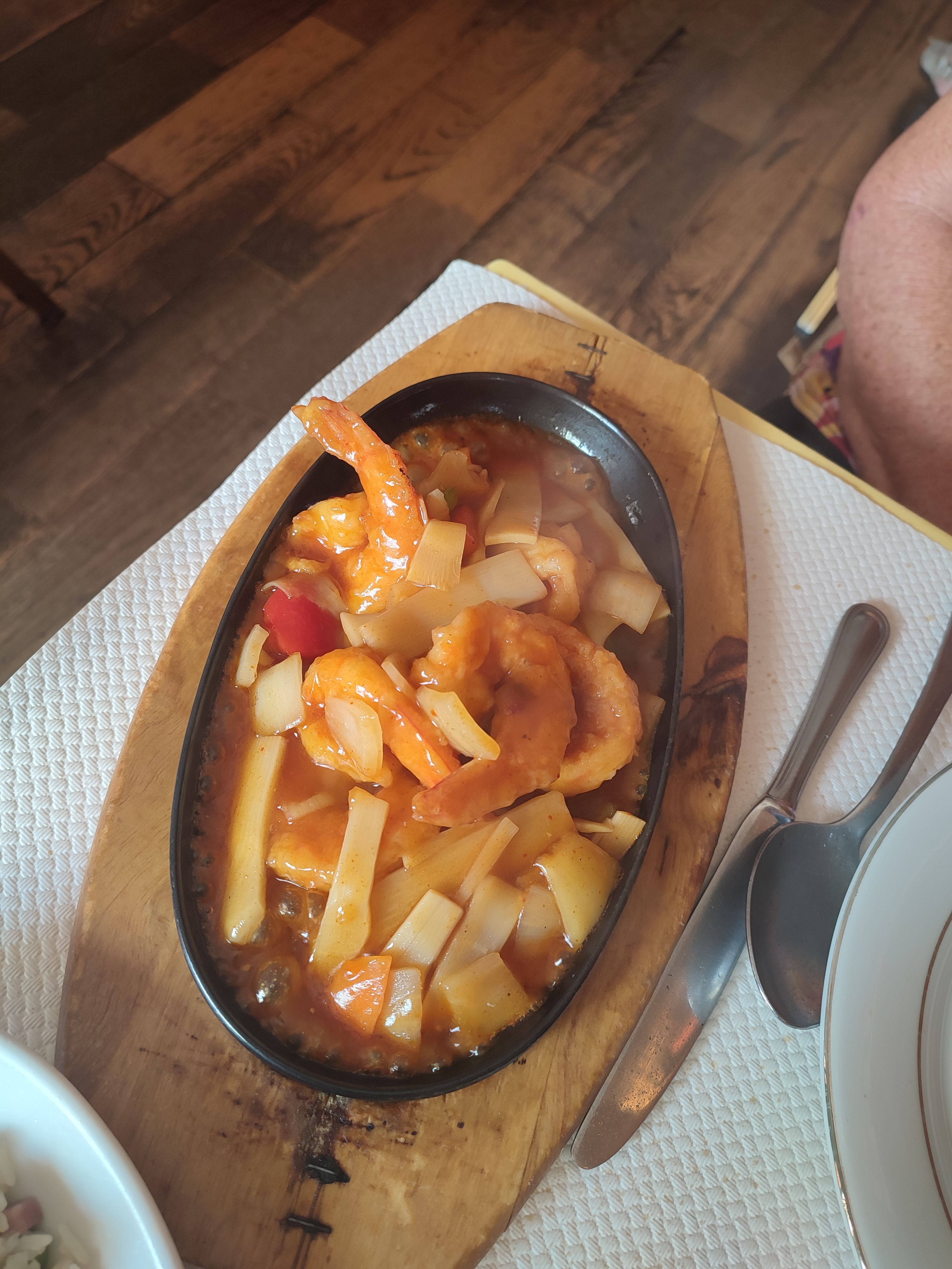 Pas satisfaite du tout nouille trop grasse, crevette sauce piquante pas du tout piquant , trop d'oignons dans la sauce et trop épaisse , par contre le potage pékinois rien à redire il était bon