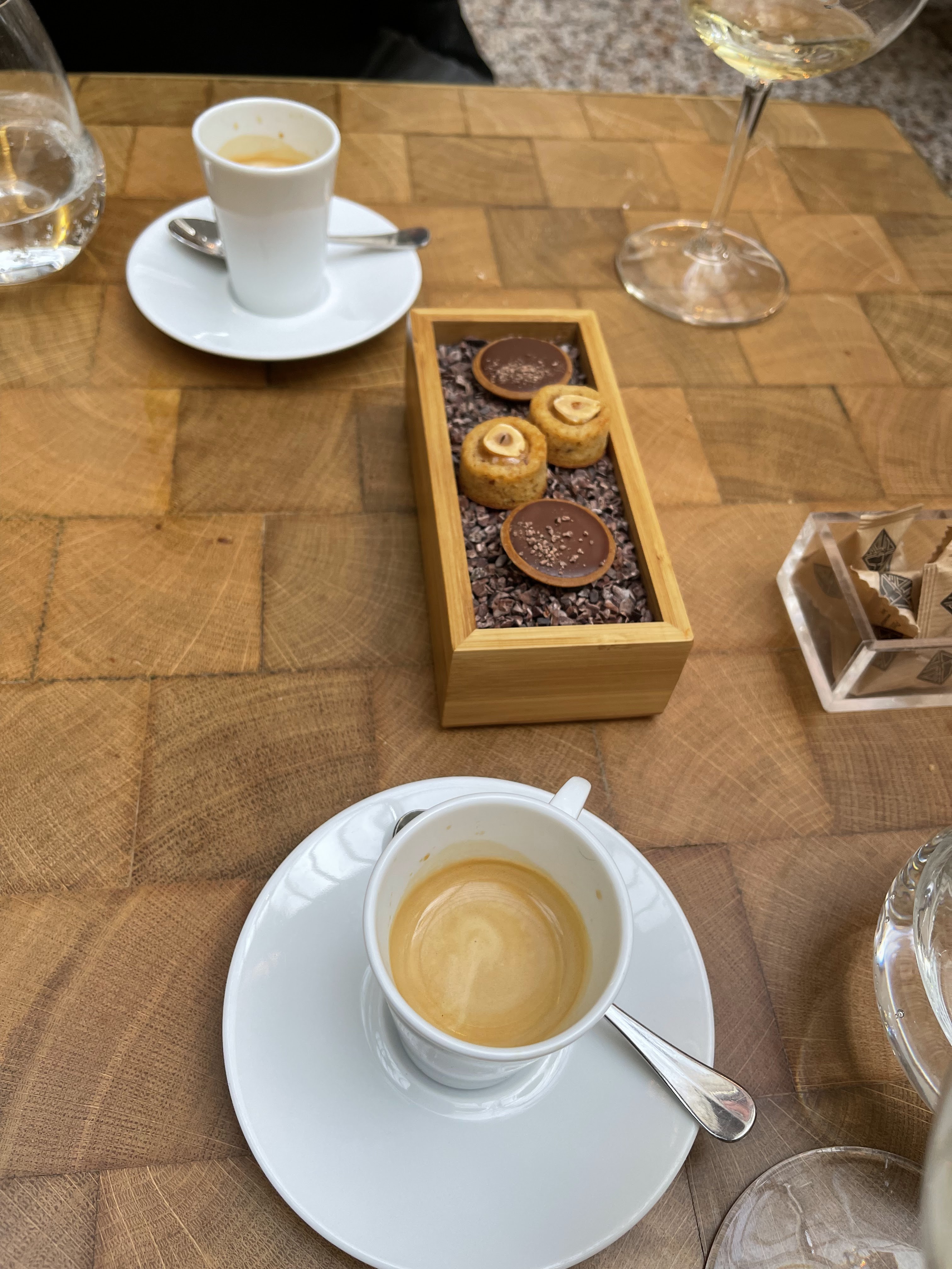 Nous sommes allés déjeuner tranquillement et avons eu le menu dégustation complet avec du vin. Que puis-je dire, esprit = époustouflé. Je n'aime pas le poisson, le chef a donc remplacé les plats de poisson par de la viande, notamment le meilleur tartare de bœuf et ris de veau que j'ai jamais mangé de ma vie. Les accords mets et vins ont été savamment expliqués par le sympathique sommelier qui a très bien complété le repas.