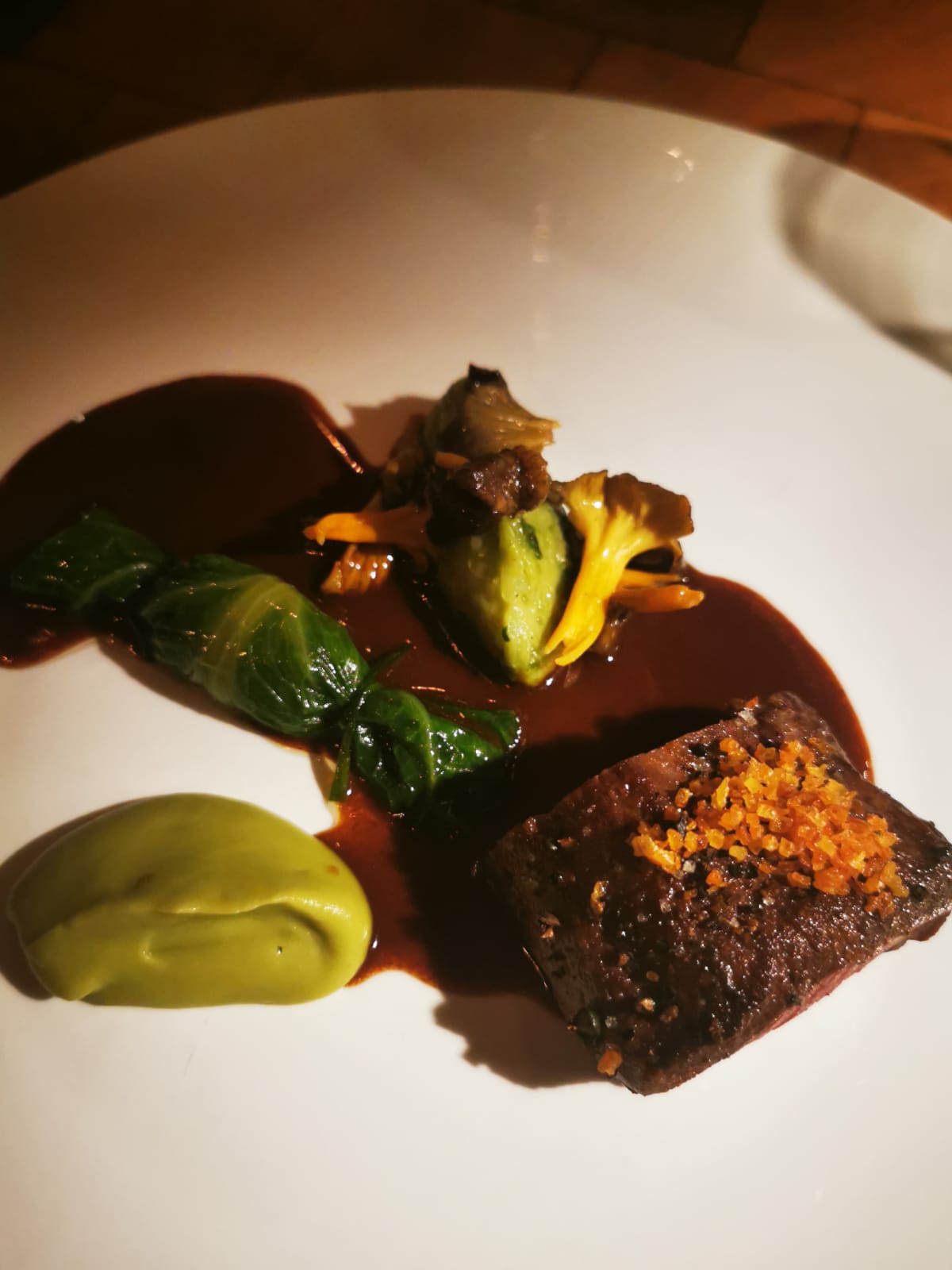En plus d'une cuisine exceptionnel , un service soigné & une cave à vins juste délirant ( grand choix de bourgogne ) le 2015 Gevrey-Chambertin les cinq terroirs domaine Denis Mortet .