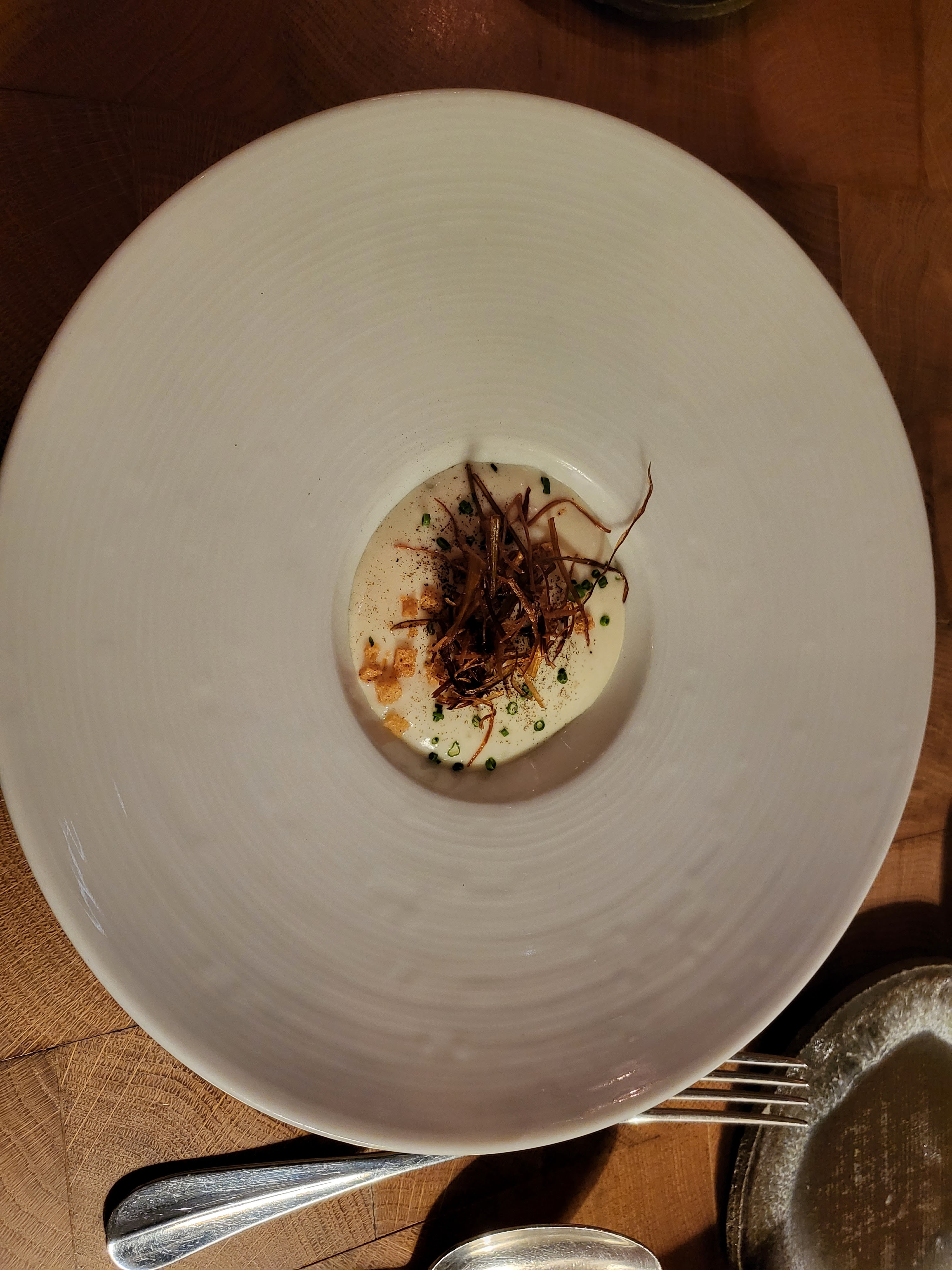 C'était notre seul restaurant étoilé Michelin avec lequel nous nous sommes fait plaisir lors de notre voyage et WOW, ils livrent. Ambiance, service, rythme de la nourriture, ingrédients locaux/saisonniers, tout était parfait et le prix est très raisonnable. Nous avons eu 3 amuse-bouche, sardunest, foie gras, bar et cerf. Le bon: L'expérience culinaire dans son ensemble était merveilleuse, mais les plats 2 étoiles pour moi étaient les suivants : Ce foie gras était si bon que je n'aurai plus jamais de foie gras aux États-Unis. La technique ici est d'un niveau supérieur : pas un soupçon de gibier, et le plat était si bien équilibré que vous n'aviez pas besoin de pain avec. Le plat de cerf était cuit de la même manière à la perfection. Vous ne pouviez pas goûter au gibier, si vous m'aviez bandé les yeux, j'aurais deviné que c'était un filet mignon. Le mauvais: Rien. C'est juste si bon. Et vous ne repartez pas non plus trop rassasié.