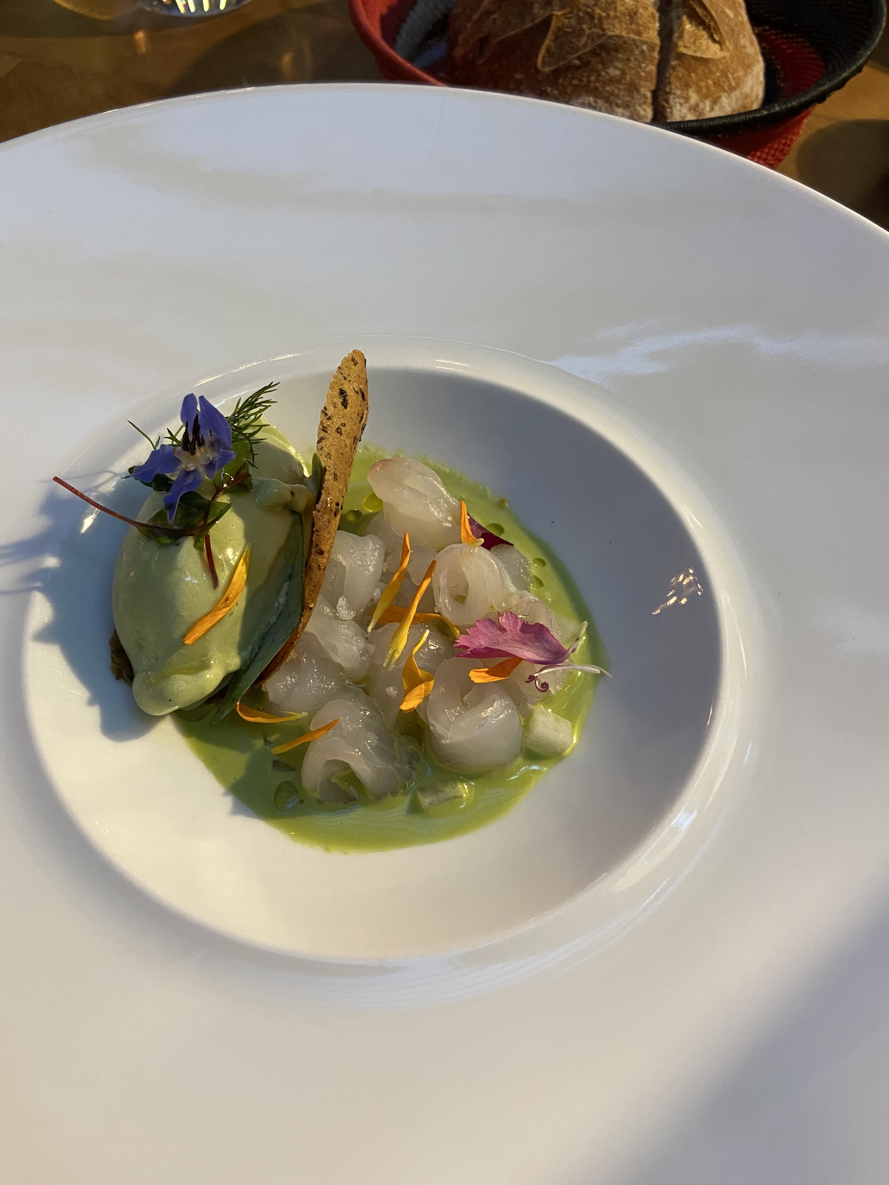 Nous avons apprécié notre dîner d'anniversaire ici et le chef n'a pas déçu. chaque cours était parfaitement rythmé et délicieux. Nos accords mets-vins étaient intéressants et nous avons découvert de nouveaux vignobles que nous n'aurions pas trouvés autrement. Il y avait un chien qui aboyait dans la salle à manger, ce qui était un peu exigeant pour un restaurant classé Michelin - c'est pourquoi nous lui donnons 4 étoiles.