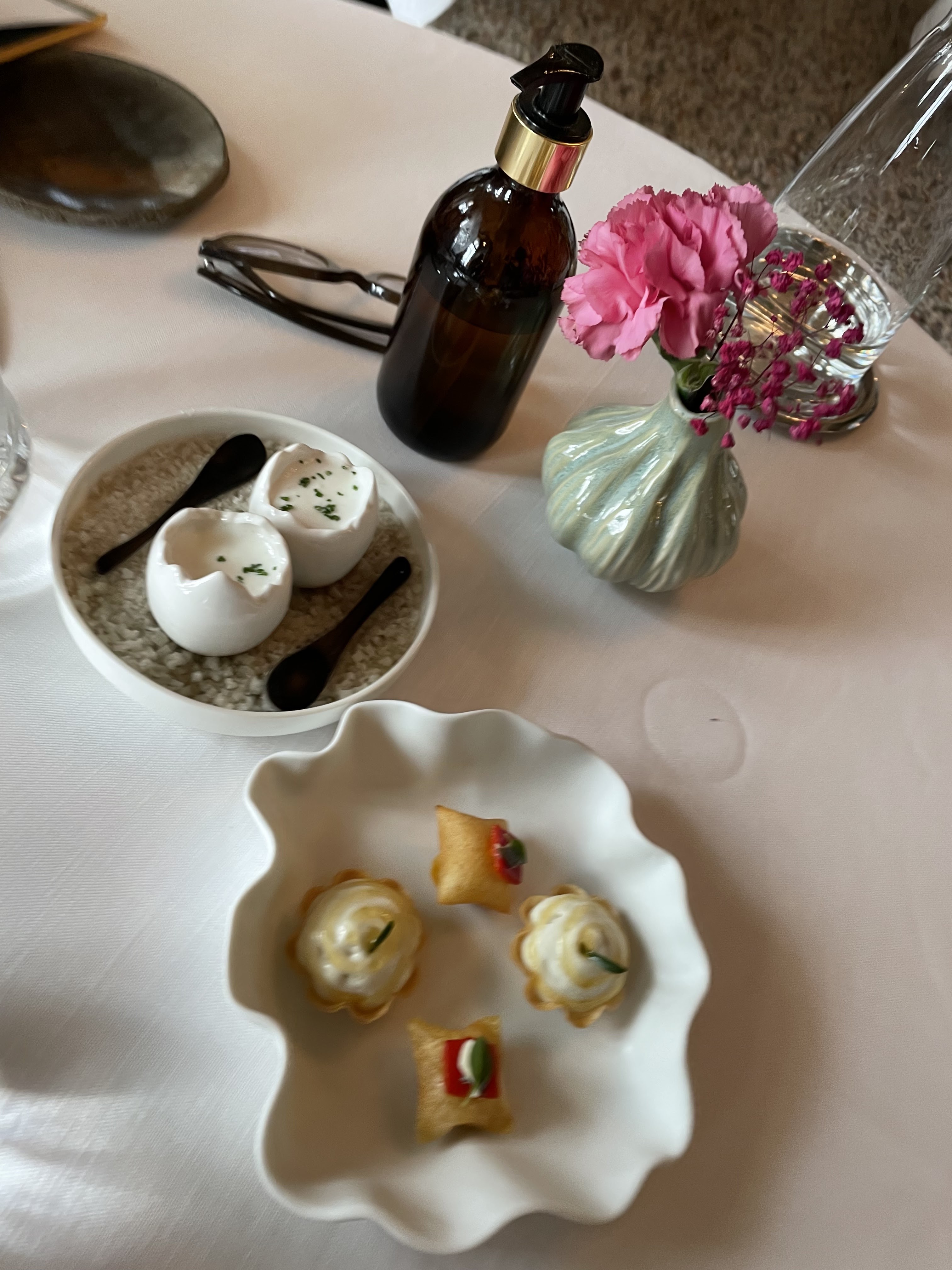Attention aux végétariens ! Nous avons informé le restaurant longtemps à l'avance qu'un des clients était végétarien. Pas de poisson, de viande ou de volaille ; Pourtant, une entrée était accompagnée d'œufs de poisson comme ingrédient et une autre entrée comprenait des huîtres. Le serveur nous a informé qu'il ne s'agissait pas de « poissons ». Peut-être qu'ils ne sont pas considérés comme du poisson scientifiquement, mais je m'attendais à ce qu'un restaurant de ce calibre vérifie auprès de nous avant de servir ces plats à un végétarien. Nous attendions ce déjeuner avec impatience et nous sommes repartis déçus. La prochaine fois, j'ajouterai « pas de crustacés ni d'œufs de poisson ».