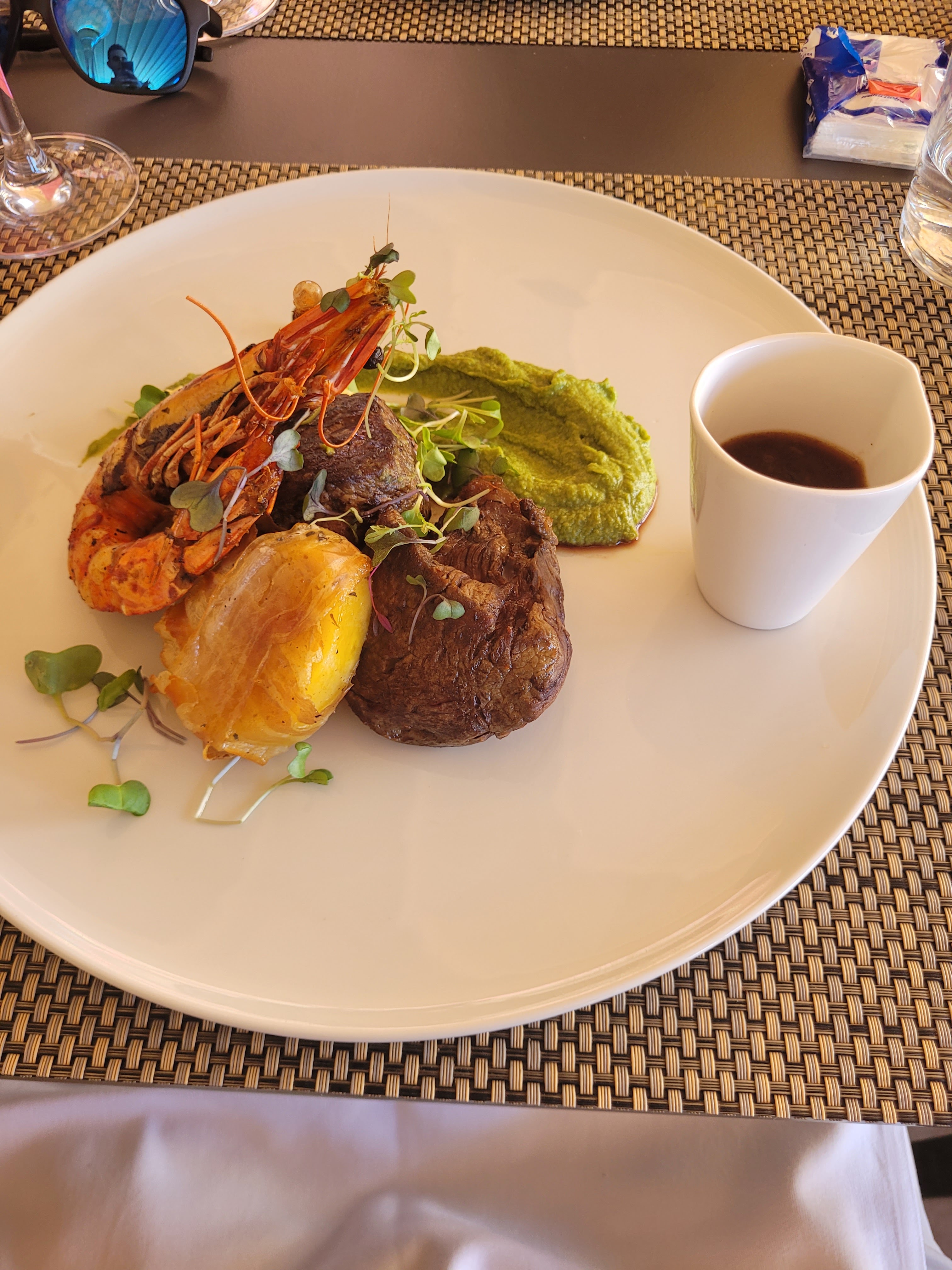 C'est dans ce beau cadre que nous avons décidé de prendre notre déjeuner. La qualité des produits, l'accès au parking privé, le lieu font de ce restaurant un incontournable si vous êtes à proximité. Il y a une vraie variété de produits, terre ou mer, il y a du choix. Surtout sur la viande ou vous aurez également en fonction de votre budget le choix du plus classique à des viandes haut de gamme. Je me suis régalé avec des côtelettes d'agneau avec une délicieuse sauce aïoli. Étant originaire du nord de la France, je peux aussi vous dire que les frites sont vraiment bonnes. Les patates bravas top pour 8€ en tapas. Je pense que tout est bon. Le plat a partir de 16€ des produits locaux. Il y a même aussi langoustes, homards en aquarium pour les fans... En fait foncez si vous hésitez. Le personnel pourrait se montrer un peu plus accueillant pour que ce soit parfait.