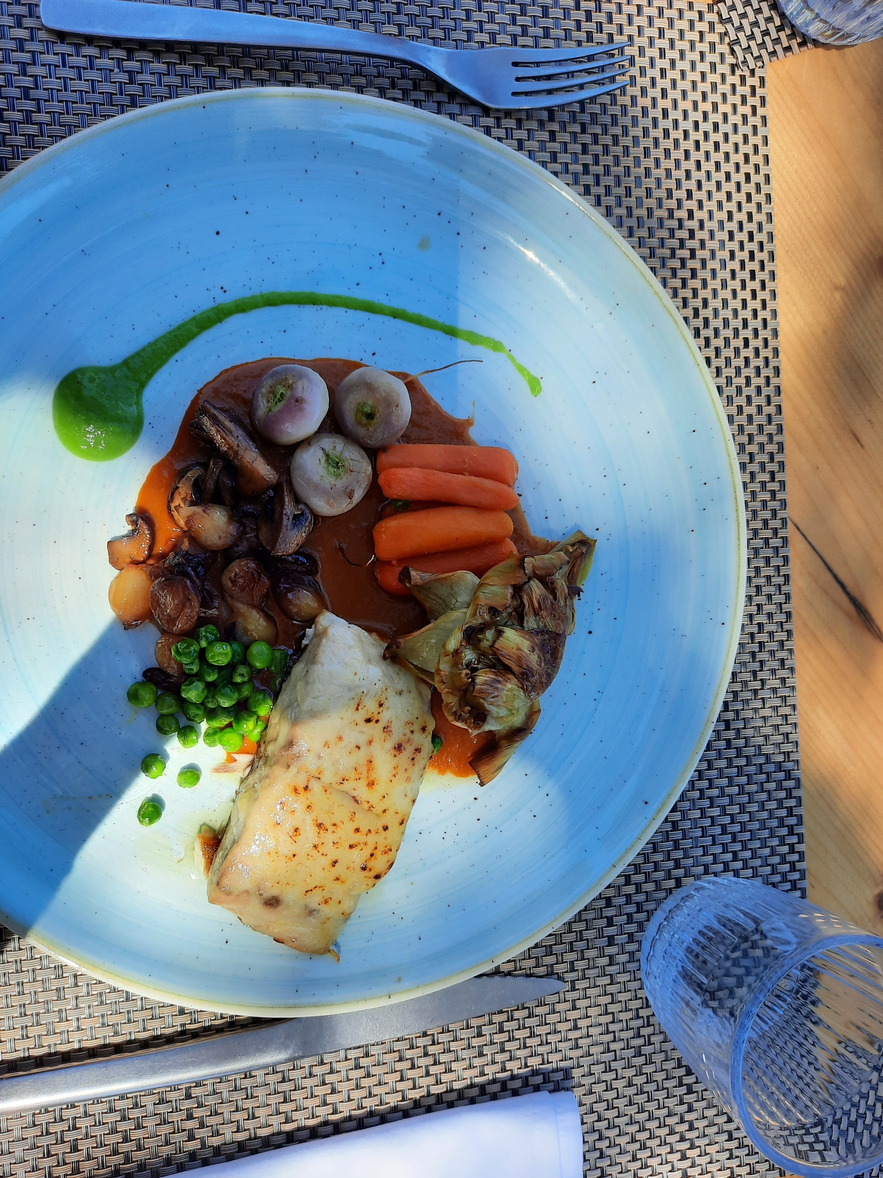 Un cadre incroyable et des plats qui peuvent paraître simples... Mais avec tant de subtilités ! 🙂 Nous avons passé une super soirée en terrasse. Le vin rosé du domaine est également excellent !