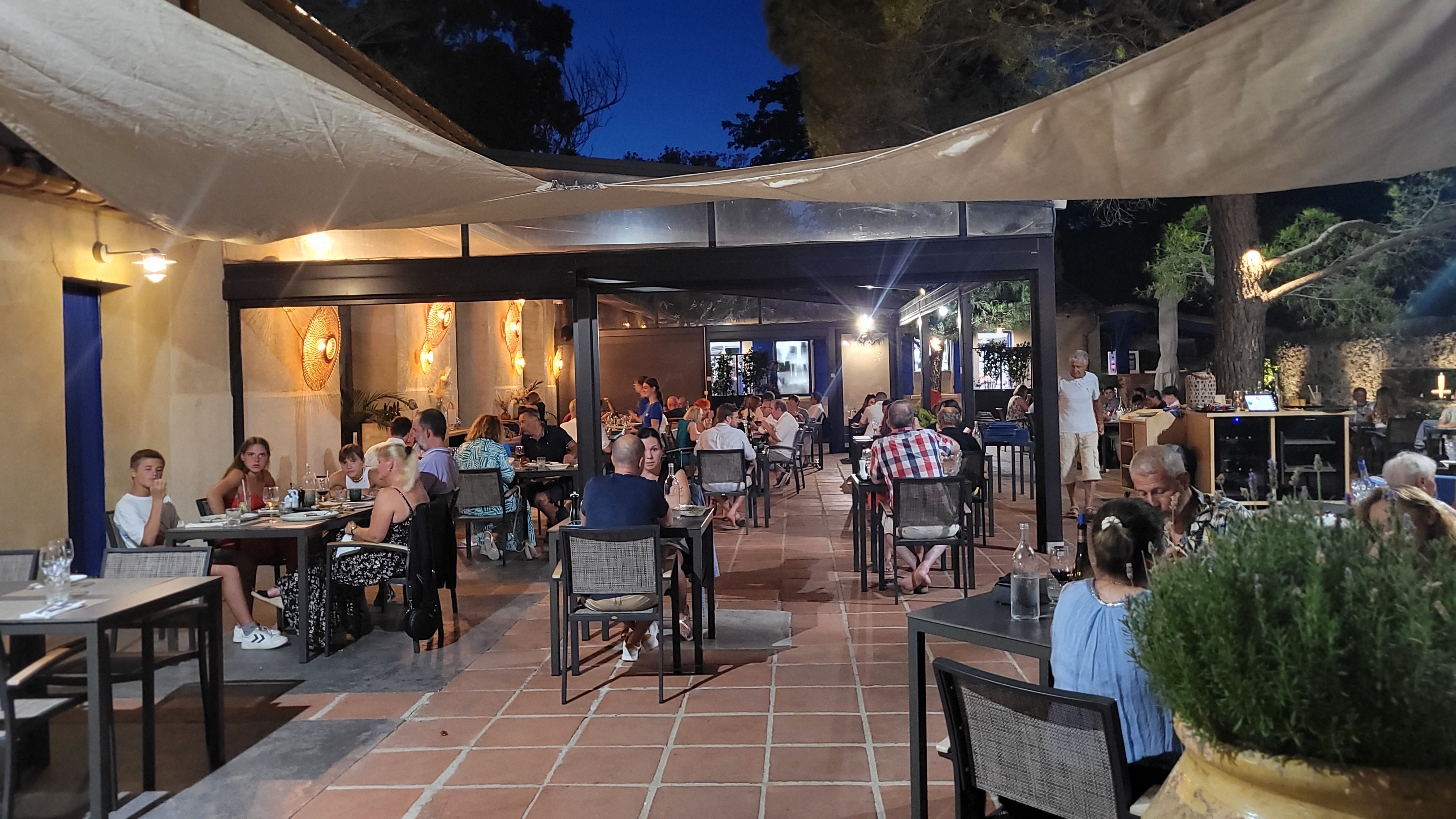 Lieu magique de par sa situation. Côté tapas installé dans les vignes avec vue sur mer. Accueil sympa. De bons petits plats copieux et gourmands. Tarifs légèrement au-dessus de la moyenne vite oublié. Un bel endroit pour passer une bonne soirée à deux ou entre amis. Le spectacle un peu bruyant est dans la salle quand les bobos locaux sont là.