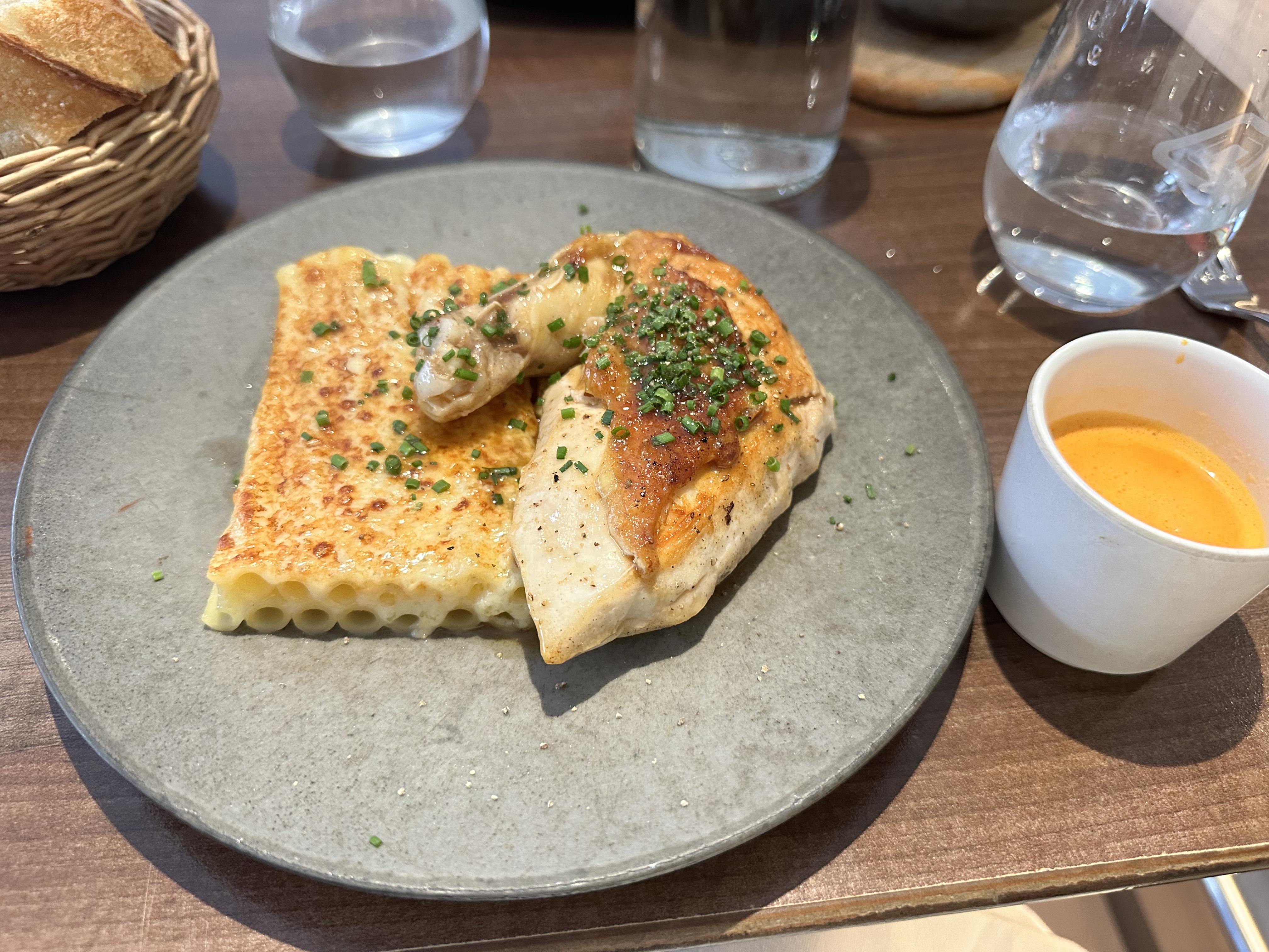 Je suis tombé par hasard sur les cocottes ce soir sans réservation et même si cela avait l'air très bondé, ils ont pu nous asseoir immédiatement au comptoir. tout, du service à la nourriture, était phénoménal ! nous avons testé le plat du jour (soupe de potiron en entrée, ragoût de veau(?), chèvre et tiramisu) et les escargots, ragoût de paleron de bœuf et crème brûlée en dessert. ce n'était pas seulement notre premier repas à Paris mais aussi mon repas d'anniversaire et ça nous a vraiment époustouflé ! nos serveurs étaient très serviables, attentionnés et gentils. nous étions nerveux car nous ne sommes pas francophones mais ils nous ont tout de suite mis à l'aise !