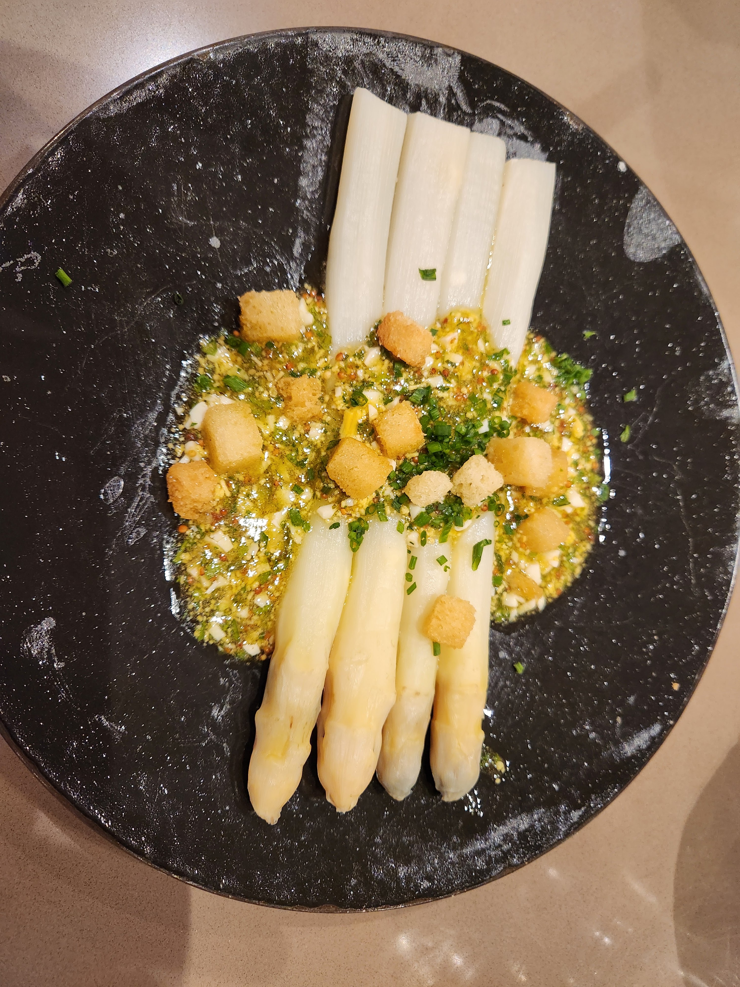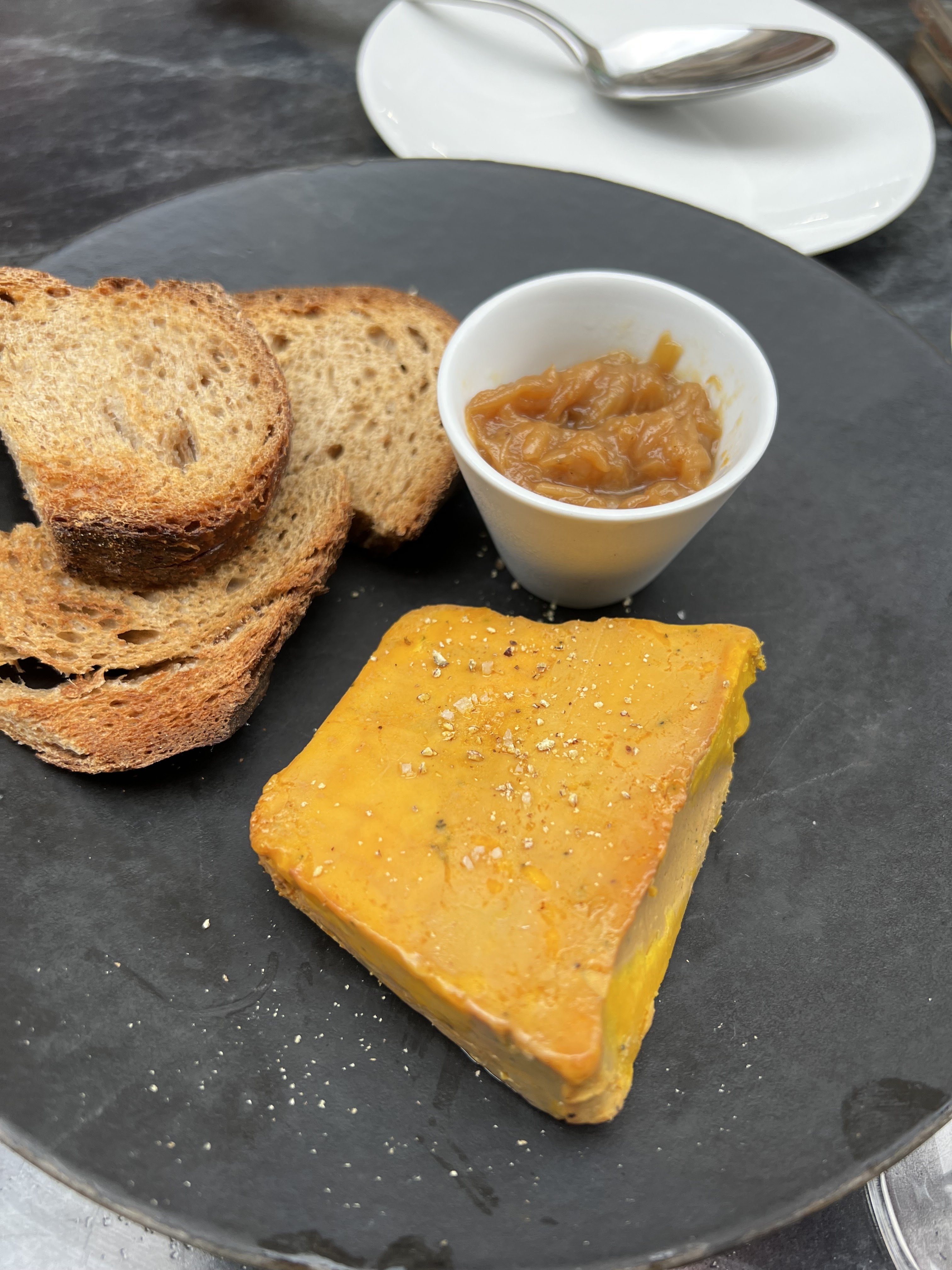 Mmmmmmmmmmmmm- délicieux, délicieusement et professionnellement présenté! Mais vos chaises pas confortables enlèvent la cinquième étoile.. j’avais pas faim pour le dessert - vite il faut retourner..