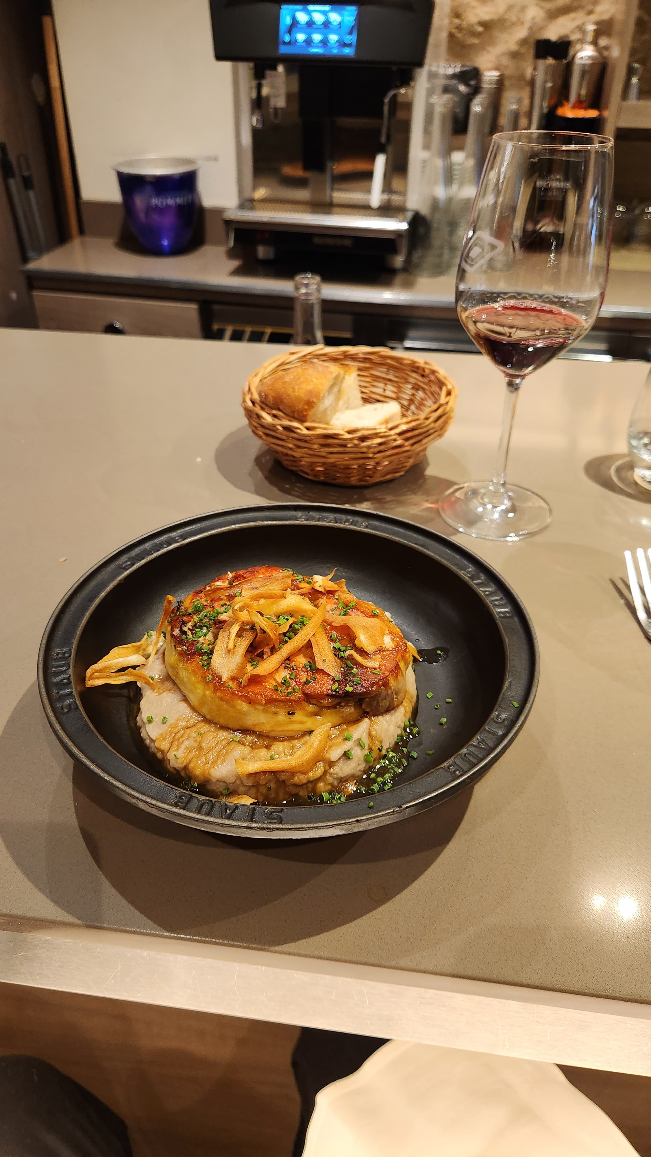 Bonne nourriture et bon vin. Je pensais que les escargots et le cassoulet avaient tous deux besoin de plus d'assaisonnement. Mais plus encore, nous avons essayé de venir ici deux fois au cours de la dernière année, mais notre tout-petit avait d’autres idées. Aujourd’hui, non seulement il a fait du bon travail pour rester socialement acceptable, mais le personnel s’est mis en quatre pour nous accueillir. Un bon repas, du GRAND vin et une expérience familiale fantastique. Merci pour cette bonne nuit à Paris !