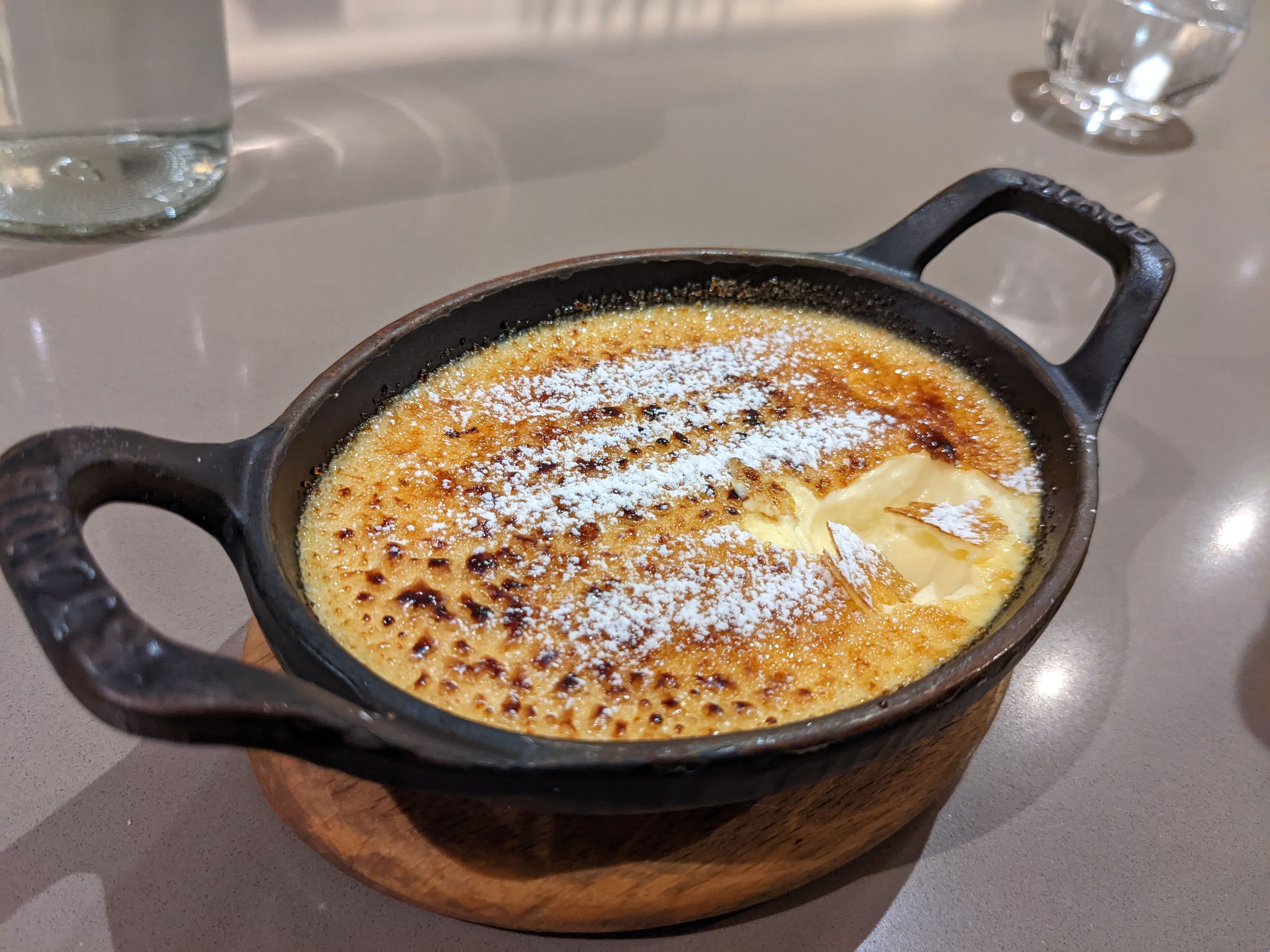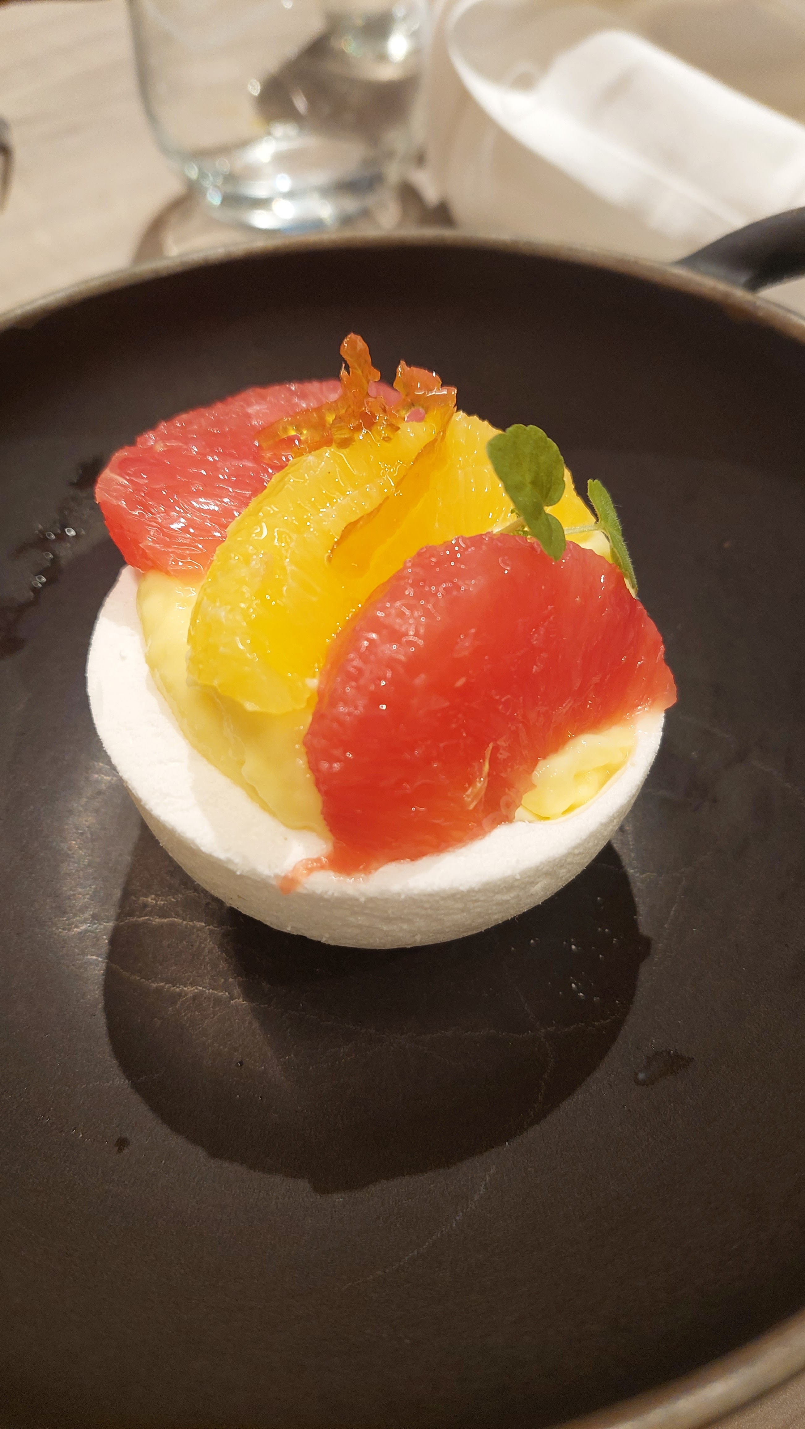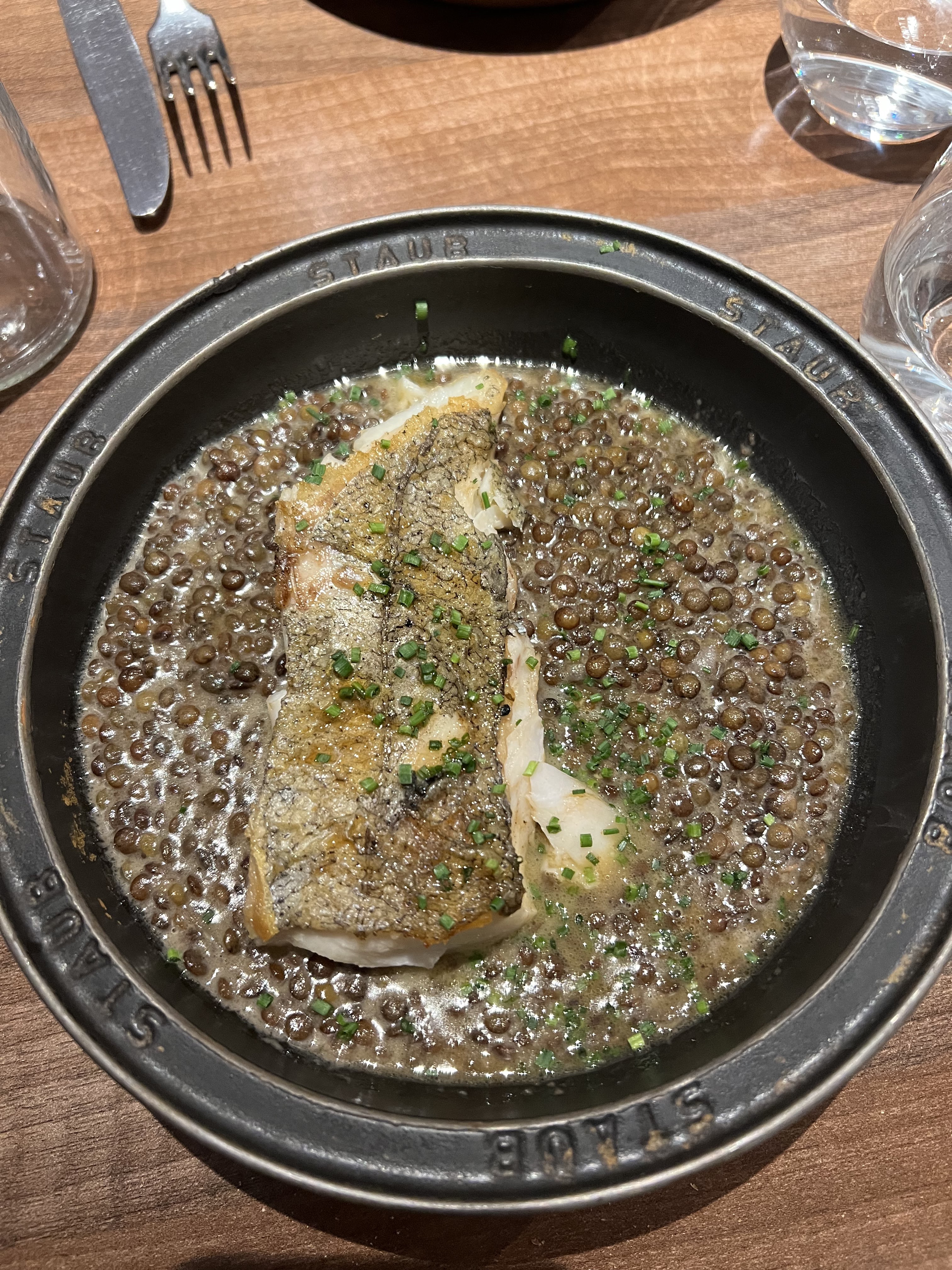 La nourriture était phénoménale. Les couteaux étaient frais et si une bonne portion pour un apéritif avait les cocottes de pigeon et l'orzo à l'encre de seiche qui étaient si bien exécutés que je voulais commander à nouveau sur place. La crème brûlée aux agrumes était?. Je regrette seulement d'avoir participé à ma dernière nuit à Paris car j'en suis parti avec l'envie d'y manger à nouveau.