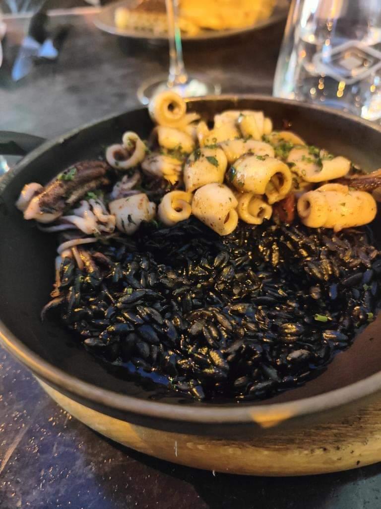 Je suis venu avec des amis. J'ai pris en plat un risotto de pâtes à l'encre de seiche, et poêlée de chipirons et chorizo. C'était très bon le riz était gluant mais pas trop et bien assaisonner les chipirons était bon et juste je trouve que ça manquant de chorizo. En dessert j'avais pris un dessert du jour qui était composé de fromage blanc avec un coulis de mangue et des bout de crumble qui était très bon. Très bon service et personnel très sympathique. Je recommande
