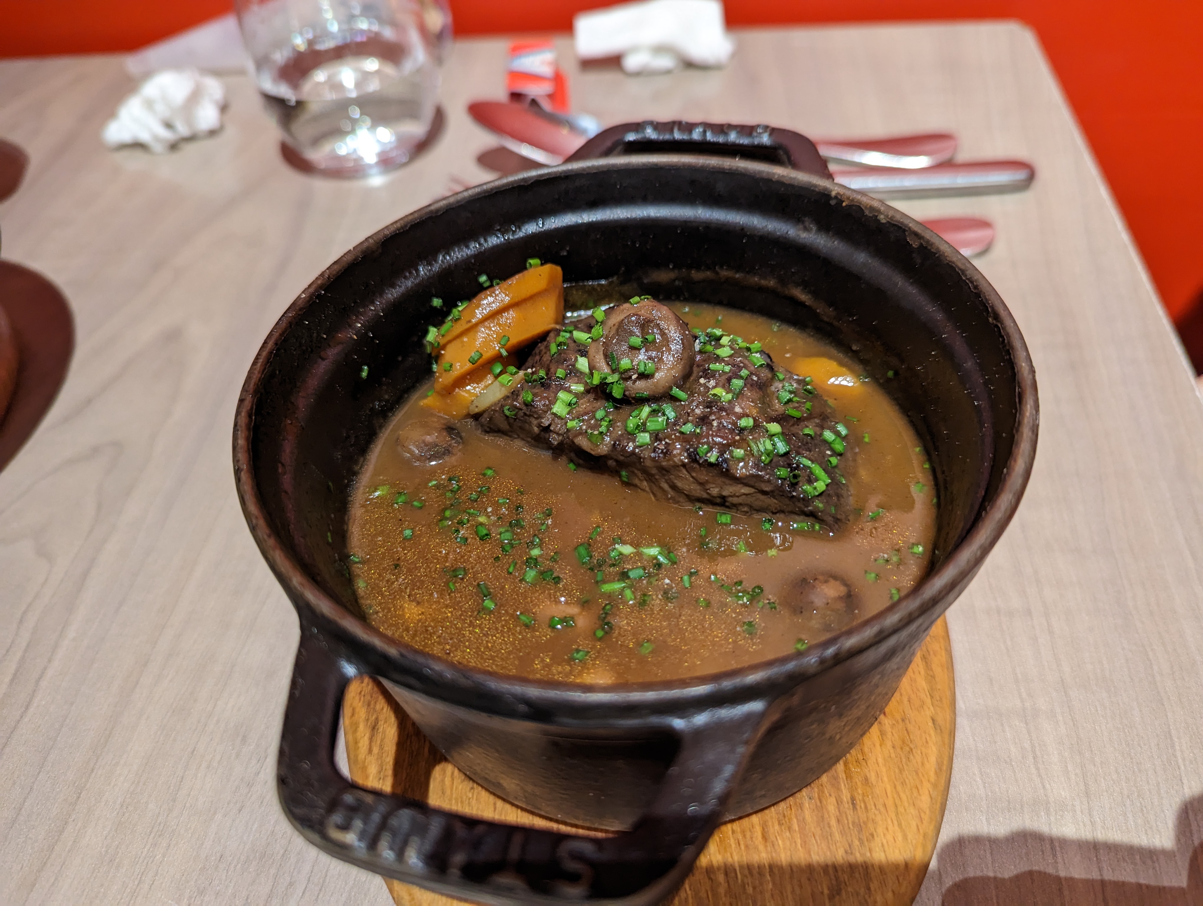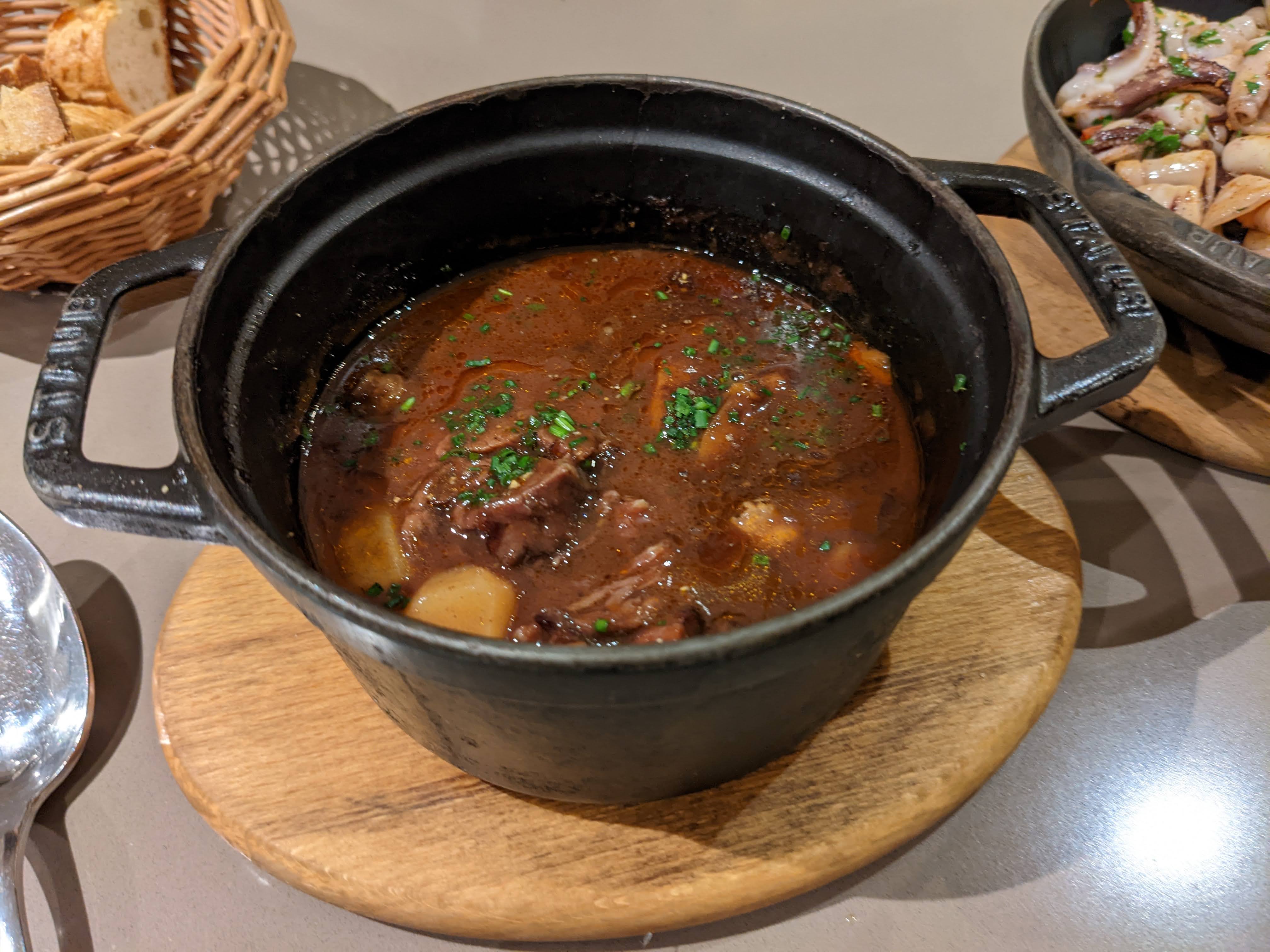 Il y a deux ans, j'ai visité ce restaurant et j'ai tellement apprécié le ragoût de bœuf que je l'ai recommandé à un ami en visite à Paris. Aujourd'hui, il y est allé et malheureusement, il n'a pas apprécié le ragoût car il manquait de saveur, de texture et de couleur. Curieux, alors je l'ai comparé avec la photo que j'avais prise il y a deux ans, j'ai été surpris par la différence. Je pensais que c'était l'éclairage mais je ne pense pas. Je suis tout à fait disposé à modifier ma note si j'obtiens une explication du resto. Merci!