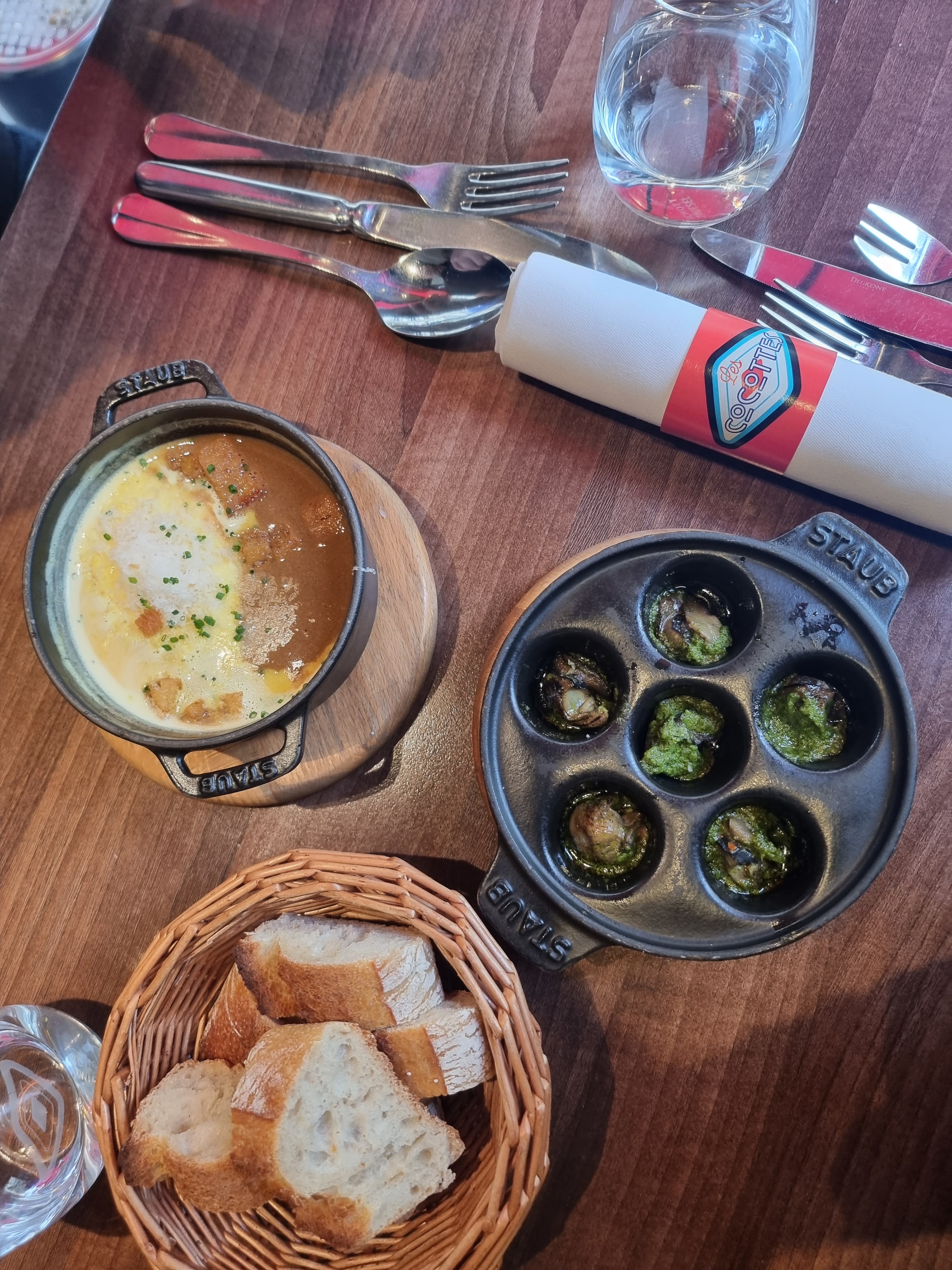 Nous avons décidé d'essayer Les Cocottes pour dîner lors de notre première nuit à Paris car ils sont situés à quelques pas de chez nous. Une nourriture incroyable et merveilleusement unique. Nous avons bien sûr dû essayer les escargots ! Le personnel était super, à la fois sympathique et arrangeant. Si vous recherchez une cuisine haut de gamme à un prix raisonnable, ce restaurant est un incontournable ! Bien sûr, notre cocktail de prédilection était un Spritz ☺️