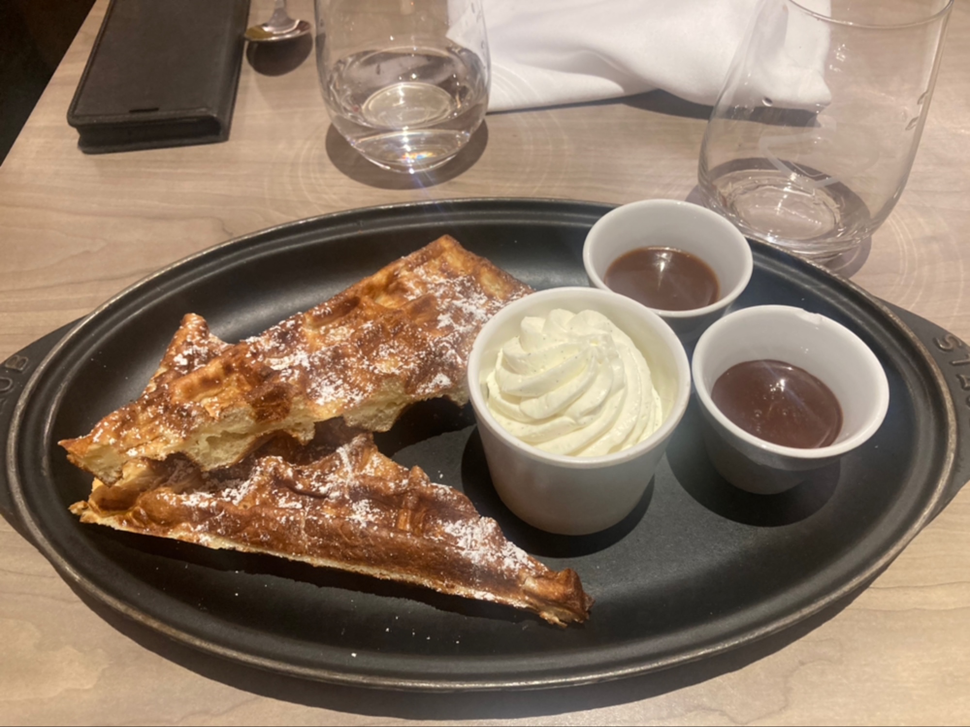 Que dire à part que c’est divin merveilleux raffiné digne un chef étoilé .Les crevettes sont décortiquées c’est un plaisir elles sont délicieuses cette poêlée de crevette je ne vous parle même pas du risotto avec son tendre agneau viande extra tendre 🥰.Le dessert est d’une légèreté c’est ce qu’on recherche mais par dessous tout le fait maison est appréciable la gauffre légère craquante onctueux et la chantilly d’une extreme finesse le caramel beurre salé belle gourmandise comme je dis souvent le dessert va au cœur ❣.Le service est impeccable souriant serviable .Chapeau 🎩 Merci je suis bluffée