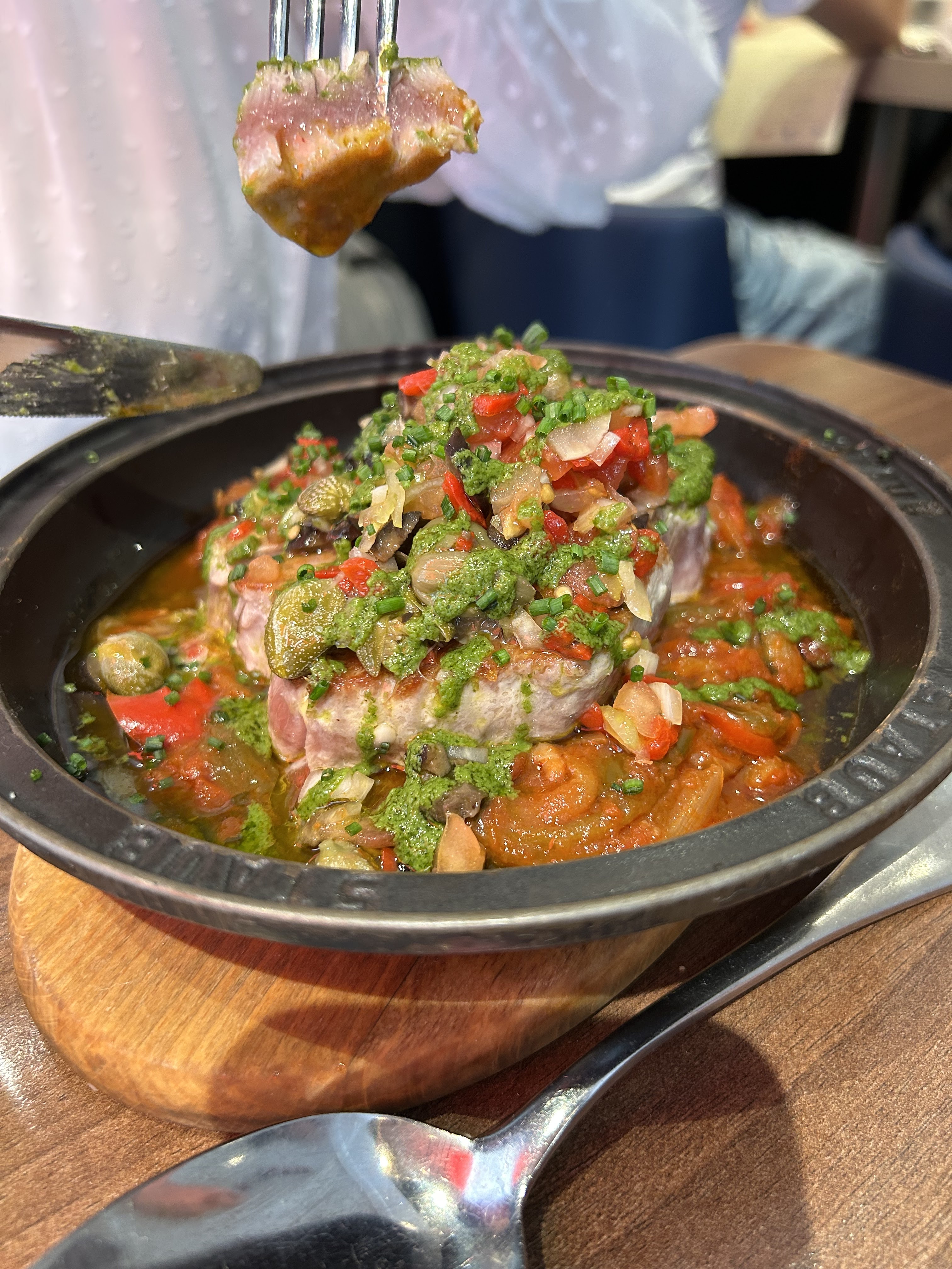 Nous n'avons pas mangé ici, nous étions un groupe de 5 personnes assises au bar. Ils se sont montrés du doigt en soulignant qu'il était « obligatoire » de commander un plat principal par personne. Nous voulions essayer davantage d'entrées et d'autres plats qui ne figuraient pas dans les options principales. Ils ont dit que vous pouviez commander, mais que vous êtes de toute façon OBLIGÉ de commander un plat principal au choix du restaurant. J'ai répété.. Pas de soucis pour l'addition, nous commanderons du vin, des desserts, mais je ne veux tout simplement pas commander 5 plats dont je ne veux pas. Nous avons dû partir. Soit ils mettent plus d'options dans le menu, soit ils laissent simplement les gens commander ce qu'ils veulent. Service épouvantable ! Je ne recommande à personne de venir ici.. On vient passer un bon moment en famille ou entre amis.. Juste pour se sentir insulté et offensé. S'il vous plaît, rendez-vous service, n'envisagez même pas de venir dans cet endroit.