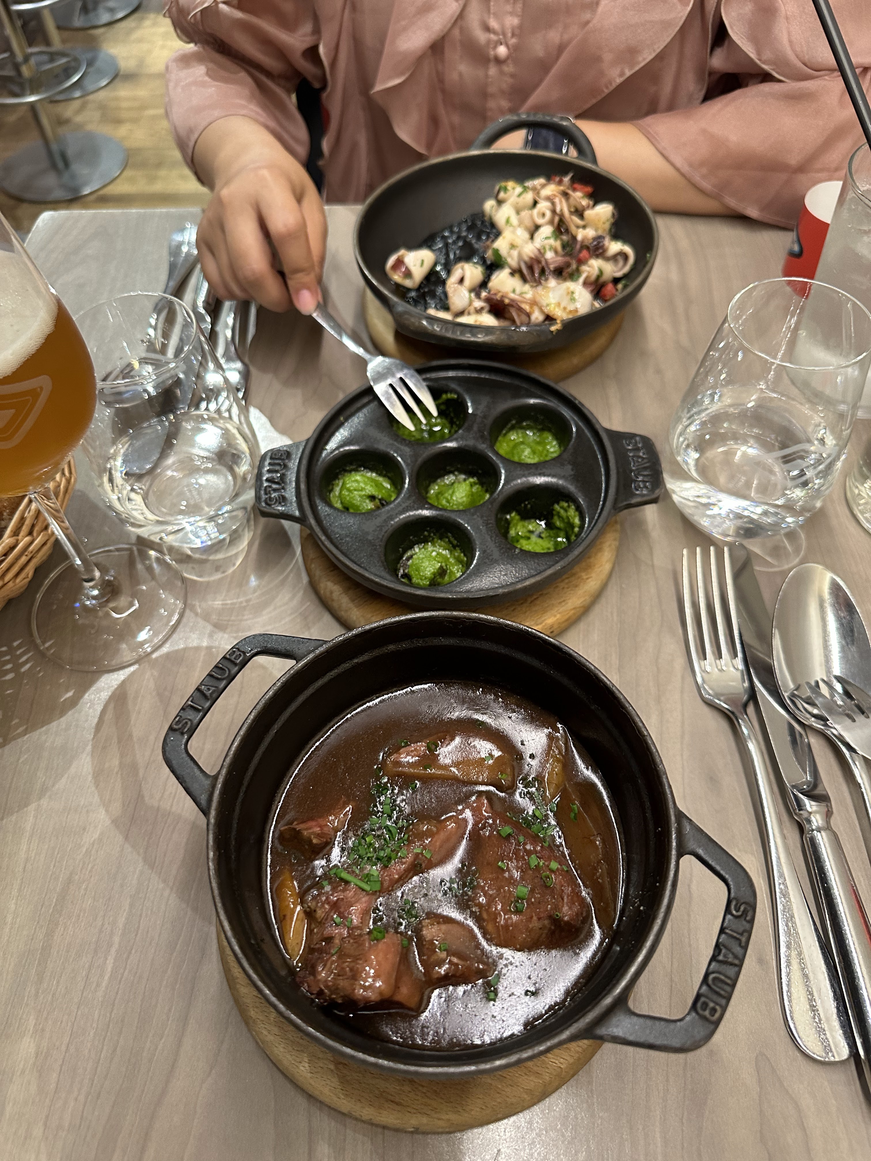 La décoration était très moderne - j'adore ! Le service était excellent. La nourriture avait un bon goût. Cependant, j'ai trouvé la portion très petite. Et pas de climatisation. La présentation est belle et servie dans des casseroles en fonte Staub.
