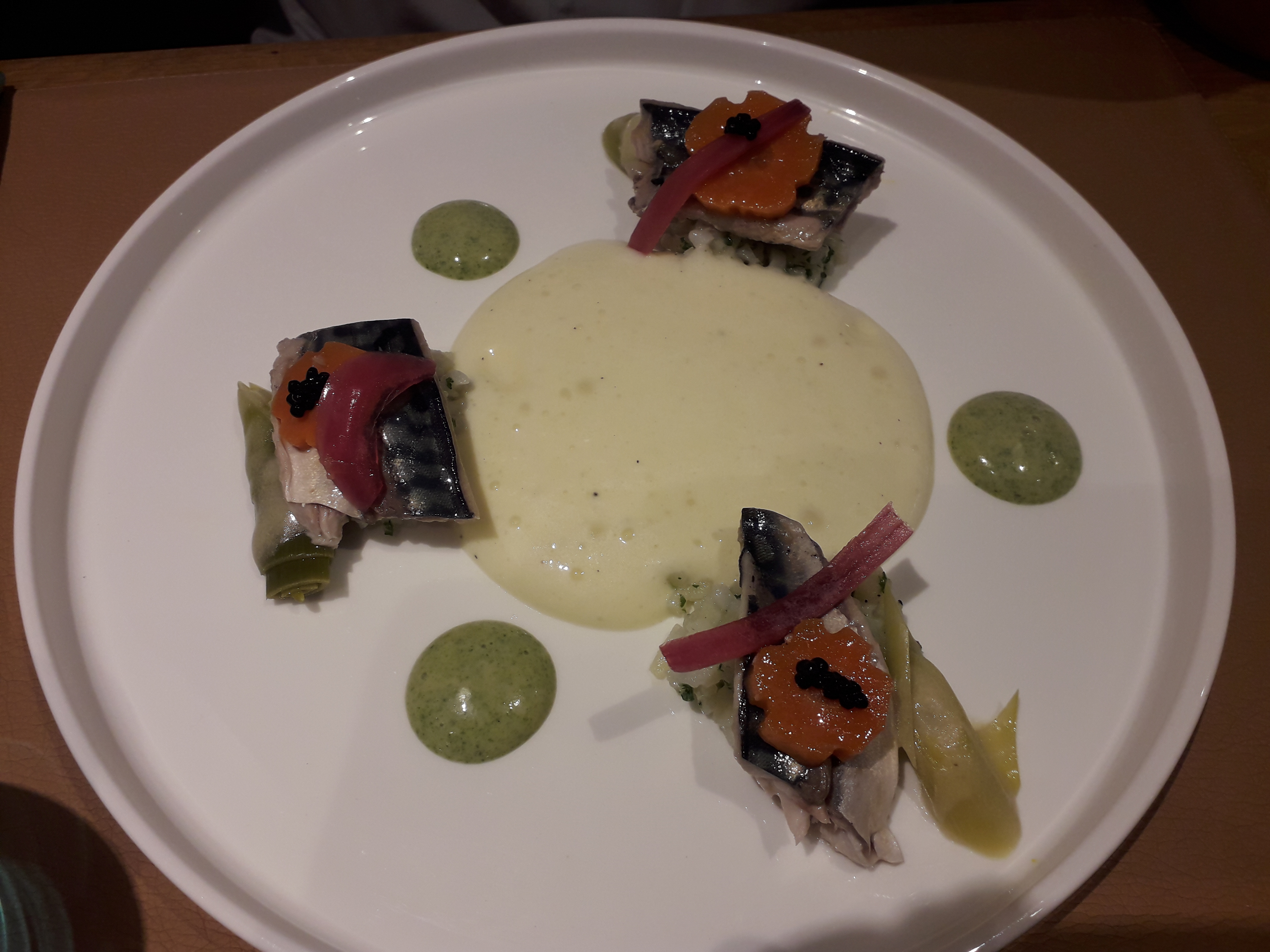 Nous avons pris les plats du jour,et avons saisi l iccasion de commander des maquereau x à la sauce moutarde ancienne sur un lit de poireaux!!!!aucune arête, frais,extra et fondant!!!!