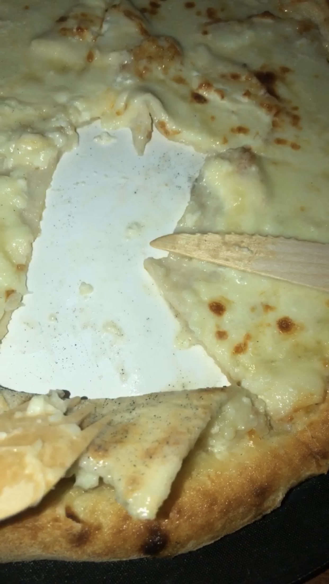 Pizzas bien garnies, cependant la pâte est caoutchouteuse, élastique donc très difficile à couper avec des couverts en bois . N'est-ce pas une pâte pre-congelee ?