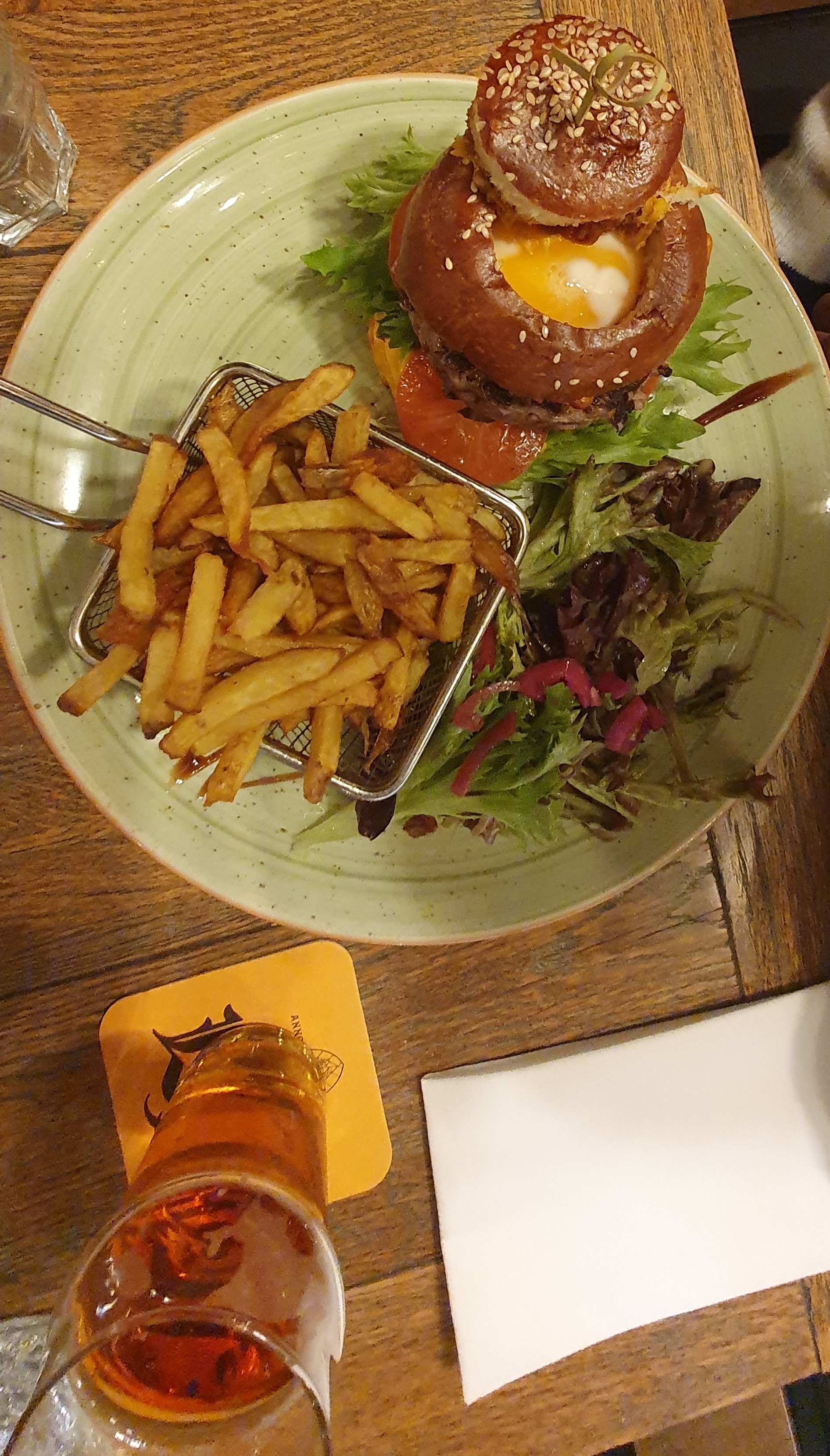 Plat cher pour leur composition 17.50€ un burger le pain n'est pas fait artisanalement et ça se voit Dommage on paye la vue sur la cathédrale