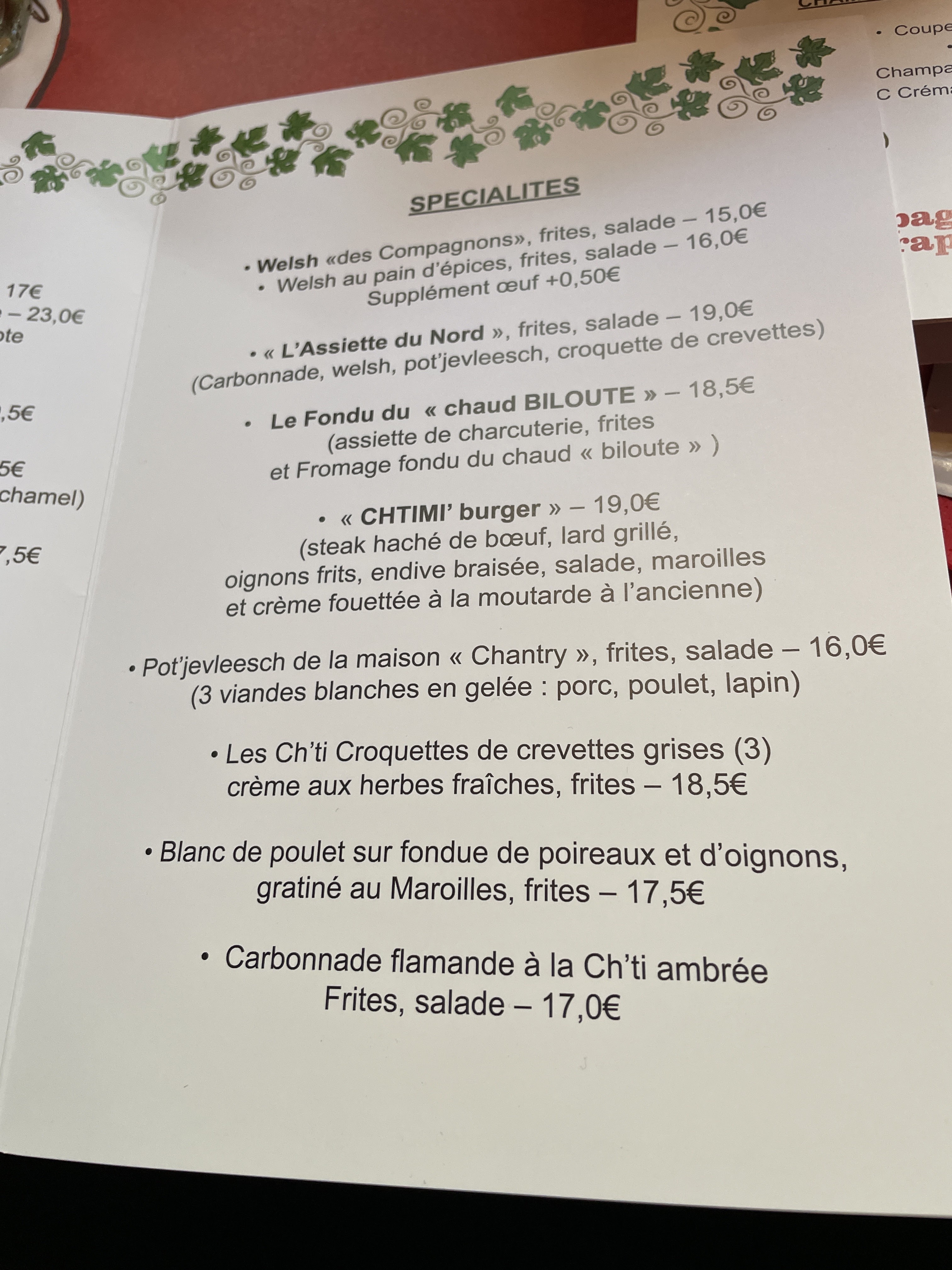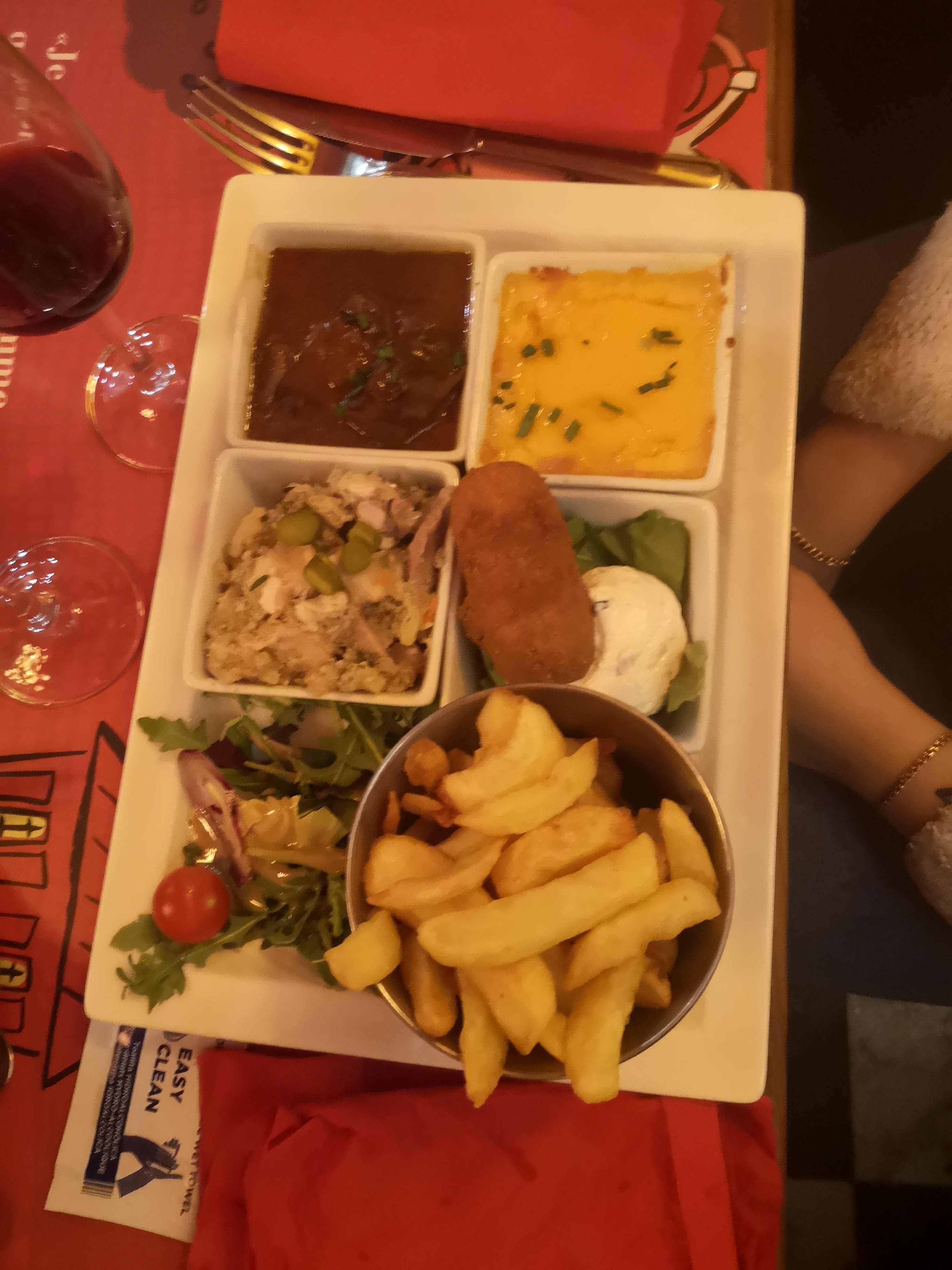 Si vous cherchez un restaurant pour goûter des plats typiques du Nord, vous êtes au bon endroit. Une carte variés avec des spécialités et le seul endroit que l'on ait trouvé où l'on peut goûter 4 spécialités dans un seul plat. 👍 Accueil super sympa, service charmant, cadre atypique et assiette délicieuse. Merci de votre accueil on a passez un super moment chez vous. Je recommande.