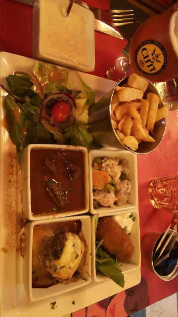 Super restaurant .prendre l assiette du nord plusieurs spécialités Welsh carbonnade viandes en gelée. .....seul inconvénient ne reserve pas sur RDV entre 30 mn et 1 heure d attente