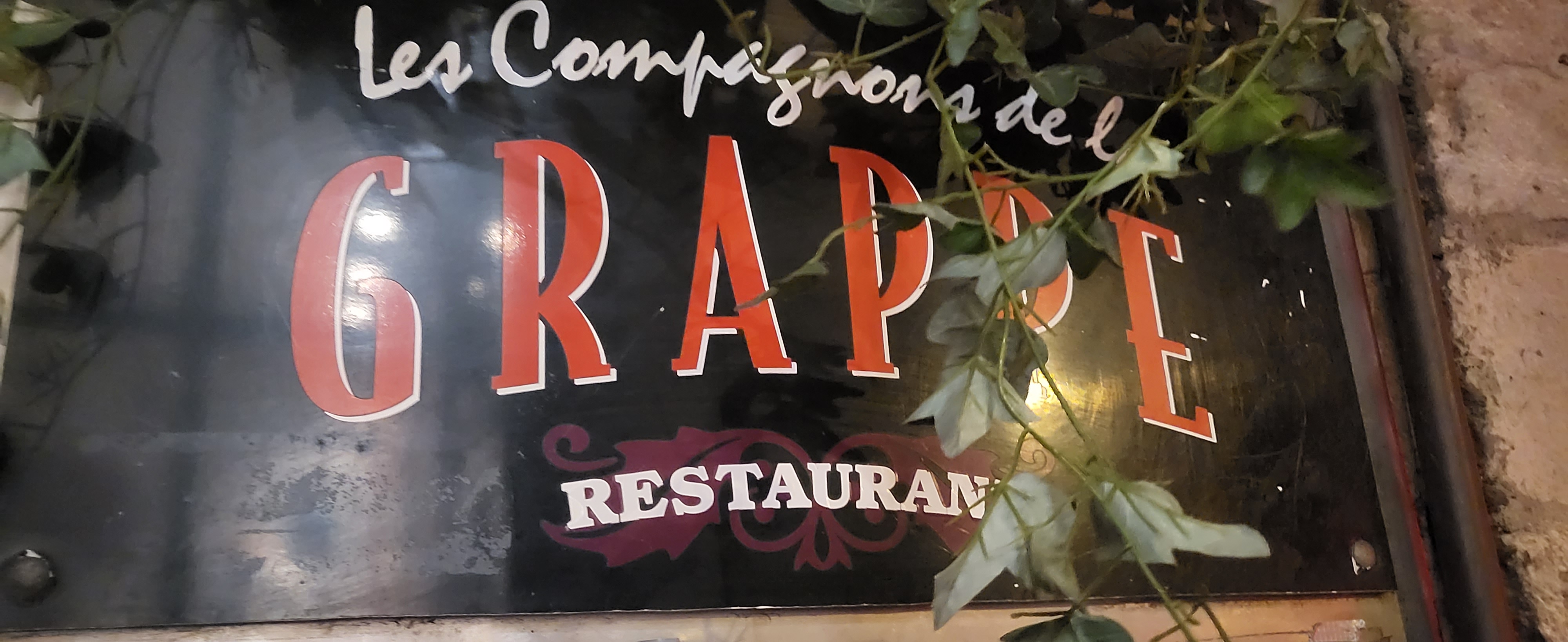 Première visite aux Compagnons de la Grappe et nous avons adoré. Le dépaysement est total dès que l’on emprunte la petite ruelle qui mène jusqu’au resto. Le cadre est joli et cosy. Le personnel est agréable et délivre un service parfait ( les plats arrivent rapidement mais on vous laisse le temps de vous régaler sans vous presser). Et la cuisine… un délice. Vraiment je recommande et nous reviendrons avec plaisir.