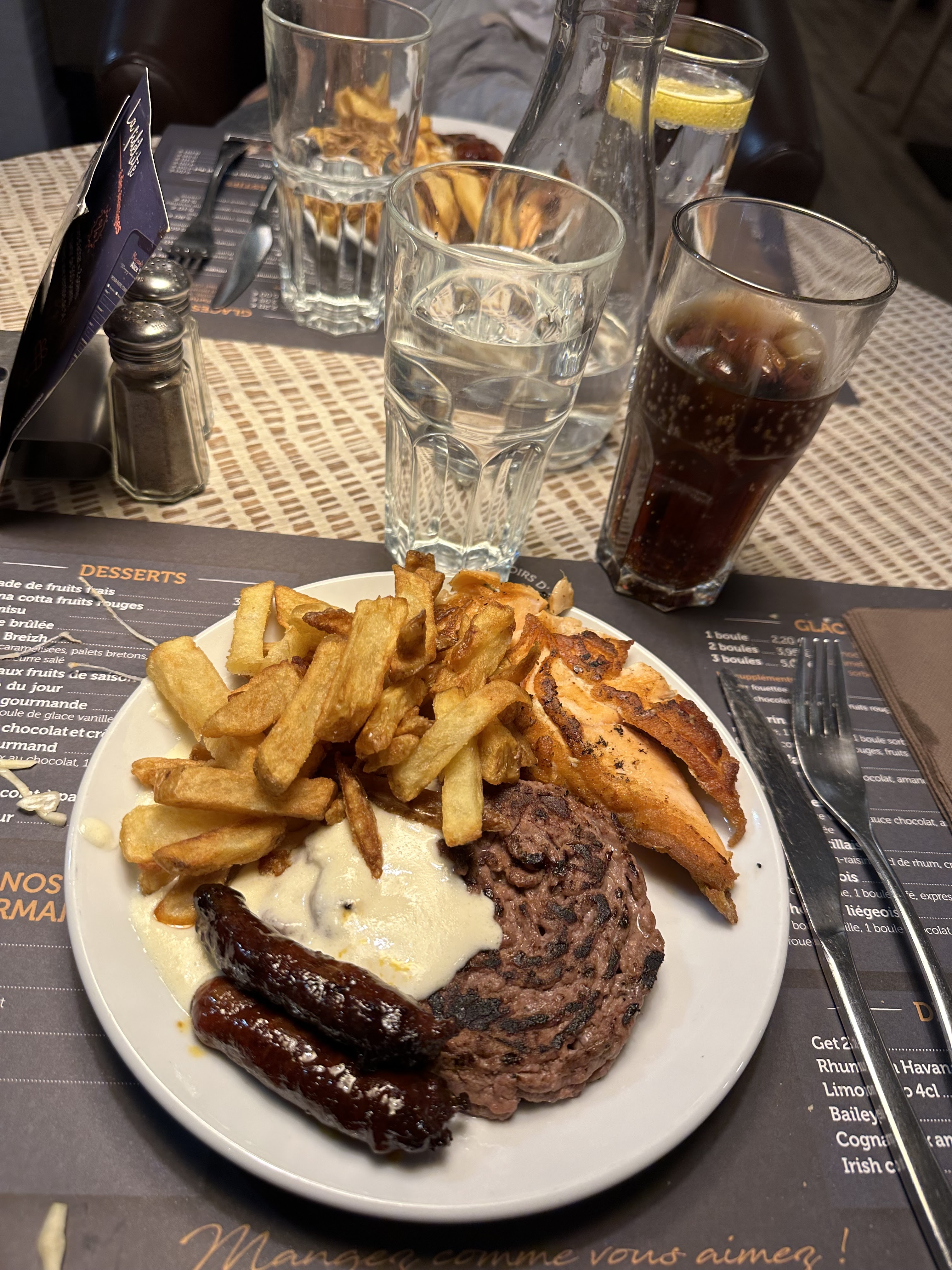 Très bon rapport qualité prix ! Pas mal de choix que ce soit pour les entrées, plats ou desserts. Le steak haché cuit au grill est un délice et le café gourmand était très bien.