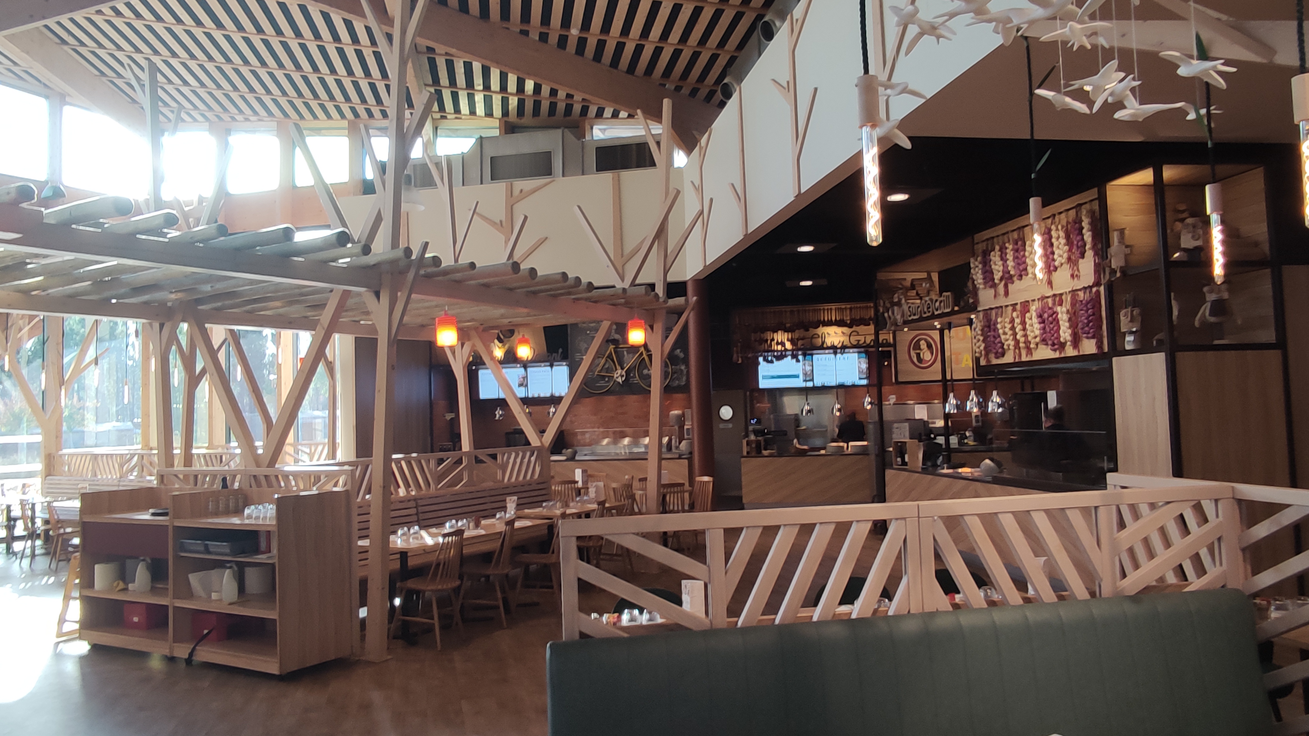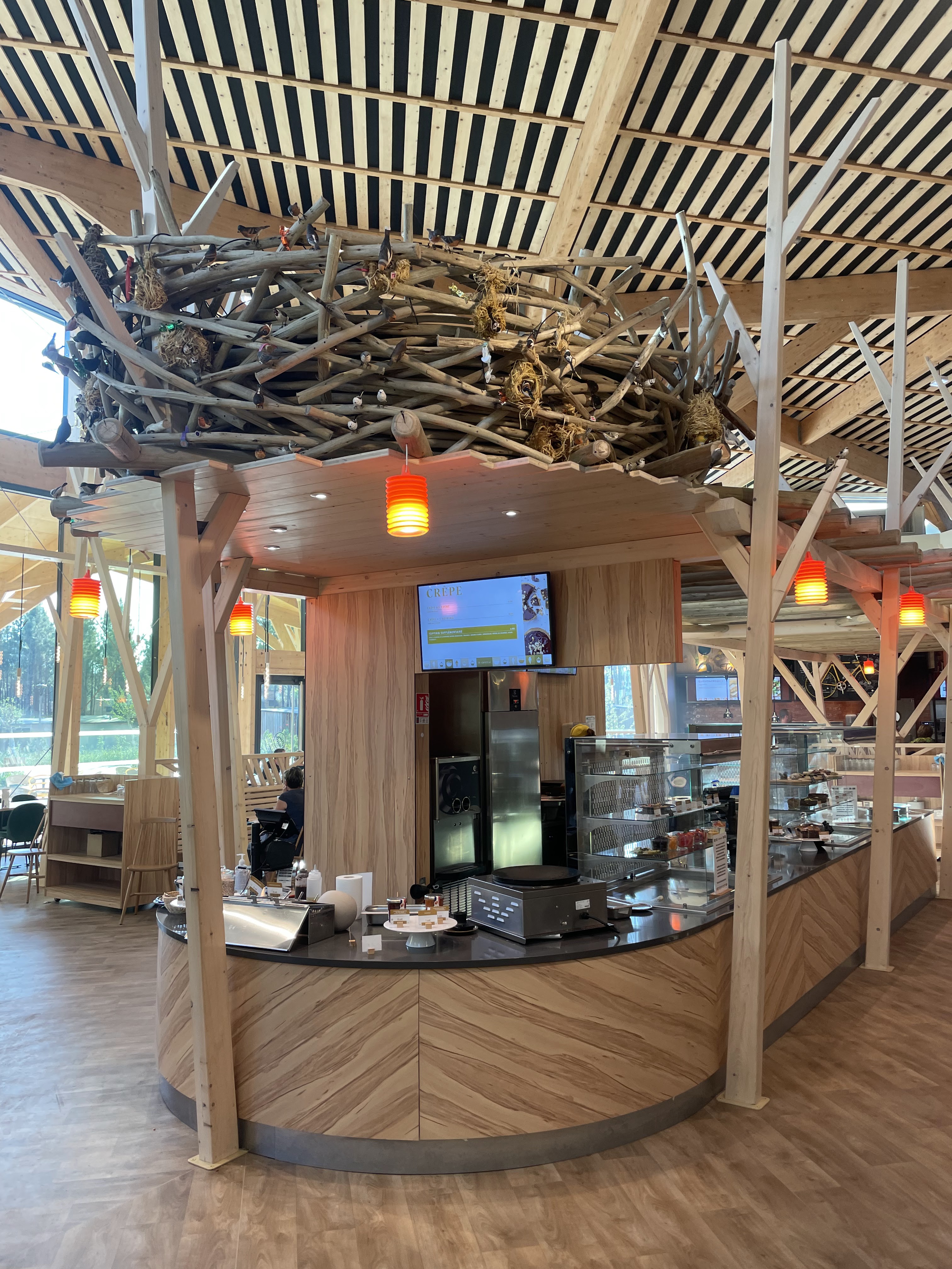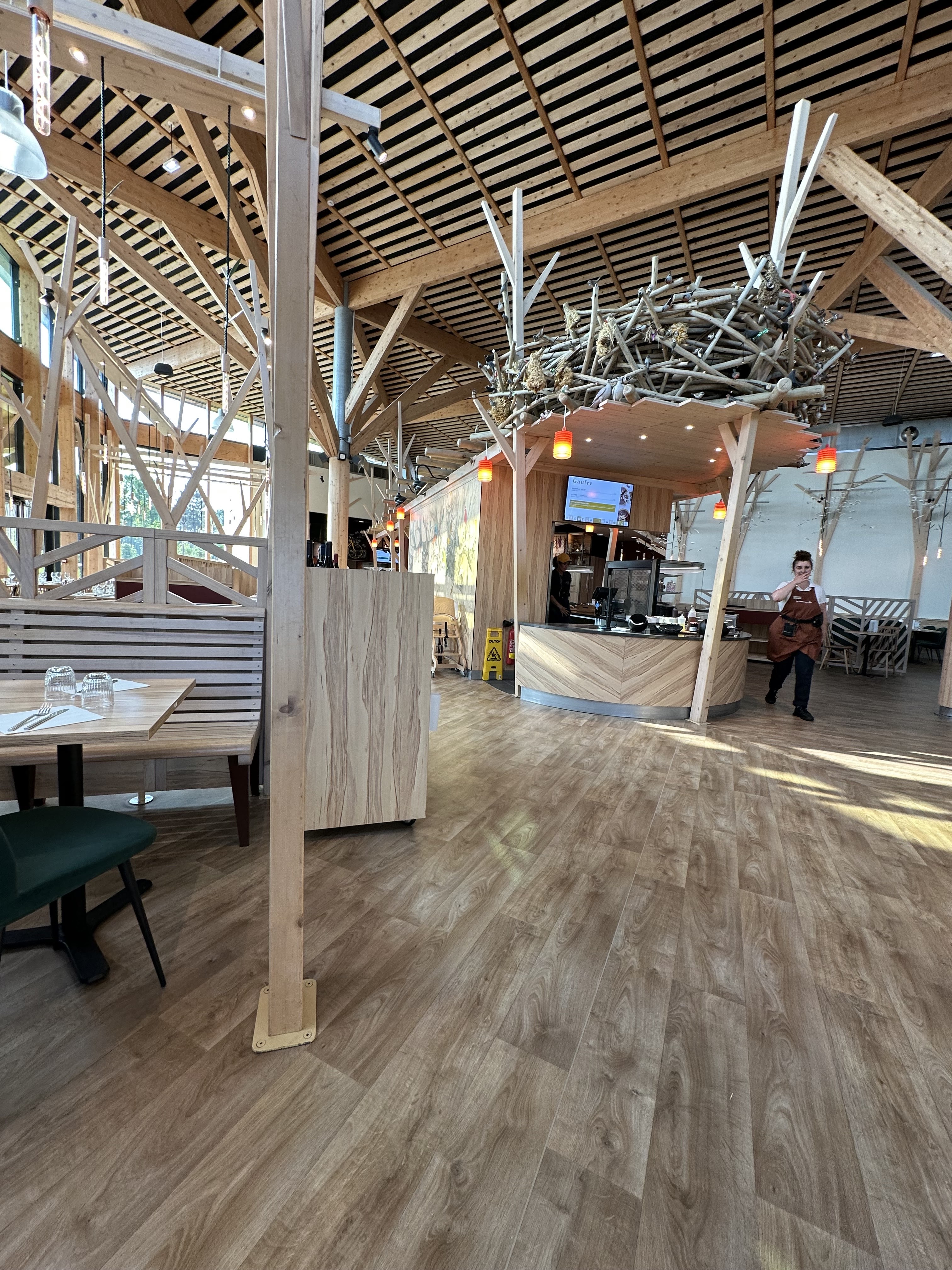 Quelle deception ! Pour un environnement comme center parcs, ce n'est aucunement à la hauteur. Plat cher et peu copieux. Burger à 17€ avec pomme de terre pas cuite. 11€ le ramequin de guacamole, coupe de fruits en dessert , mais où sont les fruits ? Menu enfant non adapté à tous les âges, seule proposition, jambon pâtes. Pour les plus petits qui n'ont pas encore de jolies quenottes vous pourriez au moins proposer une purée. Il faut venir tôt aussi pour avoir une chaise haute...c'est sûr qu'à 12h15 il est déjà trop tard...surtout pour un lieu qui se veut dédié aux enfants. Heureusement que le personnel, notamment aux entrées/desserts ainsi que les serveurses/serveurs ont le sourire. Pour les demoiselles à l'accueil à qui j'ai fait remarquer tout ce que je viens d'écrire et à qui j'ai demandé à parler au chef de salle, la seule reponse a été ,ah oui on nous l'a déjà fait remarquer Allez à center parcs les landes , franchement c'est top. Mais pour ce restaurant , je n'en dirais pas autant !