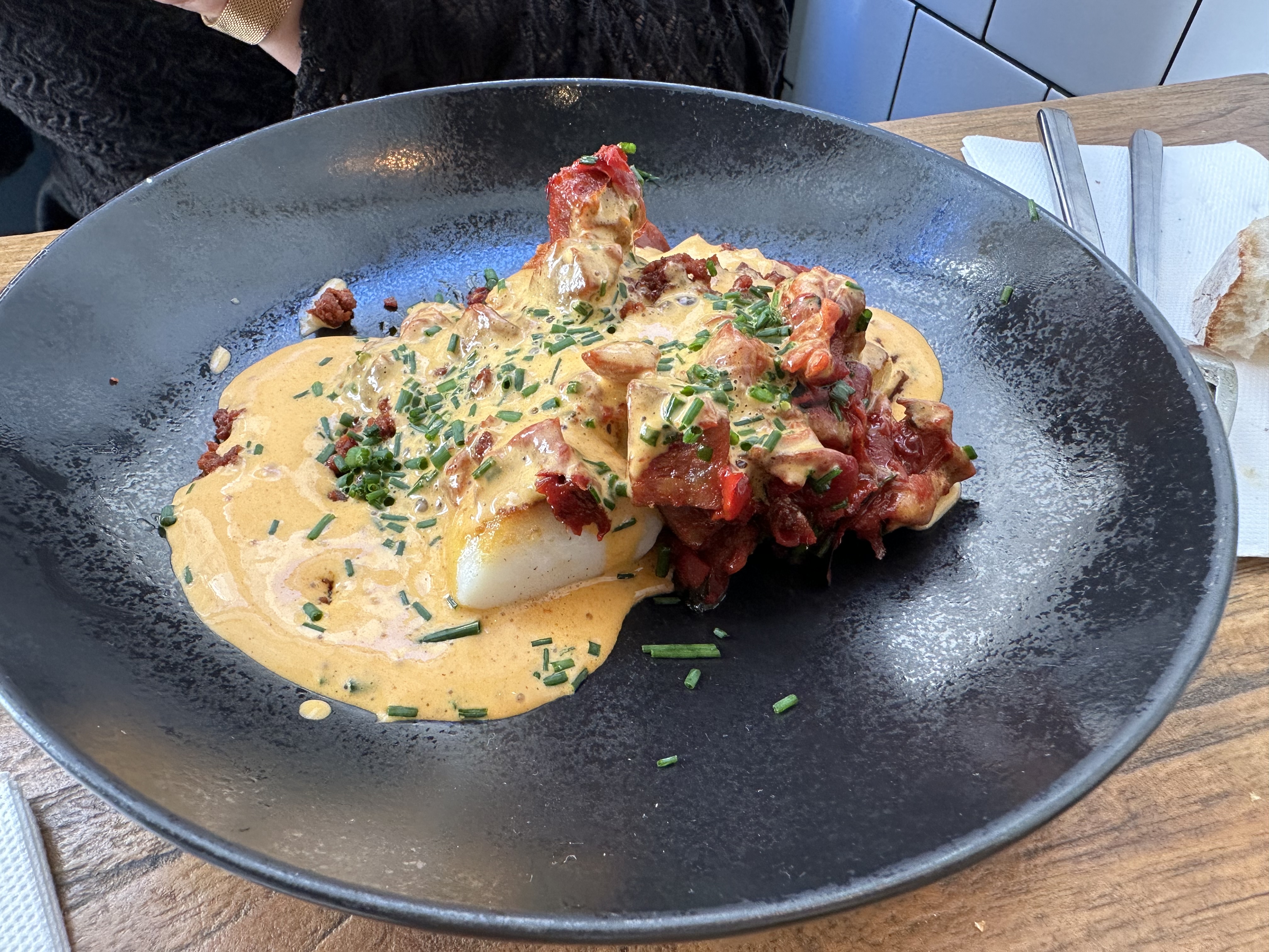 J'ai adoré l'entrée avec le poulpe qui est à tomber ! Ensuite j'ai pris le cabillaud au chorizo, un délicieux plat très tendre ! Nous reviendrons ! 😍