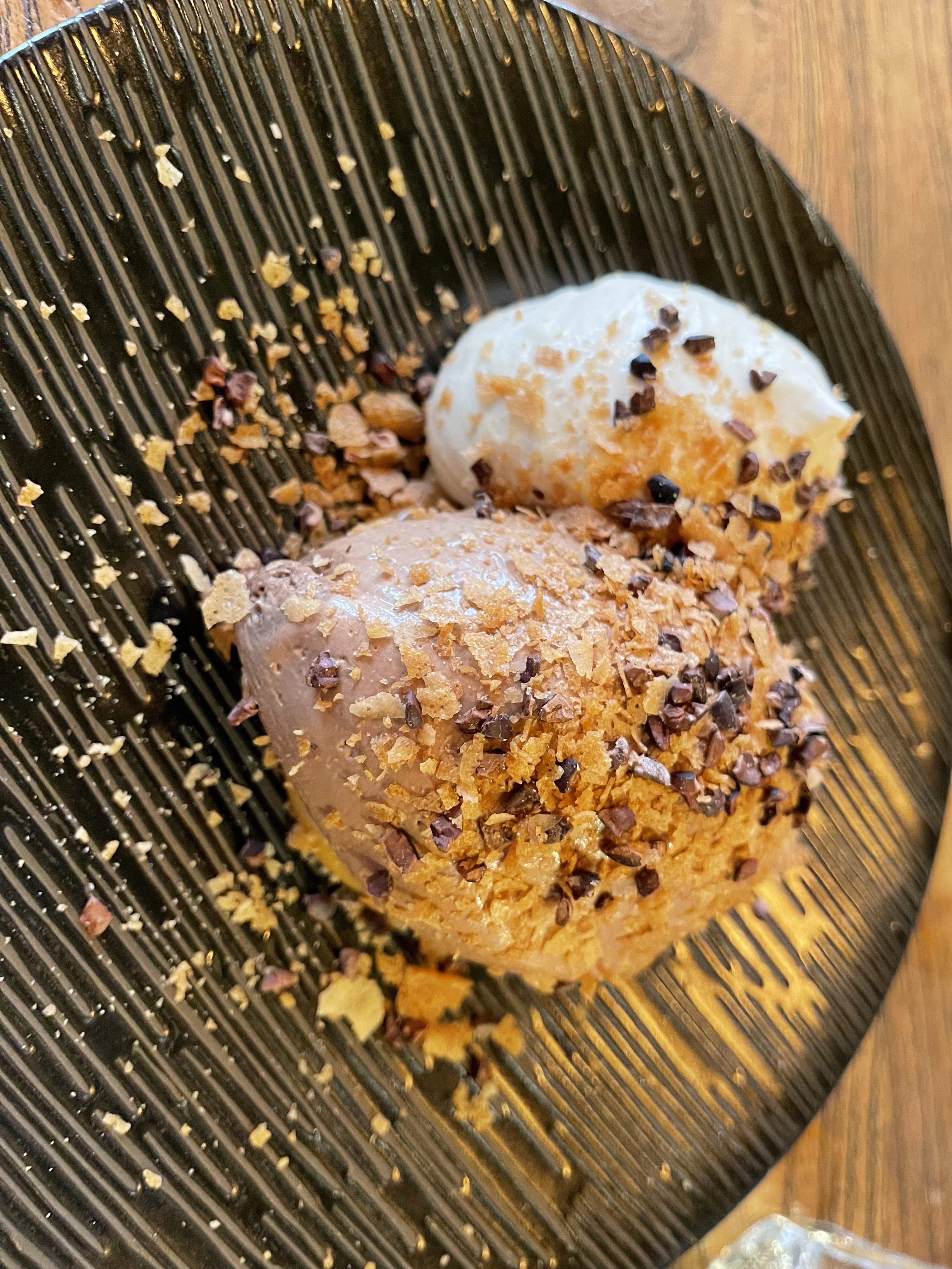 Plat délicieux. On sent que les produits sont frais et de saison. Et même si ce n’est pas à la carte le restaurant propose toujours des plats / entrées en version végétarienne. C’est super appréciable. Petit bémol sur le dessert. La mousse au chocolat était excellente mais aurait a mon sens mérite un peu moins de sucre. De même pour le sorbet coco qui l’accompagnait ! Mais je recommande vivement malgré tout !
