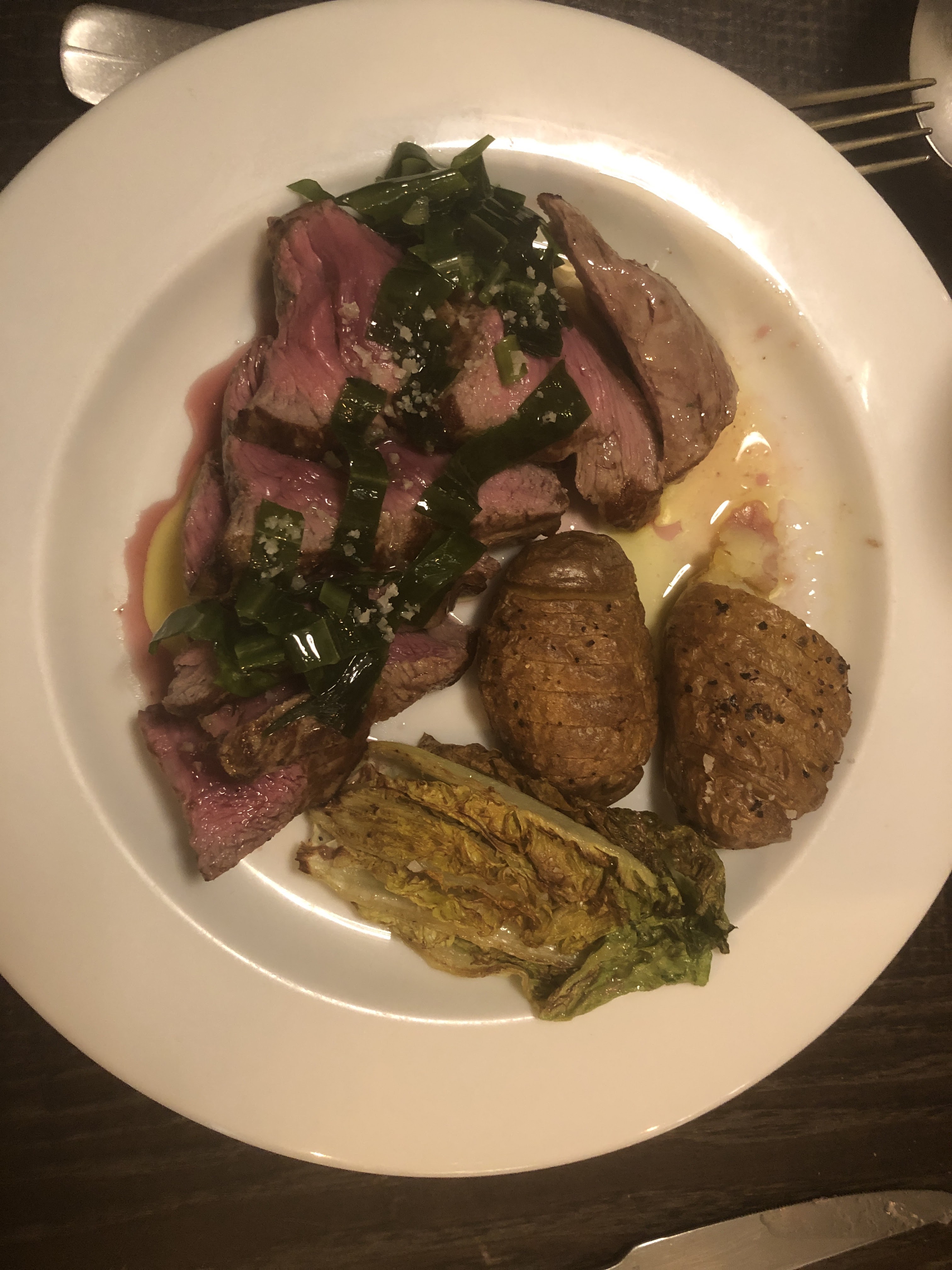 Repas très savoureux. De belles assiettes. Original. Quelqu'un de notre groupe a manqué des légumes avec son steak de surlonge. Tout le reste est super ! Nous venons toujours.