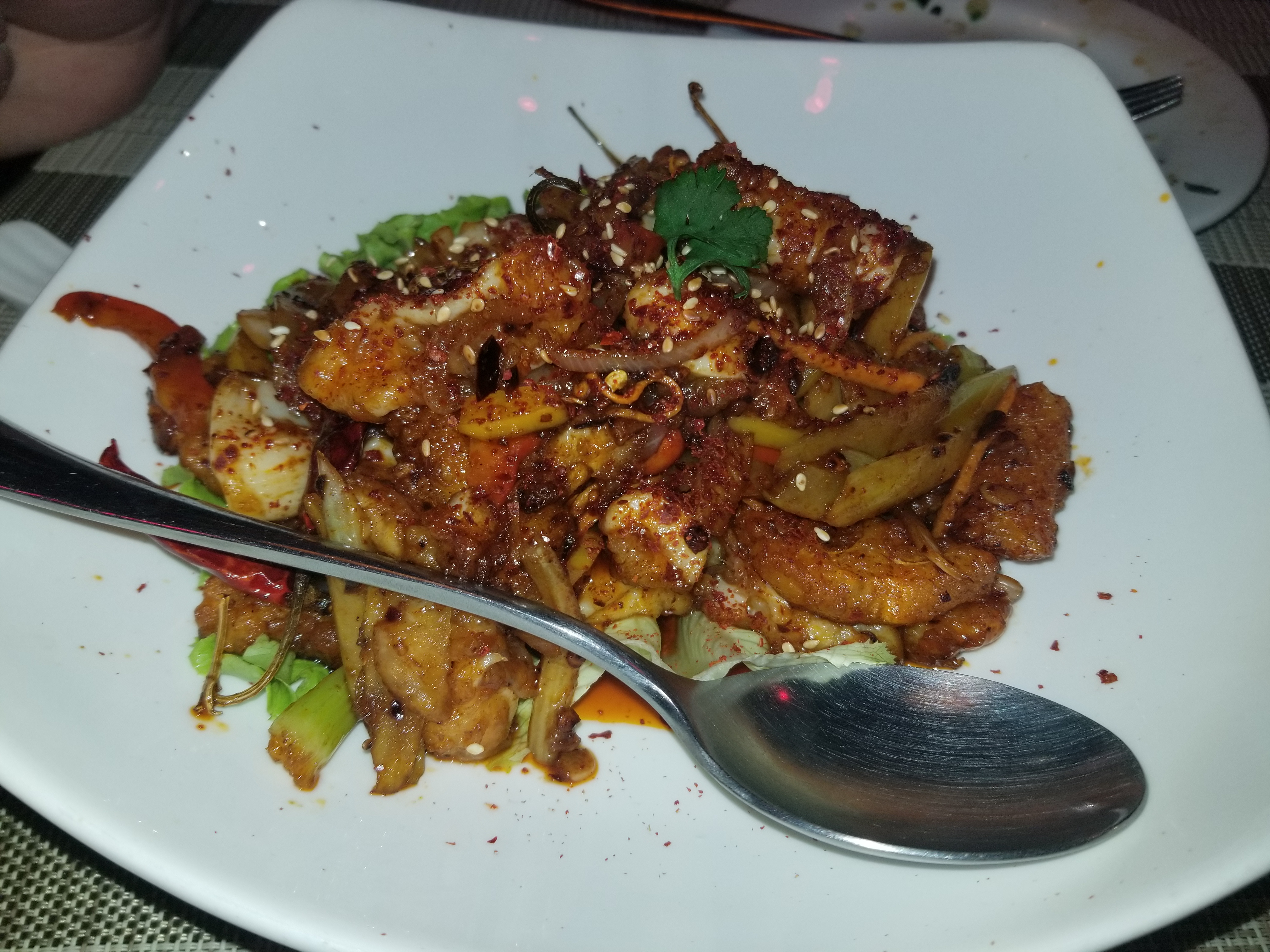 Bel intérieur. Grand espace et bon emplacement. Serveur très sympathique qui est aussi l'un des chefs (je crois). C'est une bonne chose que seulement 3 tables soient occupées, sinon le temps d'attente serait insupportable. C'était un one man show. Prix correct pour la nourriture et la quantité. Nous avons adoré les boulettes de poulet, les aubergines épicées et le bœuf au poivre. Le riz frit de Yangzhou est différent de ceux auxquels nous sommes habitués. Recommandez plutôt du riz nature. Je reviendrais.