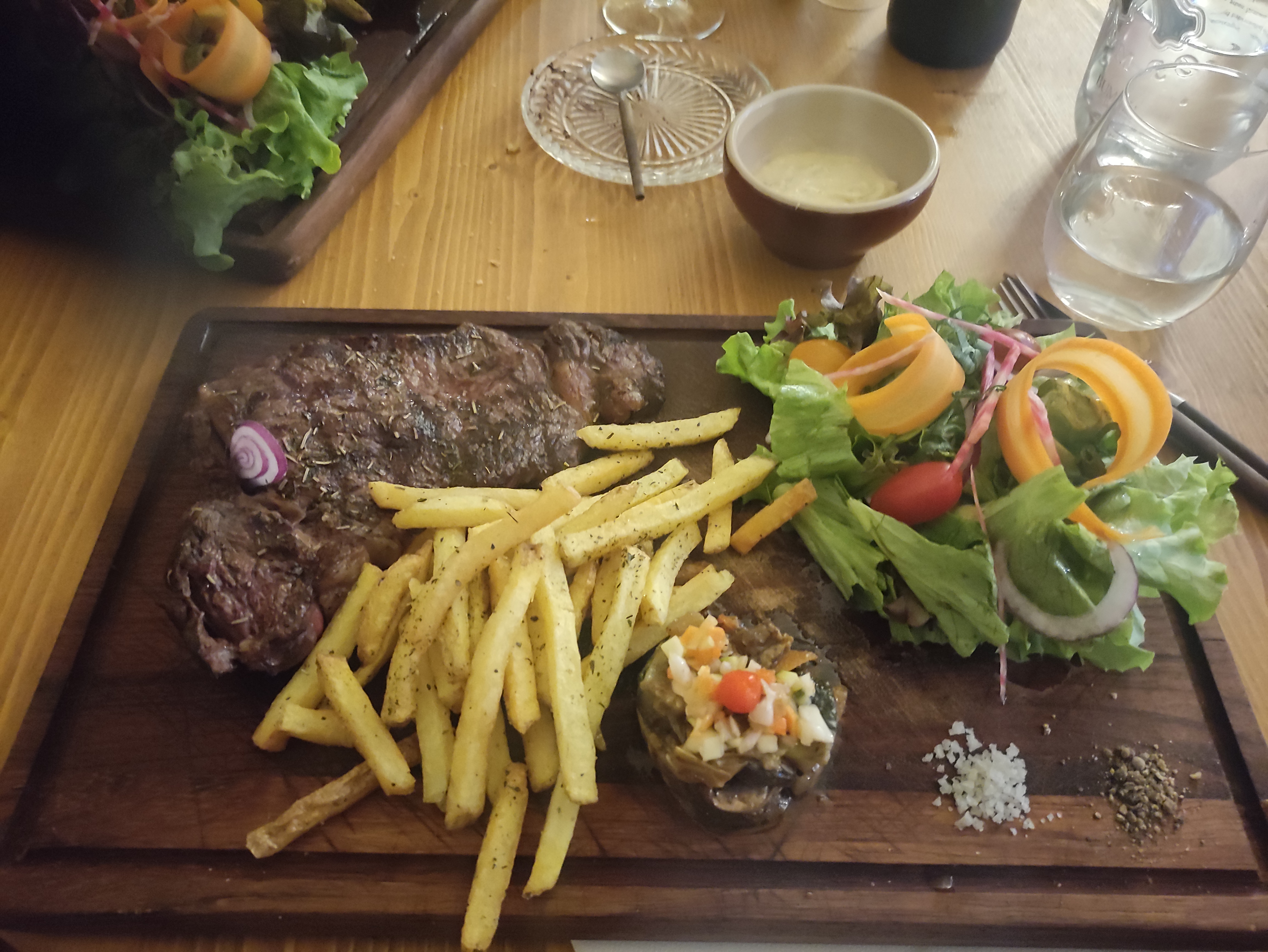 Une côte de bœuf succulente cuite aux feu de bois, des légumes goutus comme on a plus l'habitude d'en manger, un gratin dauphinois délicieux et tout ça dans une ambiance sympathique! Une mascotte adorable et discrète! on a adoré!