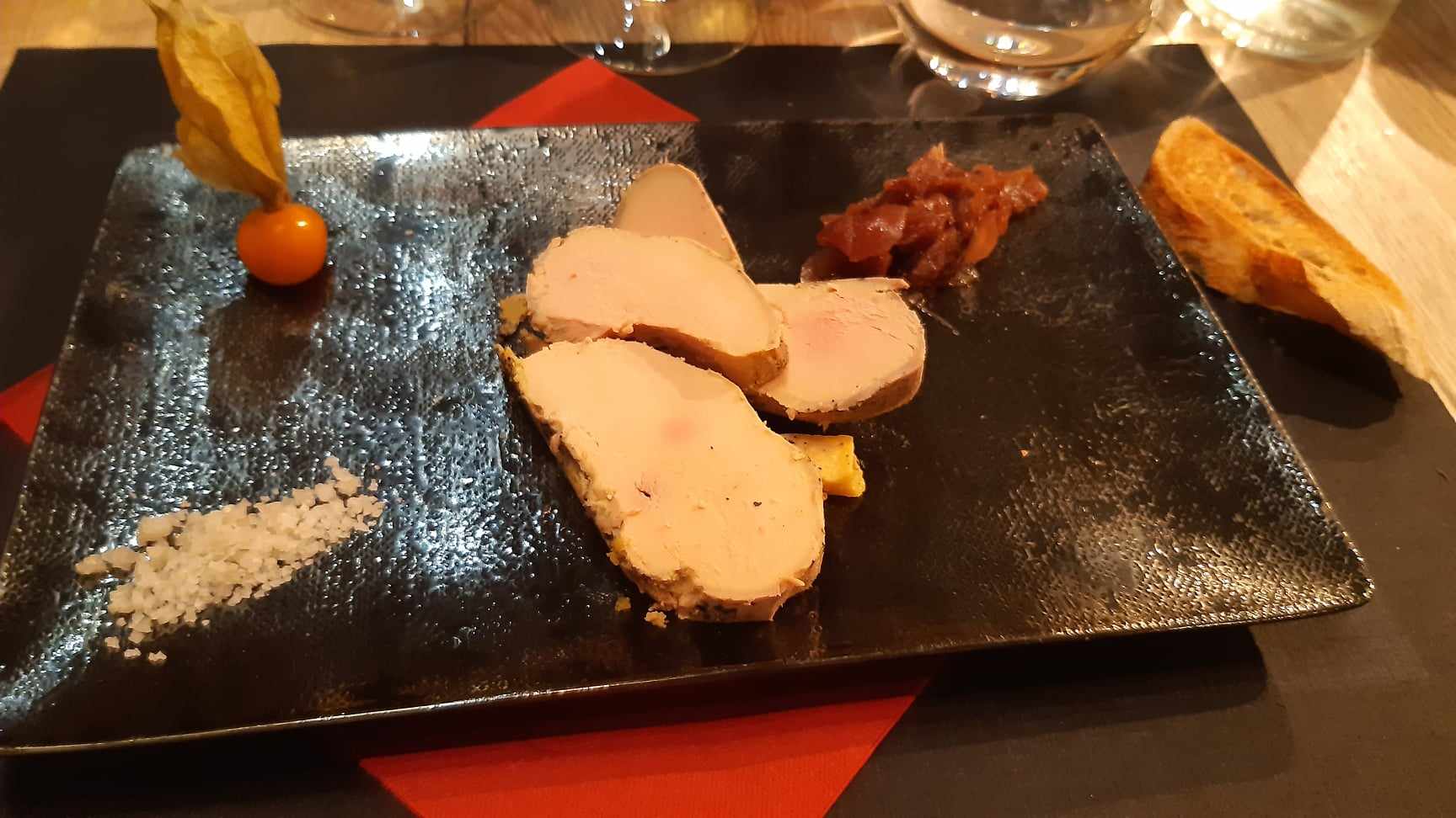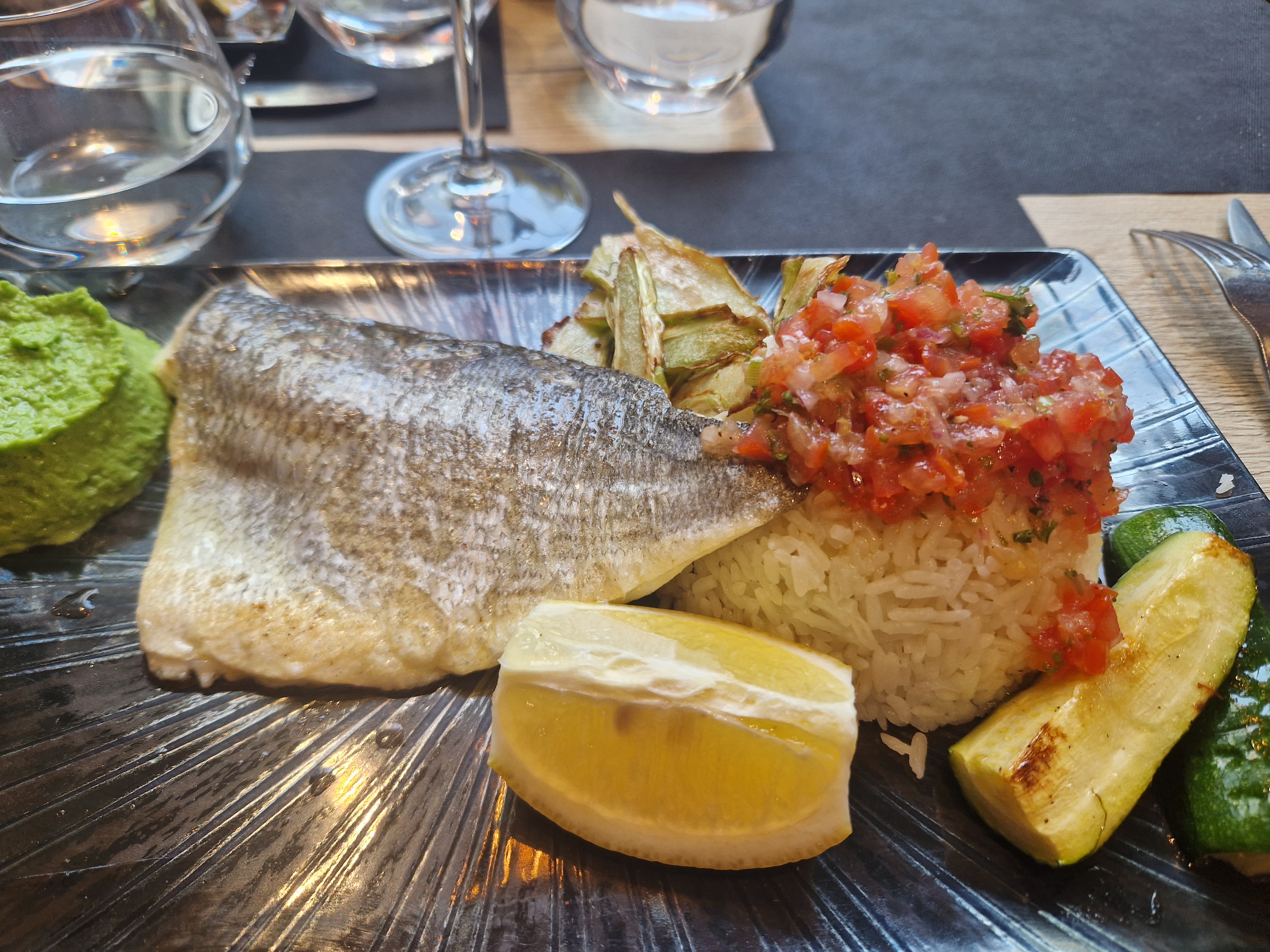 Repas délicieux produits frais et leurs cuissons maîtrisé c étais exquis tout simplement. Anniversaire de mariage sublimé par de belle assiettes.