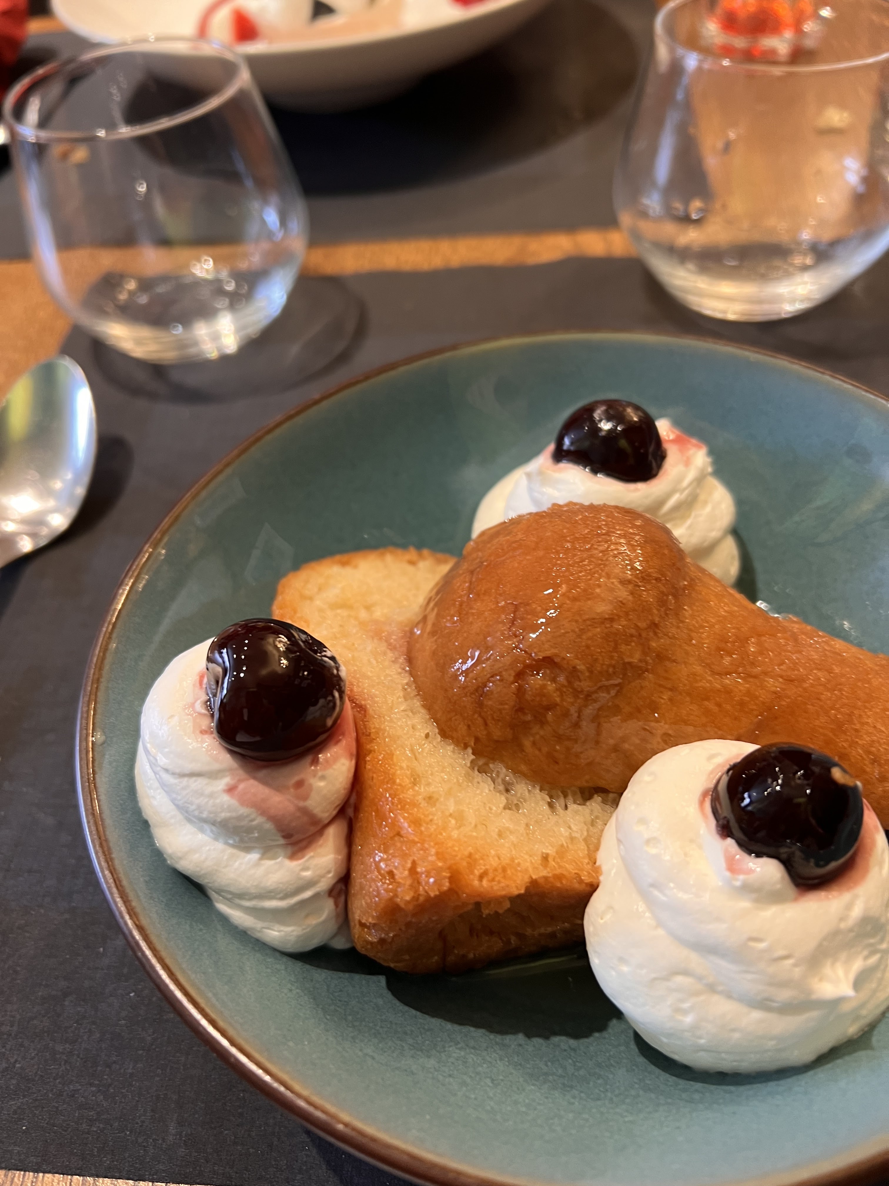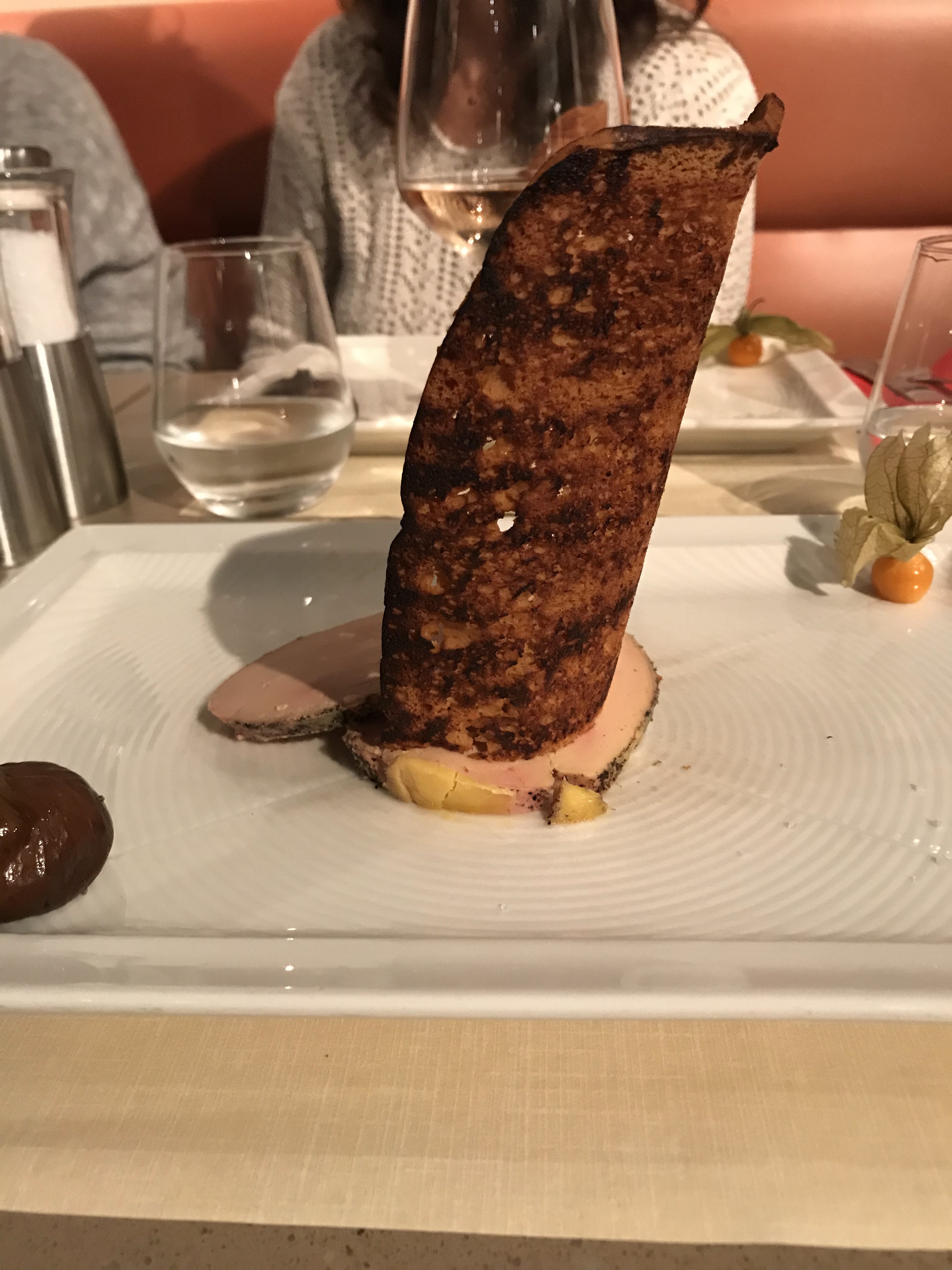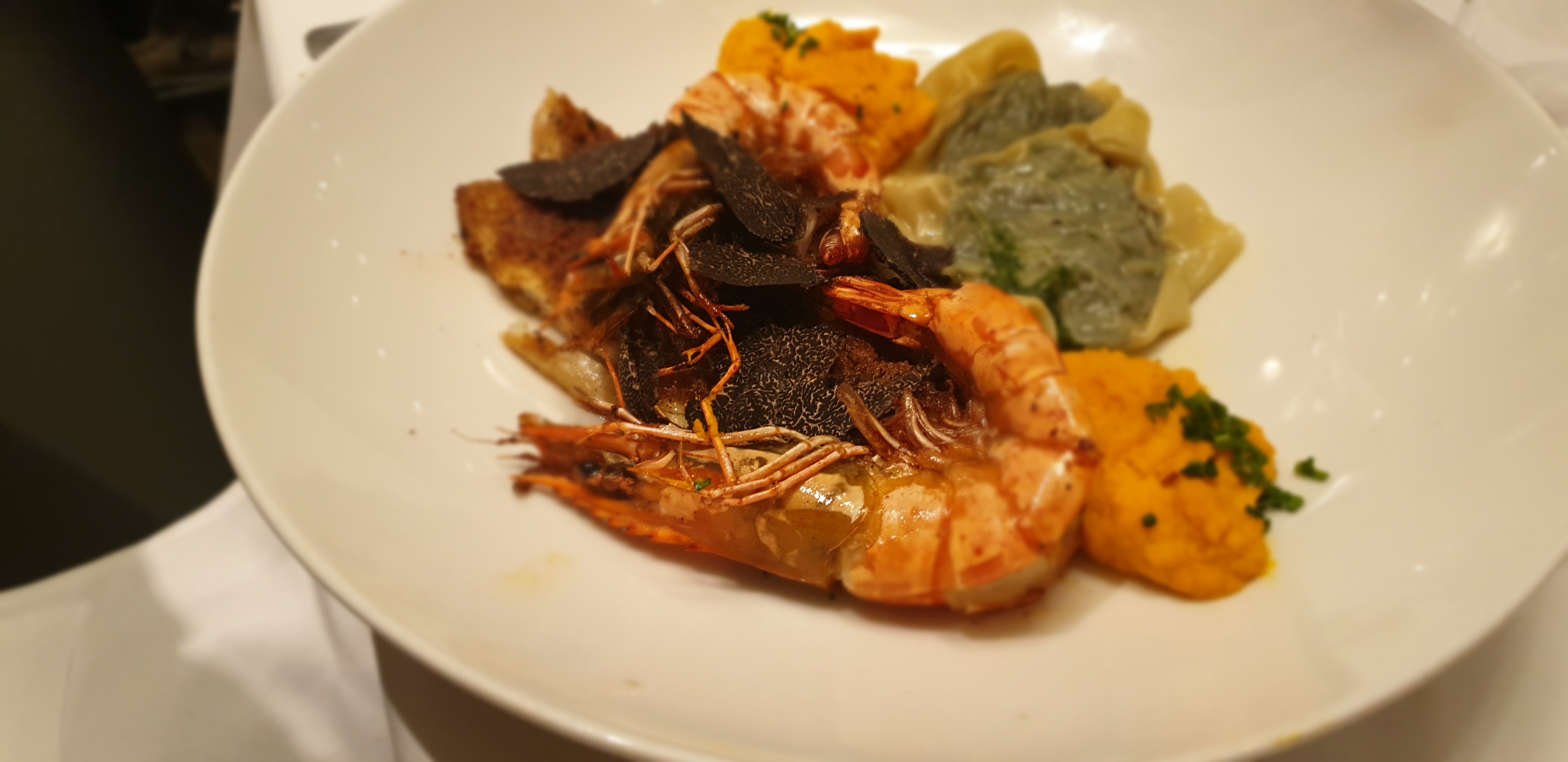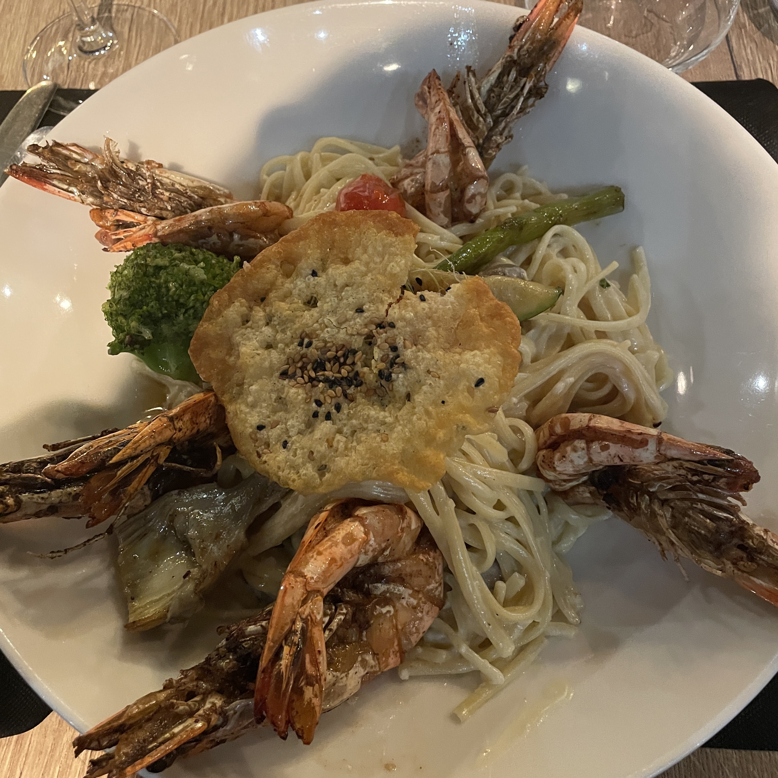 Expérience décevante : pour le standing et le prix. Manque de staffing (seulement 2 serveurs pour 2 salles), attente de plus de 20mn pour venir prendre notre commande, pas le temps de faire goûter le vin. Foie gras : bon et copieux Gambas au curry : trop cuites, accompagnées d’un riz style nasi goreng : ce n’était pas du tout un nasi goreng et le riz n’était pas assez cuit. Le pluma de porc : très bien Tartare de boeuf : très bien, pas trop copieux Filet de dorade : bien Profiteroles géantes : pas faites maison, cela se sent que c’est du surgelé, chou sec et glace vanille sans gout