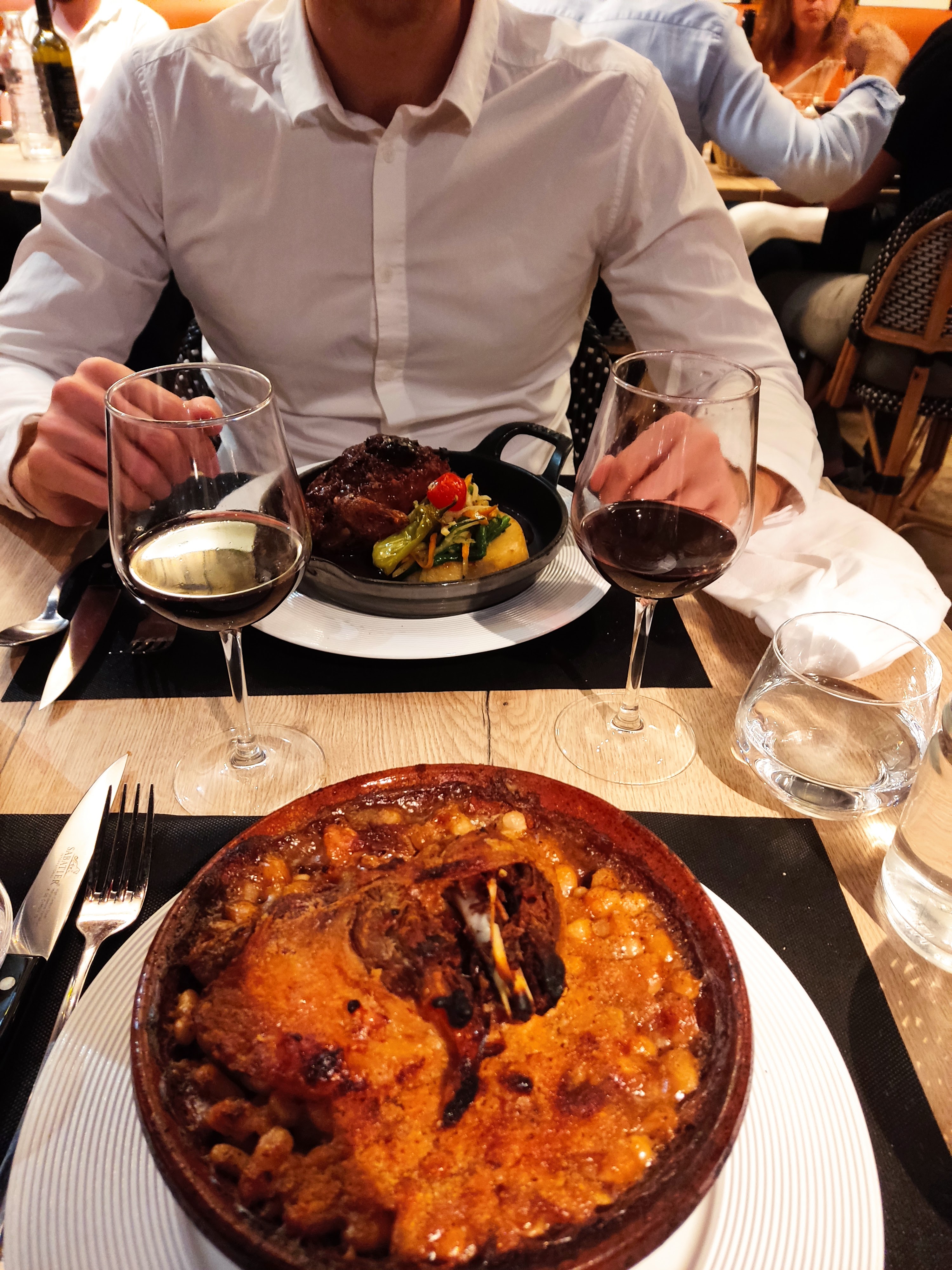 Deuxième visite et je n'ai plus aucun doute maintenant que le battage médiatique autour du cassoulet est justifié. C'est le meilleur que j'ai mangé en France. Les raviolis aux crevettes dans une sauce à la crème et au bouillon de fruits de mer méritaient également des éloges particuliers. Le service, comme d'habitude, était de première classe et l'ambiance joyeuse et relaxante. Une expérience mémorable à tous points de vue. Nous reviendrons — souvent !
