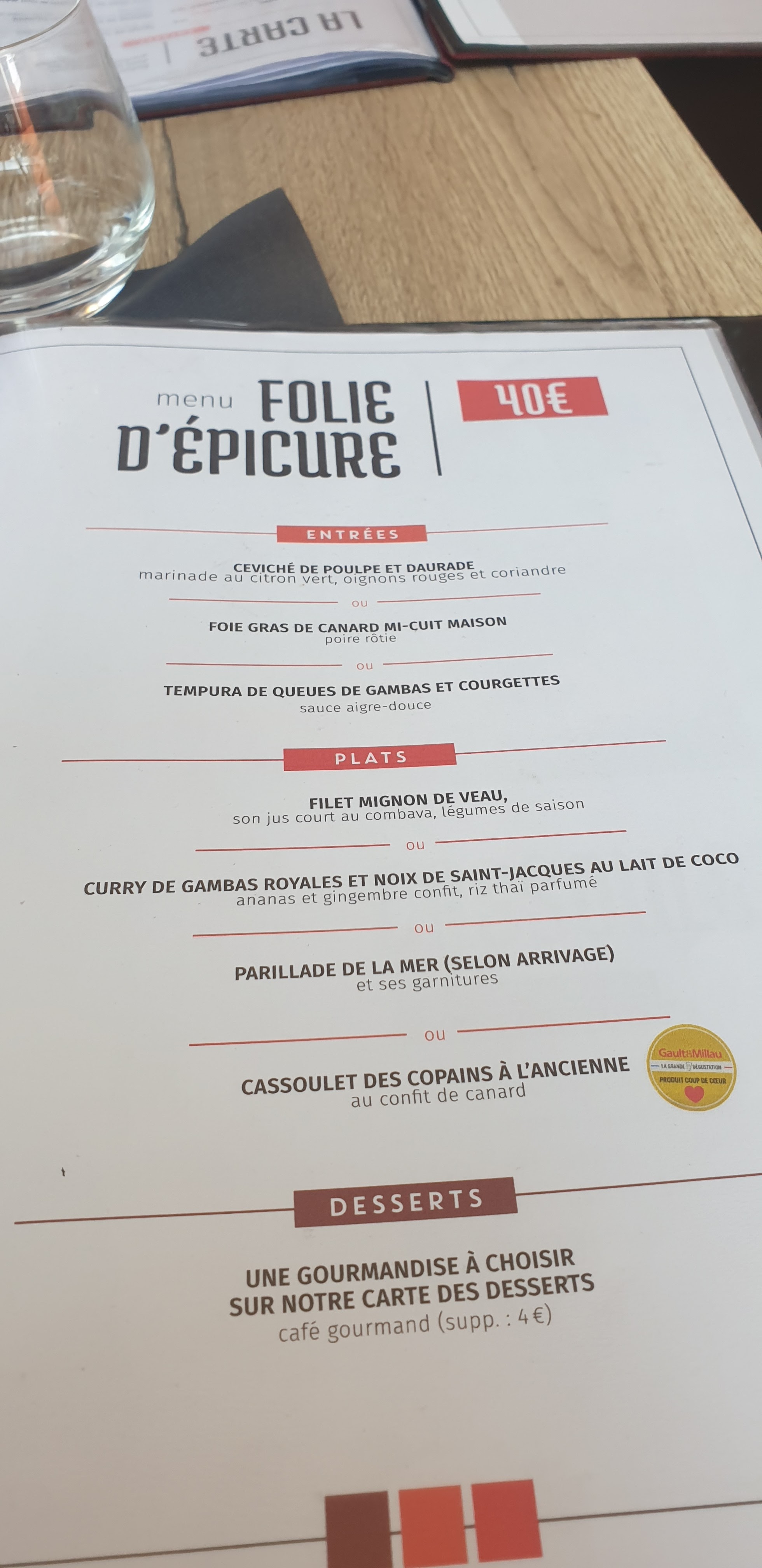 Un délice. Accueil chaleureux et déco cosy. Nous avons passé un très bon moment. Nous recommandons le cassoulet au canard confit et le curry de gambas.