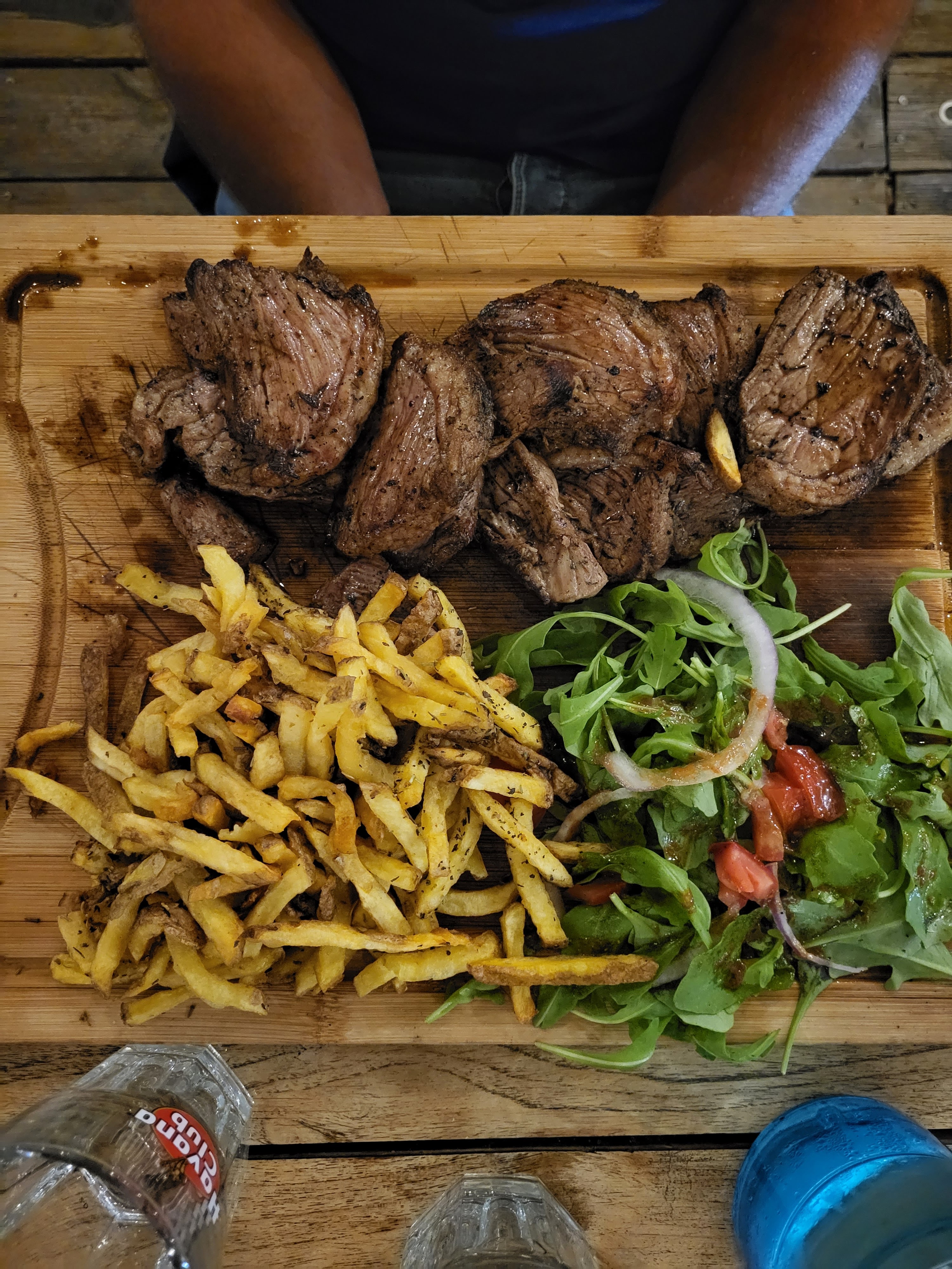 Ne pas s'attarder sur la devanture du resto mais bien sur le nom du restaurant les copains d'abord, avec une équipe jeune et dynamique. On y a manger une picanha de bœuf, une petite tuerie. Et pour couronner le tout, une bonne bière belge en apéro la Chouffe 😋