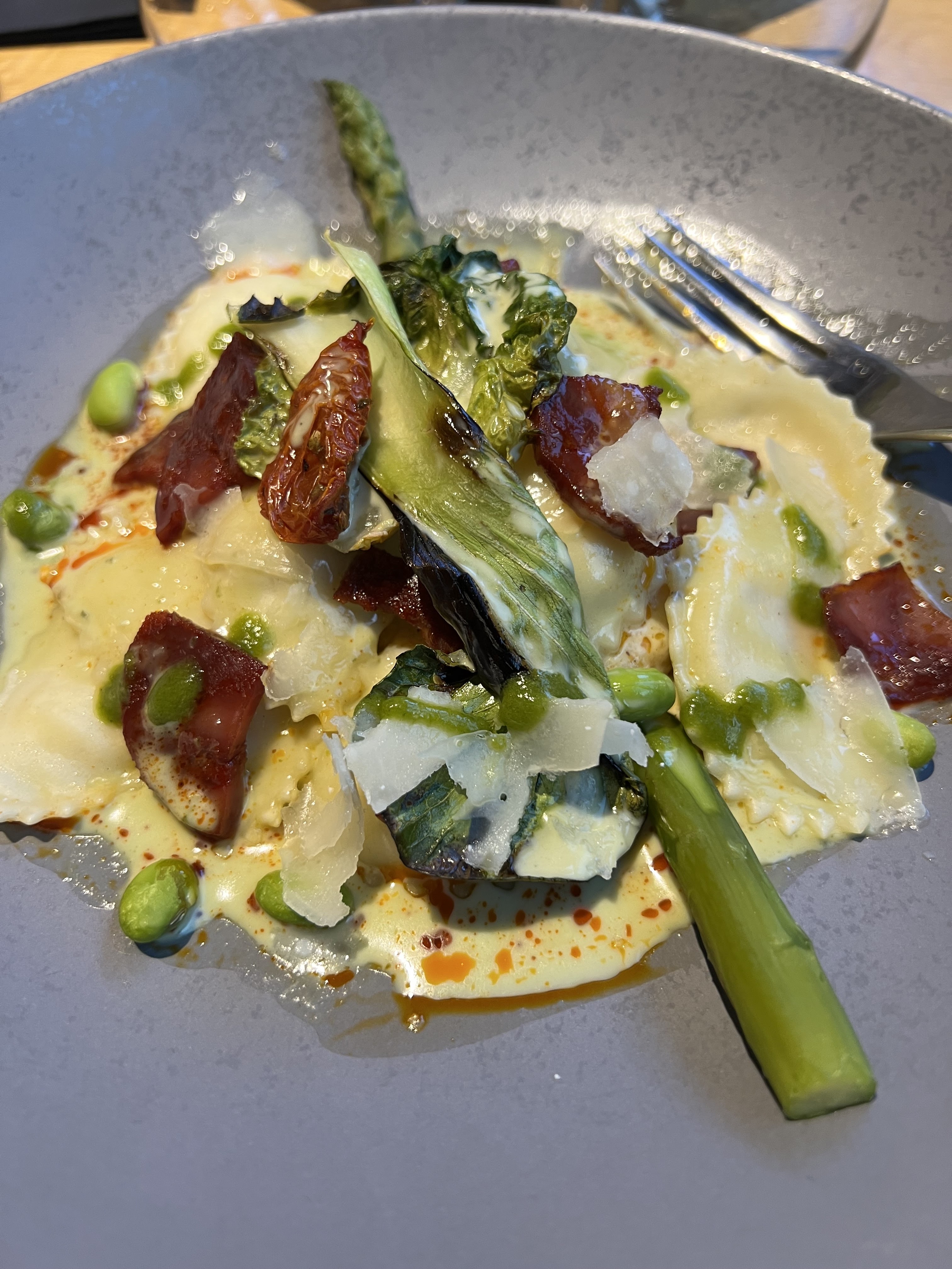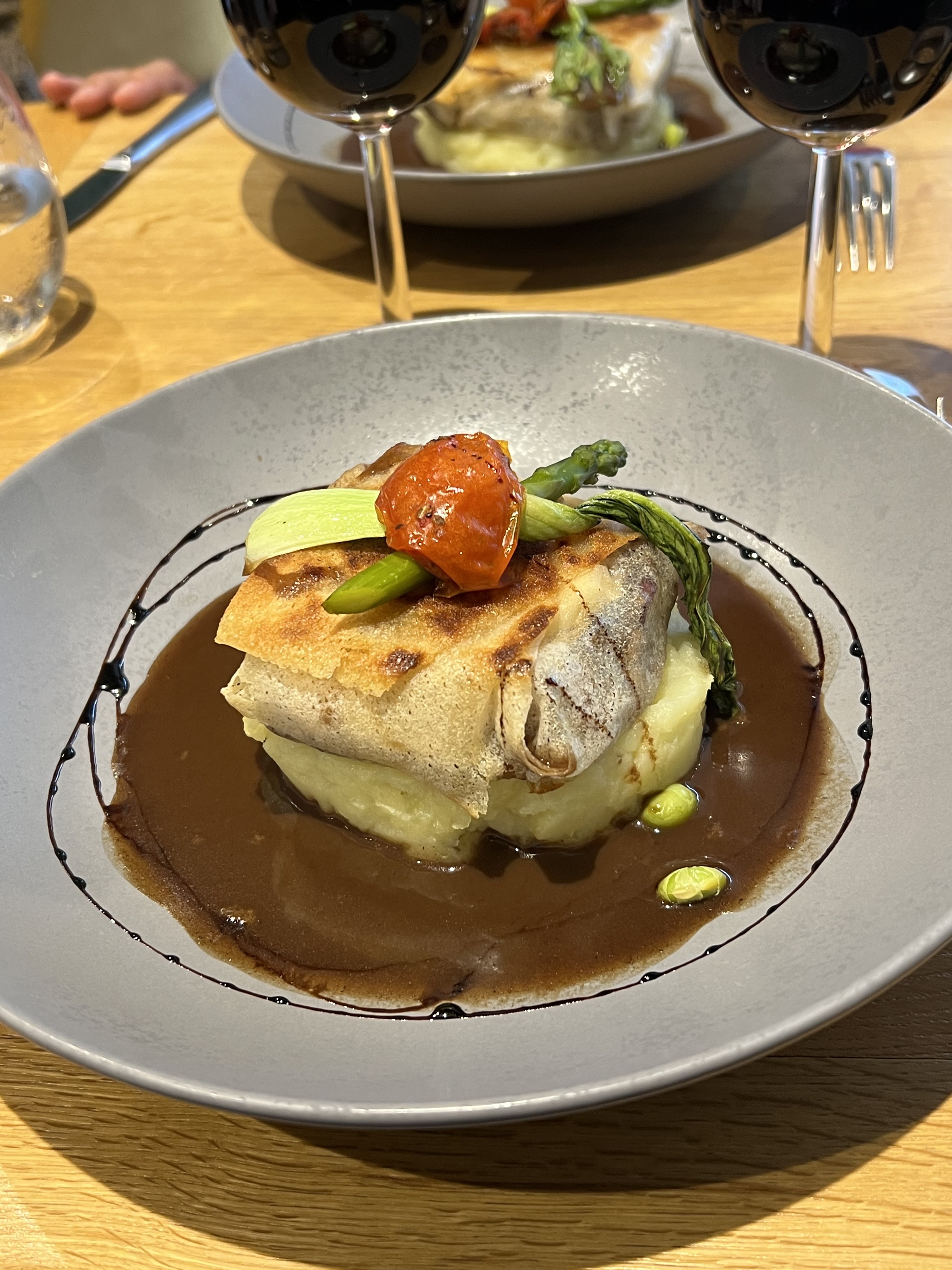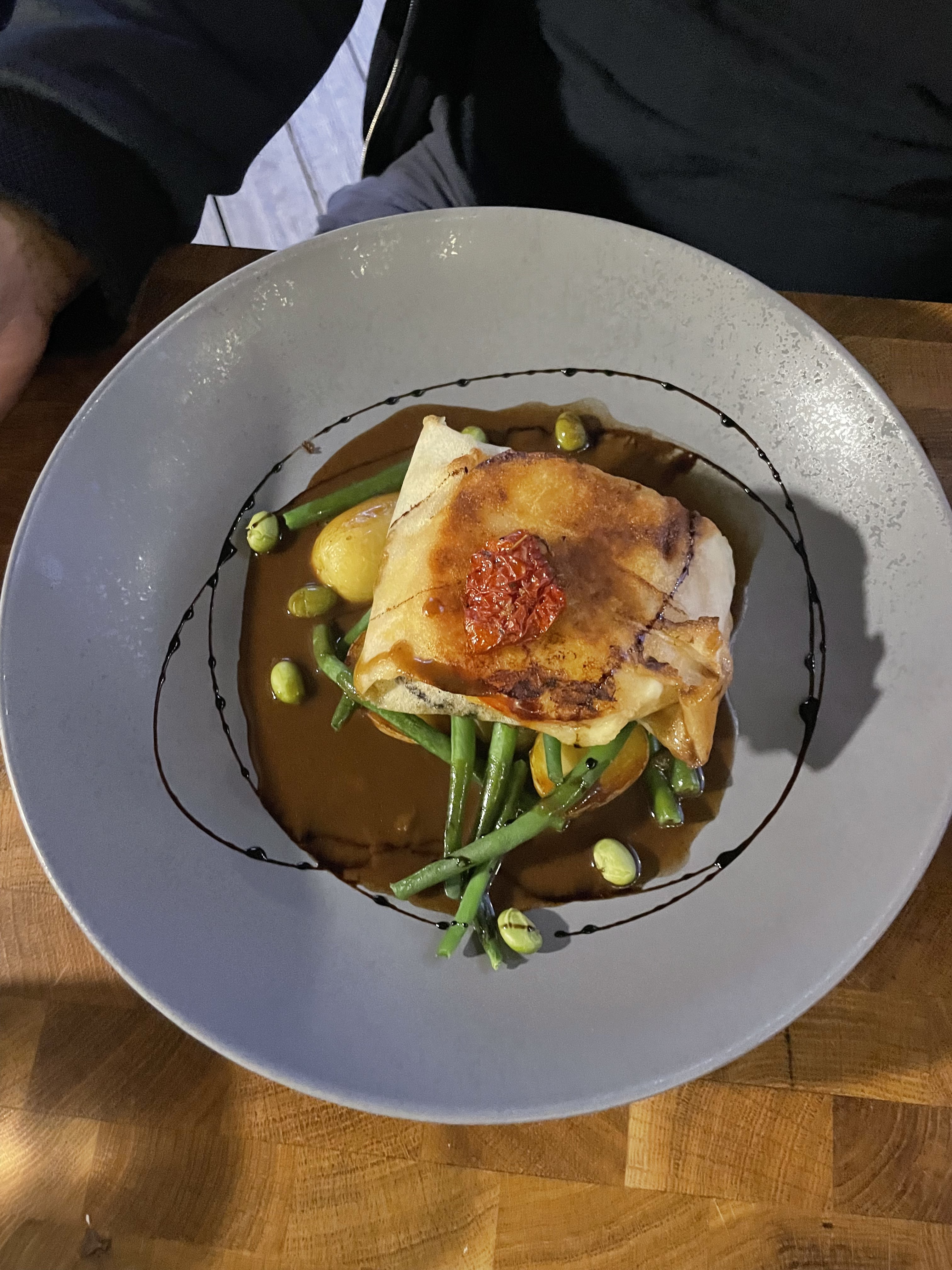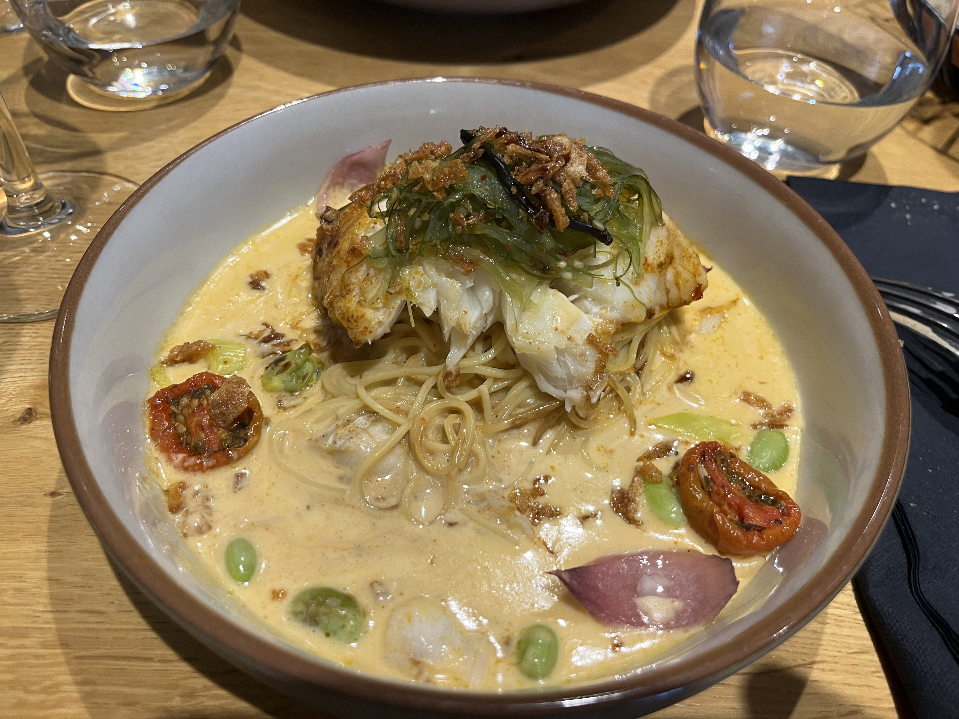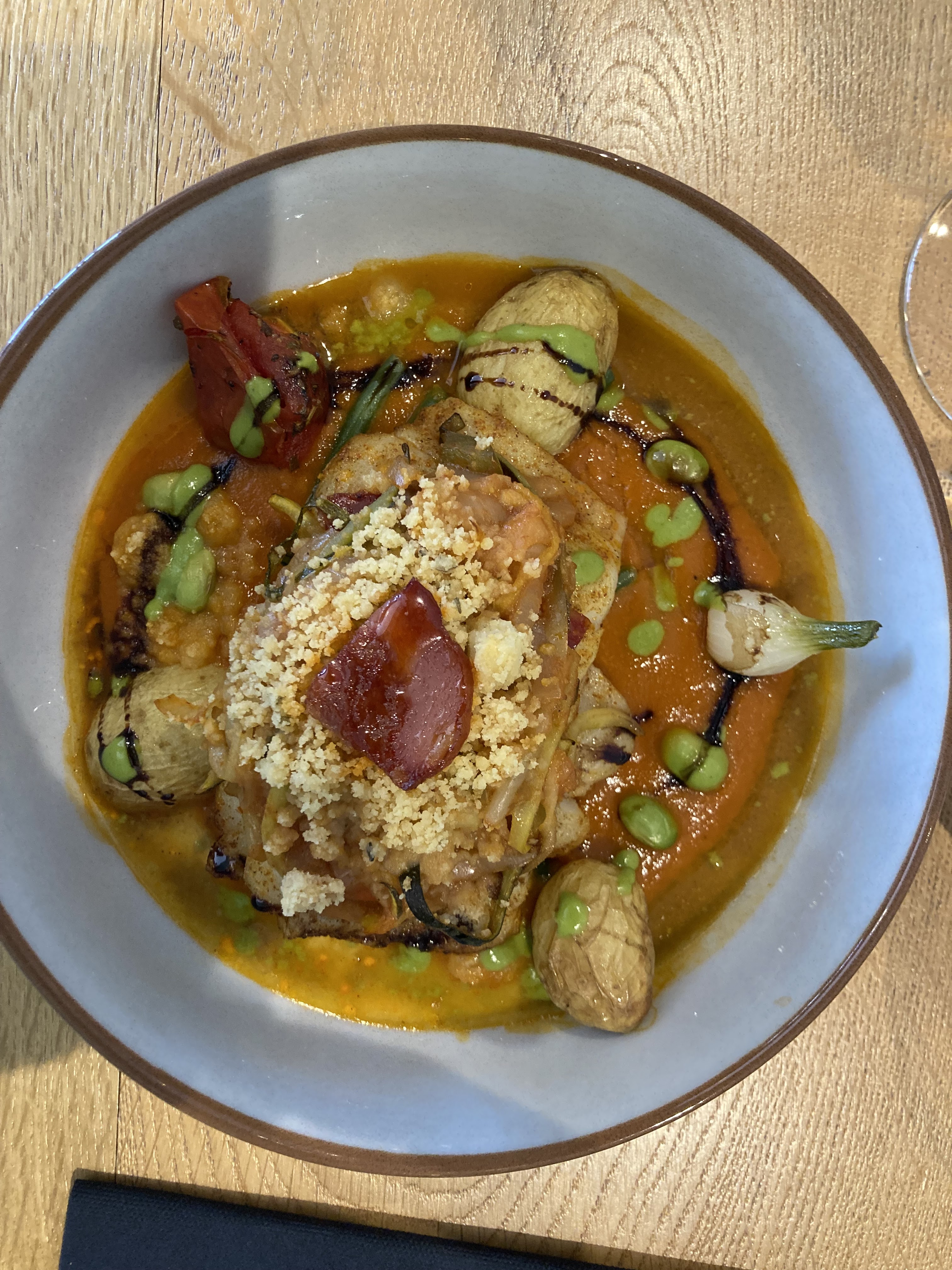 Restaurant joliment décoré. Ambiance détendue et joviale. Très bon service. Pour ce qui est des plats, nous avons mangé de bons plats, les portions étaient raisonnables sans être énormes non plus. J'ai pris un dos de cabillaud au chorizo avec des ravioles au parmesan avec sauce au beurre persillé. Le plat était très réussi. Juste à noter que le restaurant ne prend pas la carte ticket restaurant.
