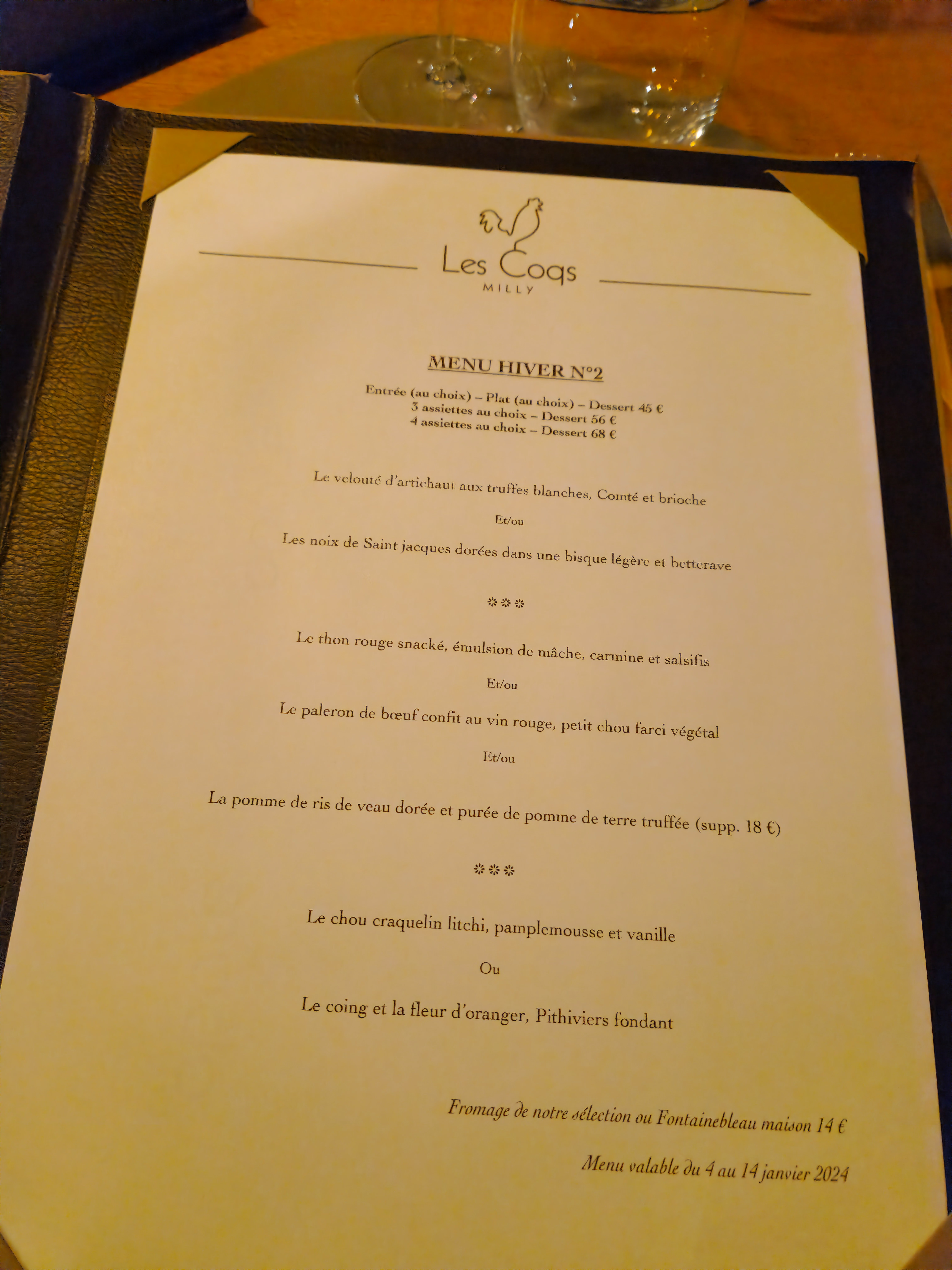 Superbe repas hier. Choix court mais d'une grande qualité. Entrée végétale avec une juste touche de truffe, une canette cuite à la perfection, un dessert autour du lait bien pensé original et délicieux. Quatrième passage aux coqs, il y en aura certainement un cinquième . Merci
