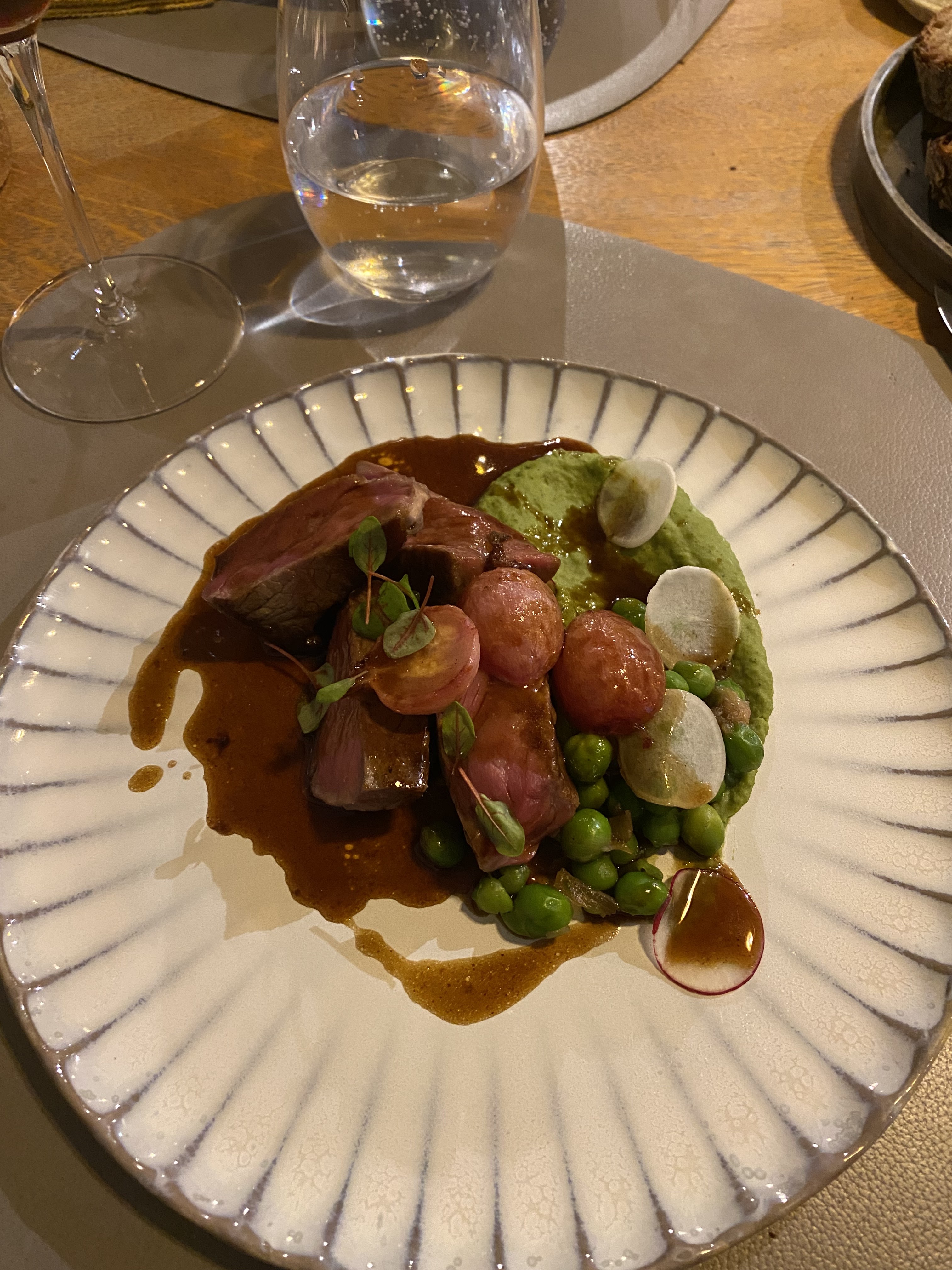 Nous avons très bien mangé avec le menu entrée plat dessert. Les légumes en entrée étaient extra frais, l'agneau magnifique et le dessert avec une juste balance entre l'acidité de la rhubarbe et le sucré du cake au citron. Le service est parfait de simplicité et d'attention. Merci beaucoup 😄