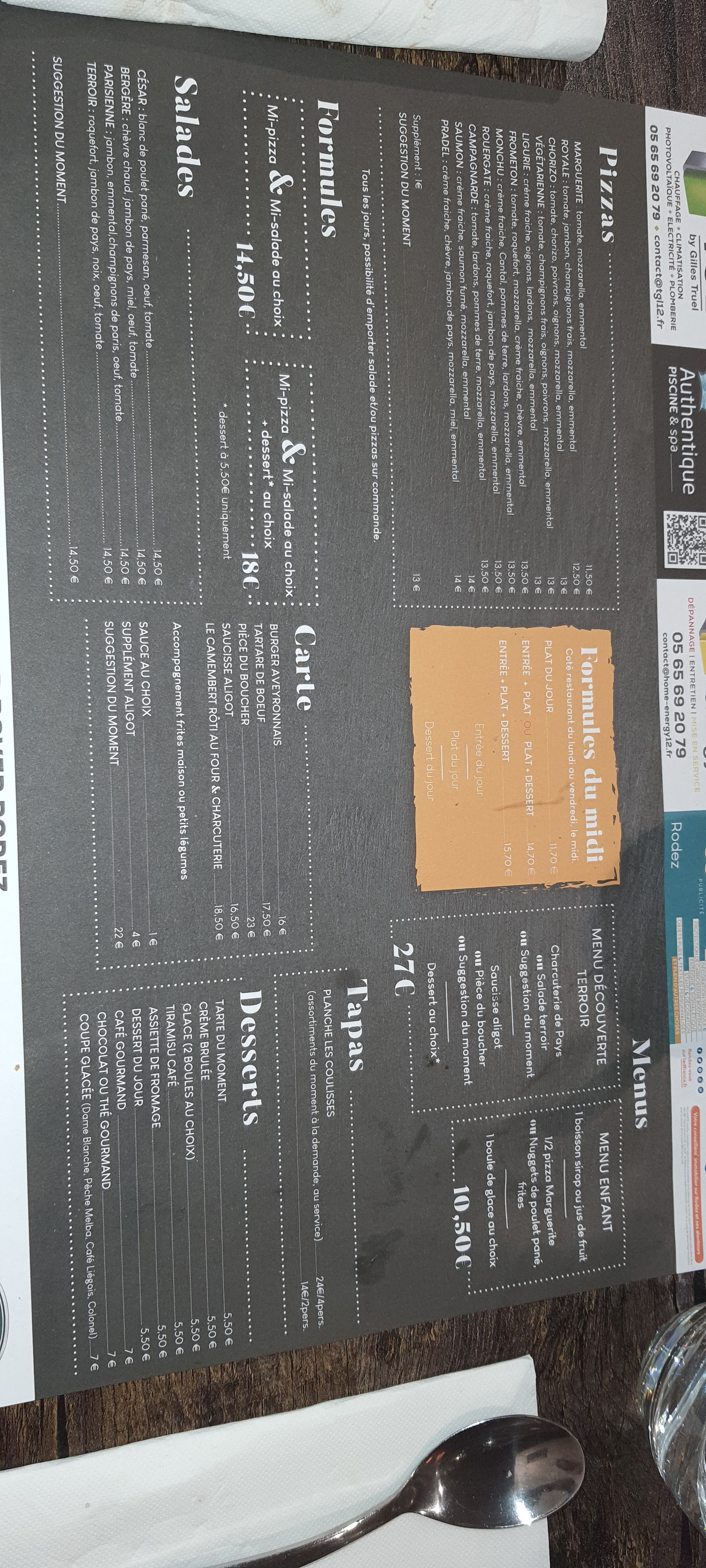 Cadre et positionnement à fort potentiel, mais hélas bcp de bémols, entretien ameublement extérieur vraiment limite, rouille sur les tables, petit bassin qui mériterai un pti coup de nettoyage tout ça surtout en début de saison ! Après rien à re dire sur la gentillesse et spontanéité du patron et serveurs mais organisation vraiment à revoir, le service est tout sauf fluide. Service très très long pour juste quelques Planchas de tapas. Hélas au final à 2 ingredients près (pizza et ailes de volaille confites remplacées par 2 fromages) du coup quasi identiques: 3 patés (!) , tranches de saucisses, salade, cornichons ... la cuisine manque cruellement d'un peu d'originalité, (tomates séchées, olives, tapenade des pti trucs de saisons tout simple qui aurai apporter la touche en plus par exemple ) Les clients juste à côté étaient aussi déçu par une des assiettes dans laquelle se chevauchaient de façon vraiment amatrice: tagliatelles, endives crues, chou rouge etc Vraiment dommage car le cadre est vraiment chouette, le personnel sympa mais mal organisé et pourtant il ne manquerai pas grand chose pour en faire un haut lieu du ruthenoise. Cuisine et organisations à revoir impérativement.