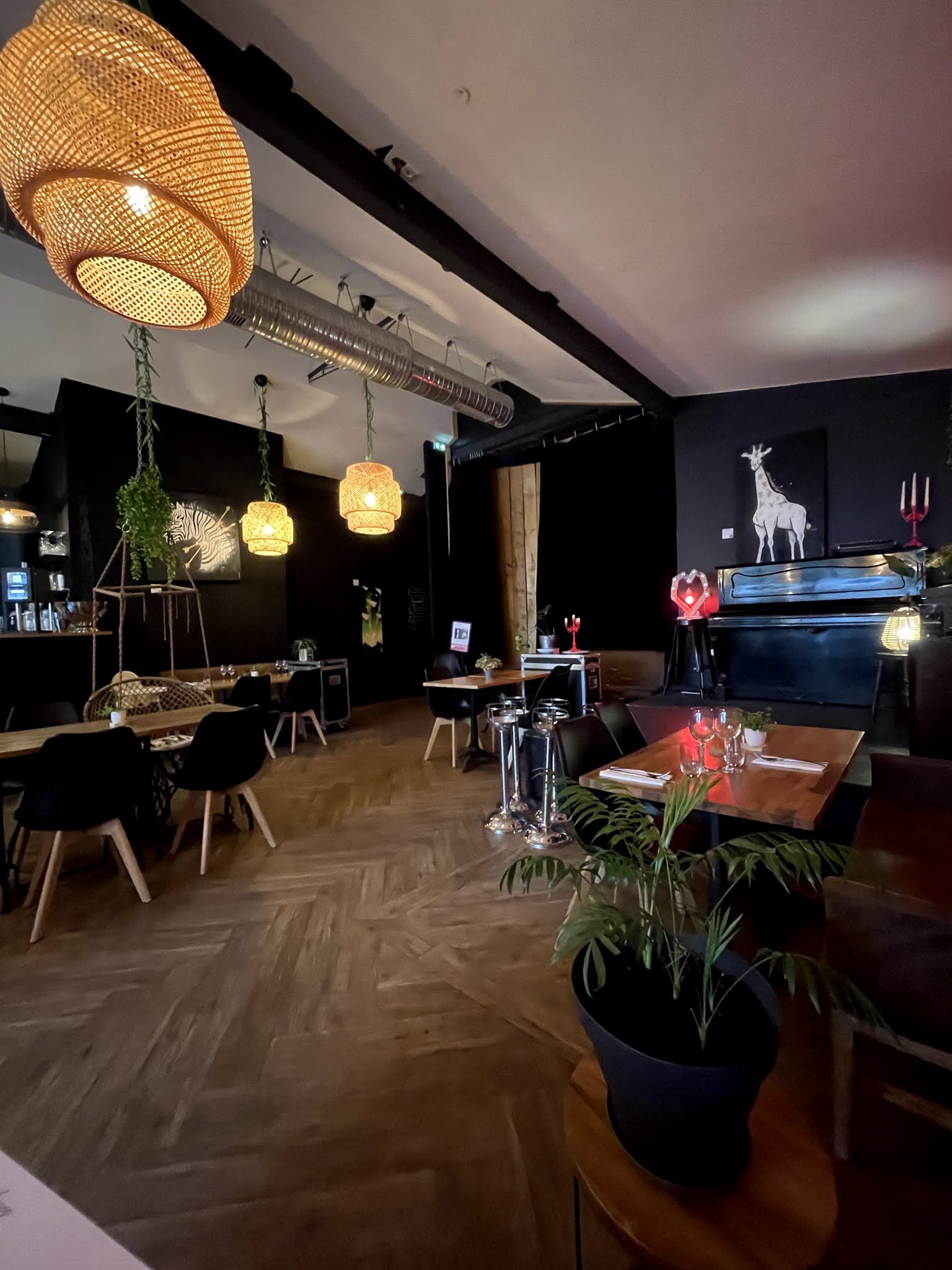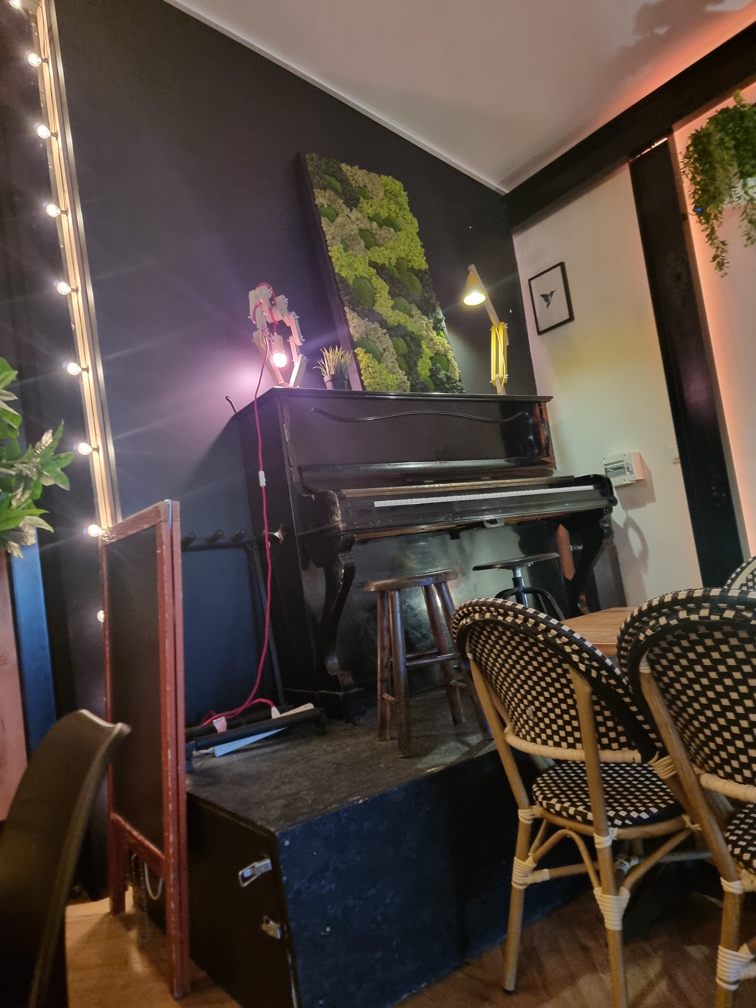 Lieu spacieux, très sympathique et agréable pour y manger des plats aux produits frais. Le piano attend son artiste sur l'estrade 🙂