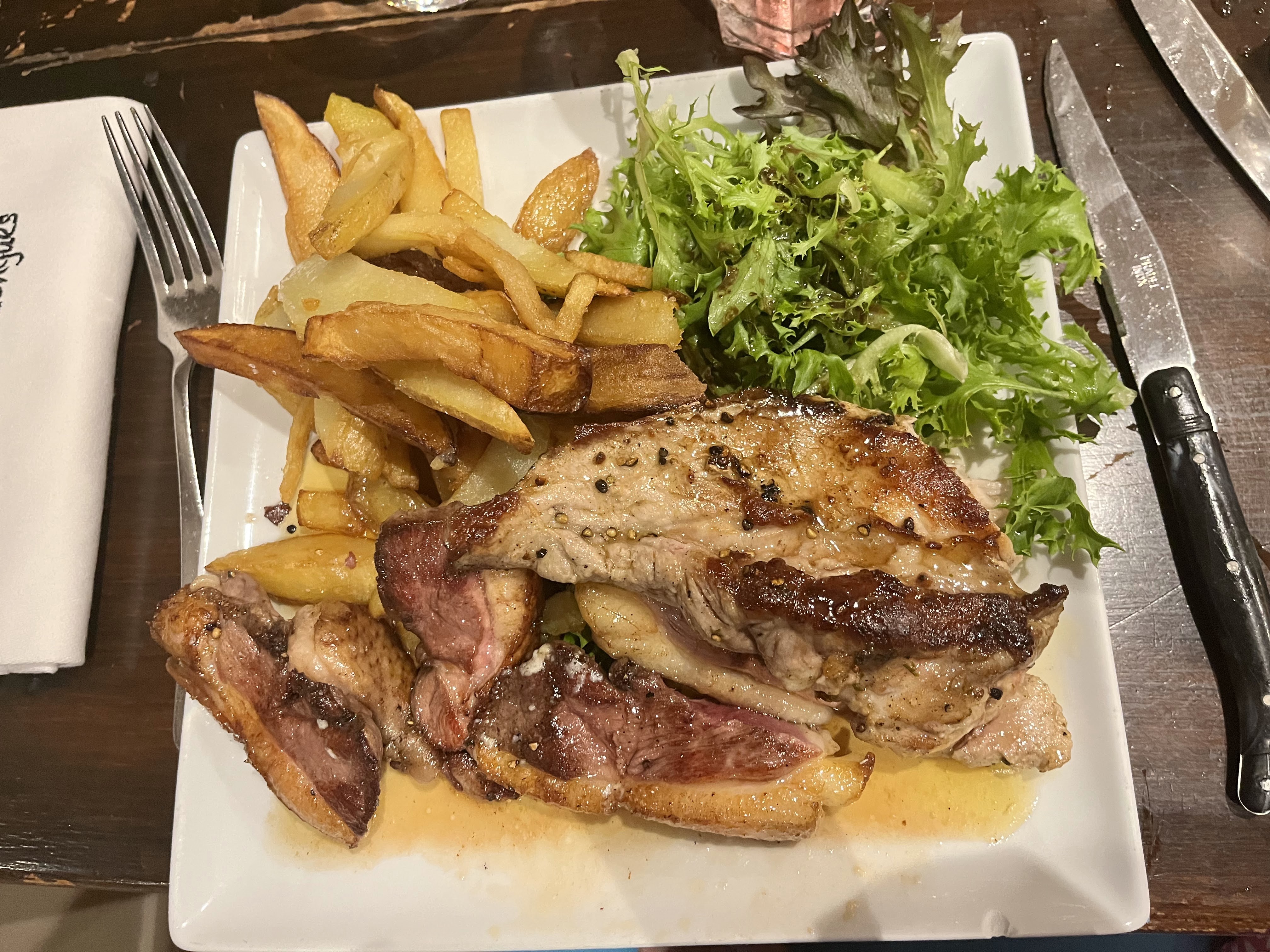 Tout est grand ici : l’accueil, là générosité, la qualité, la quantité et on a faillit rester pour remanger le soir. Merci au chef, à sa moitié en salle et toute son équipe ! Quand à la cote de bœuf aux truffes, elle restera à jamais dans ma mémoire ! Un conseil : ne passe pas à côté d’un tel moment de plaisir et de bonheur. À très vite